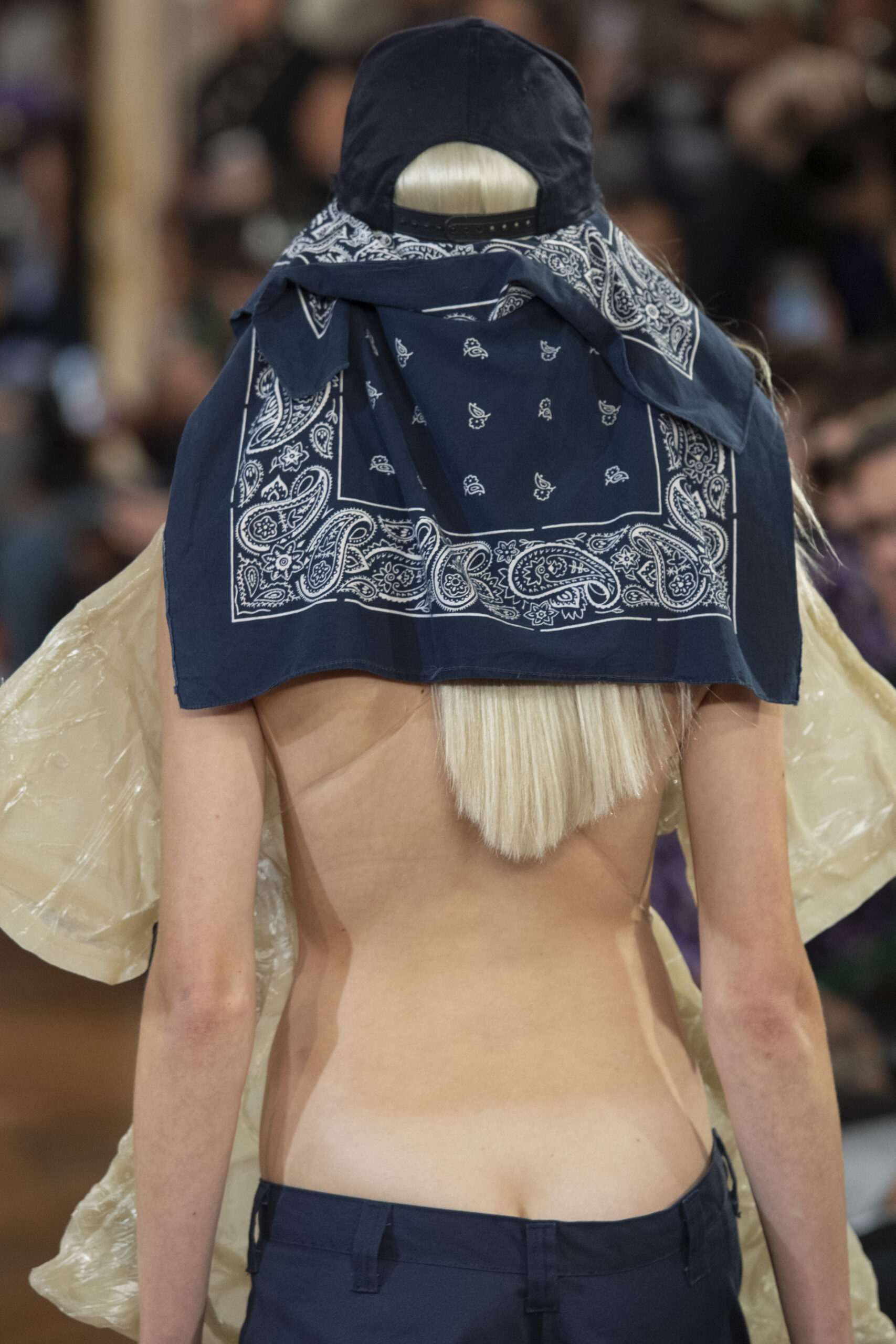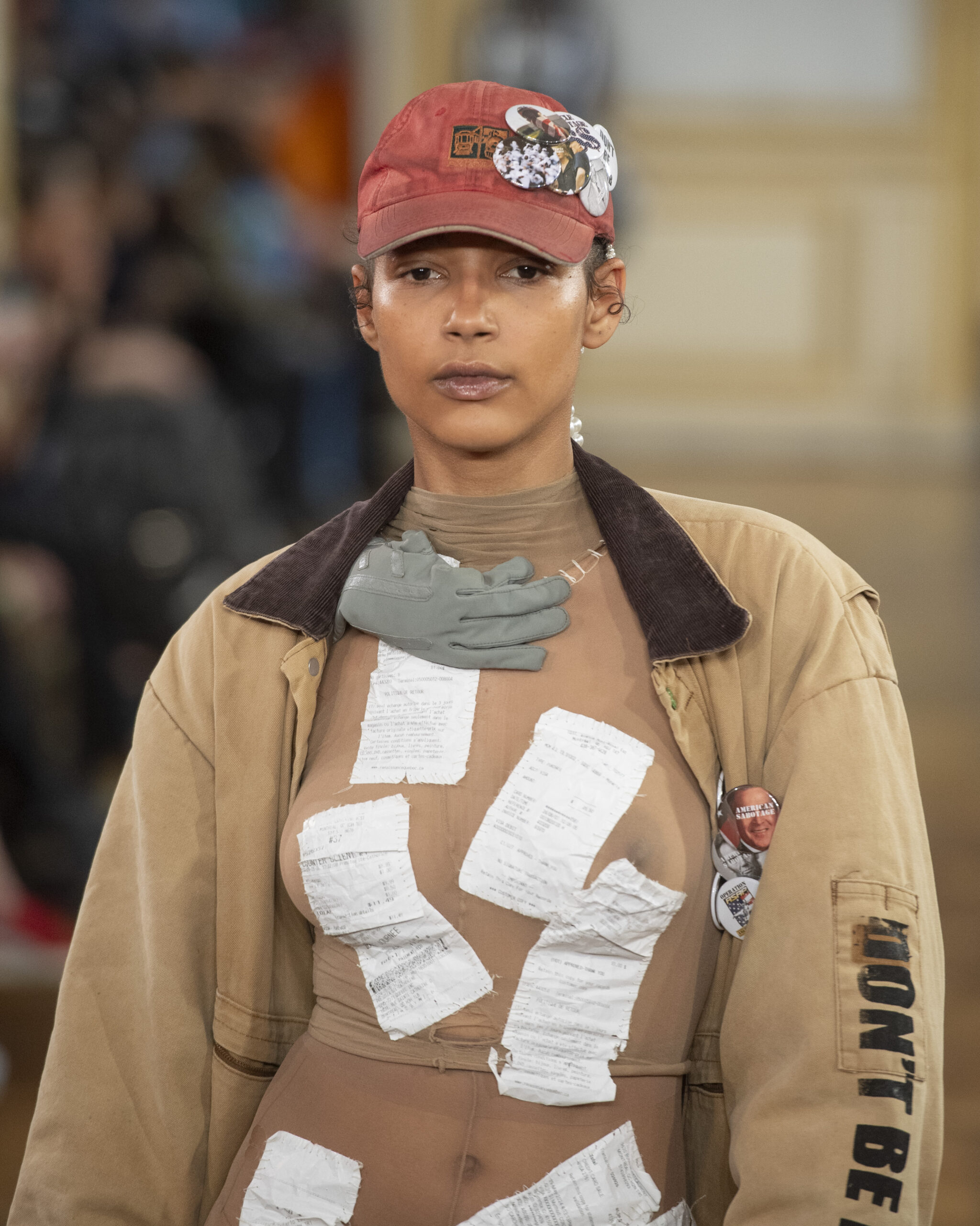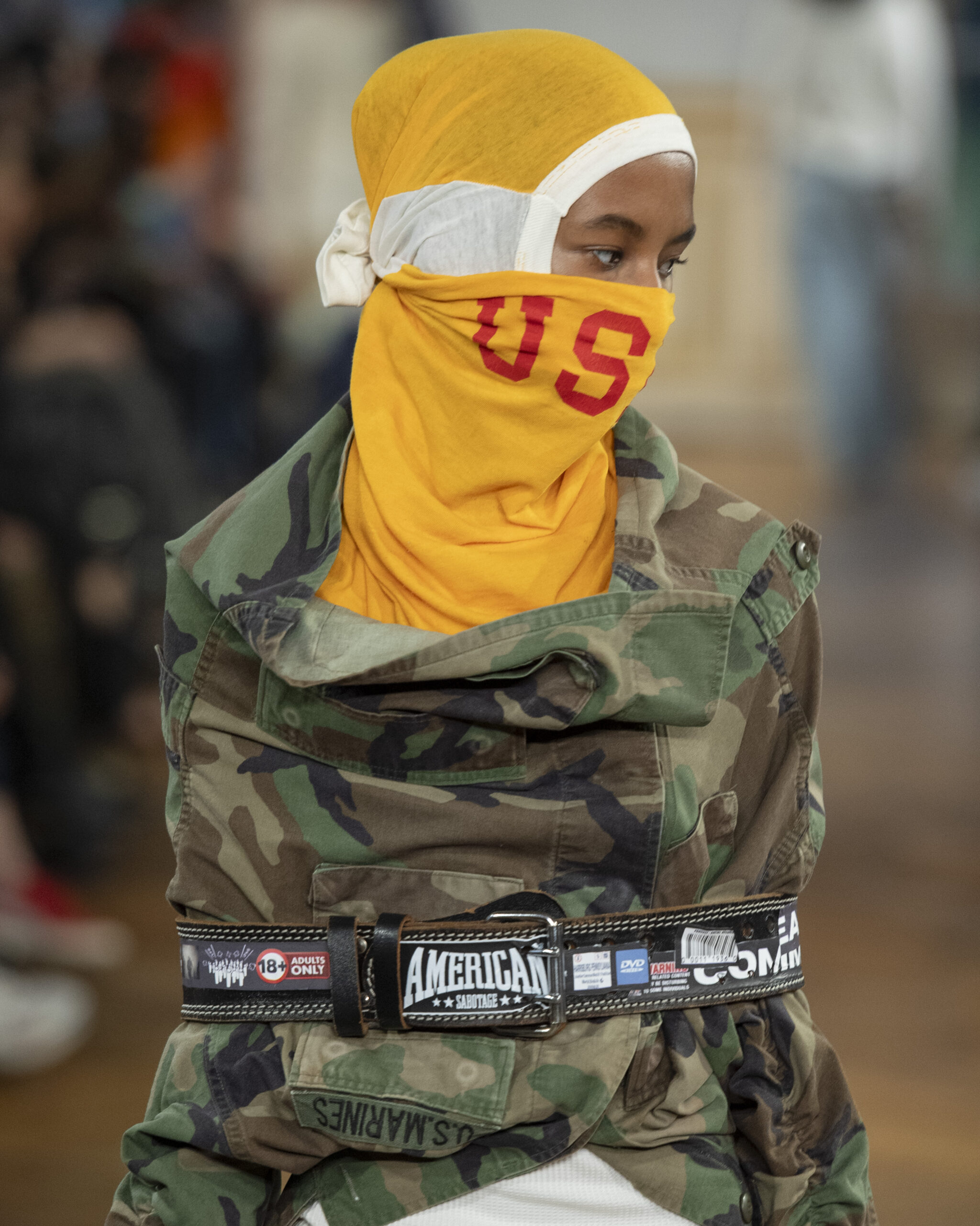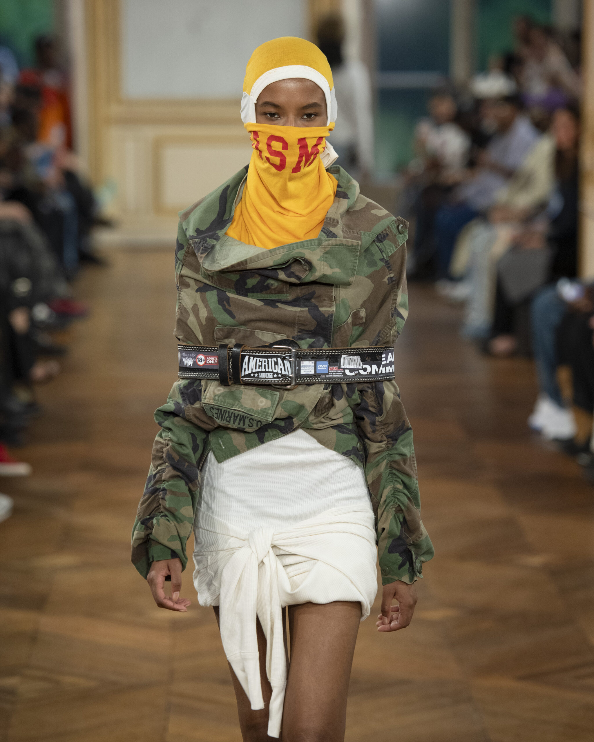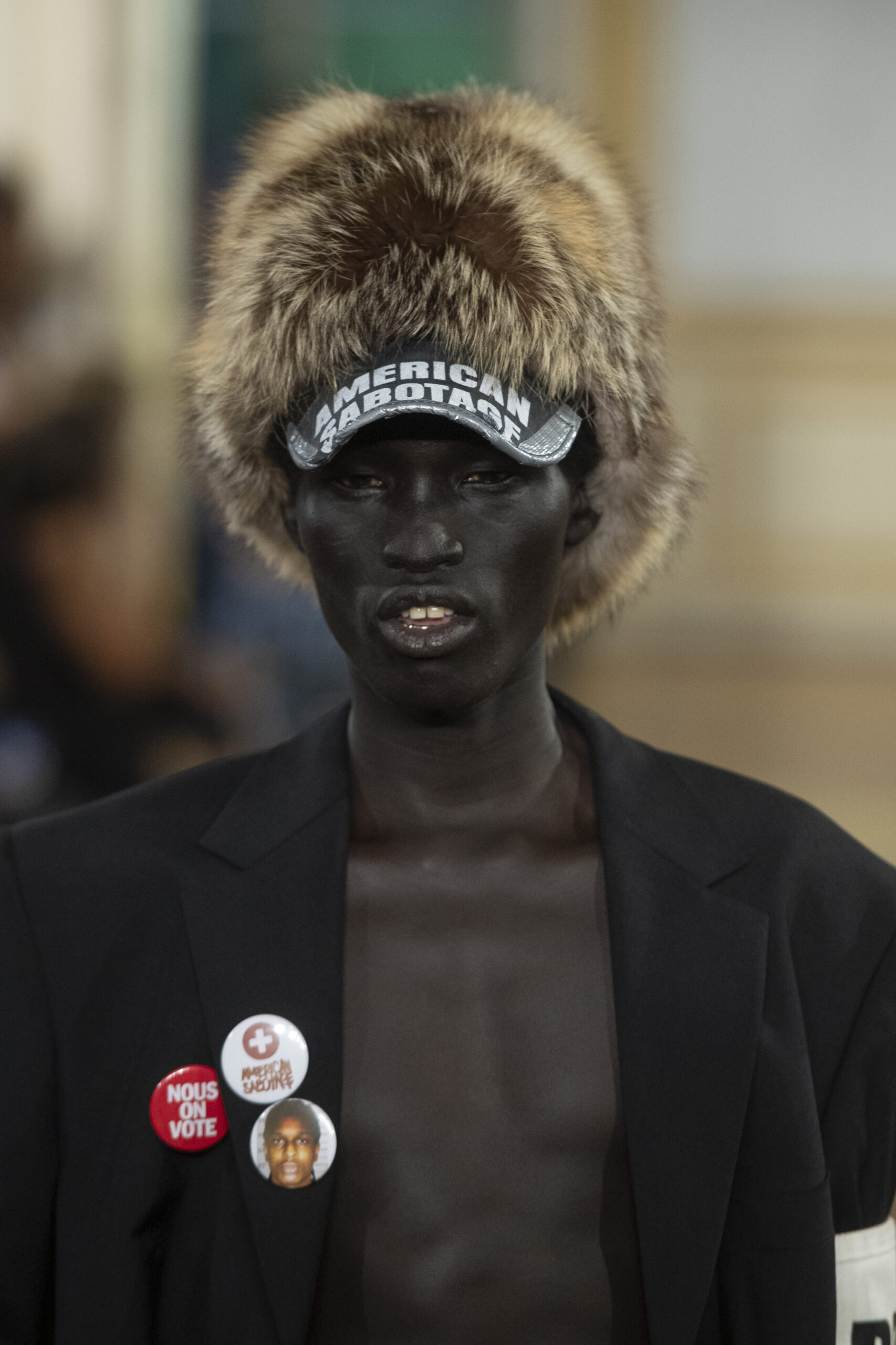 Le décor du défilé, comprenant des sacs poubelles transformés en chaises beanbag issues de la marque de mobilier Hommemade, en collaboration avec Crosby Studios, ajoutait une dimension immersive à cette expérience unique. Le défilé a été rythmé par la bande-son du prochain album d’A$AP Rocky, créant une synergie entre mode et musique.
