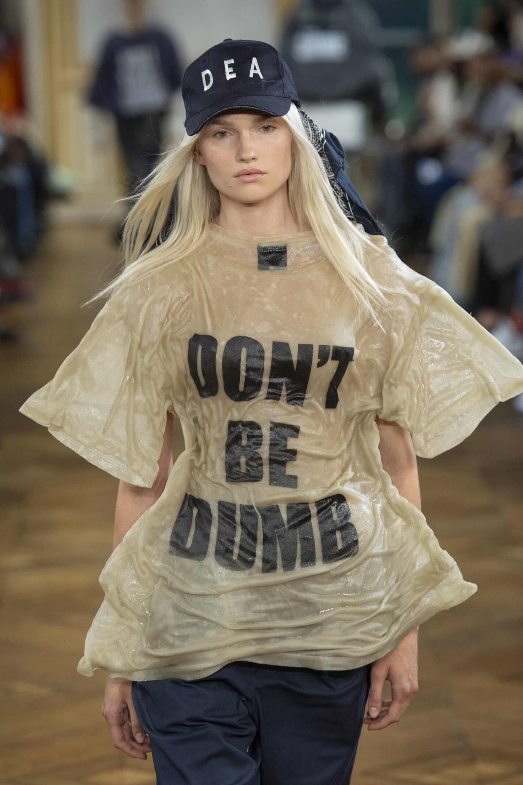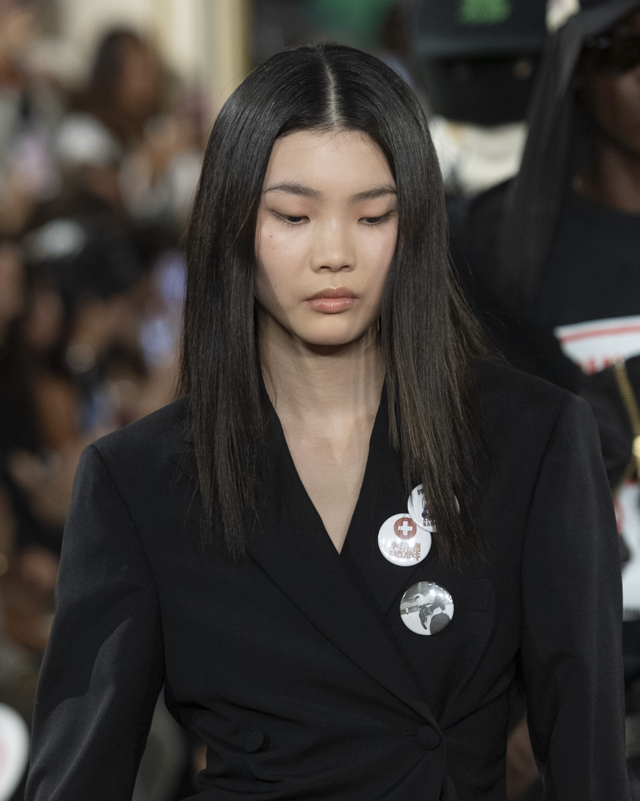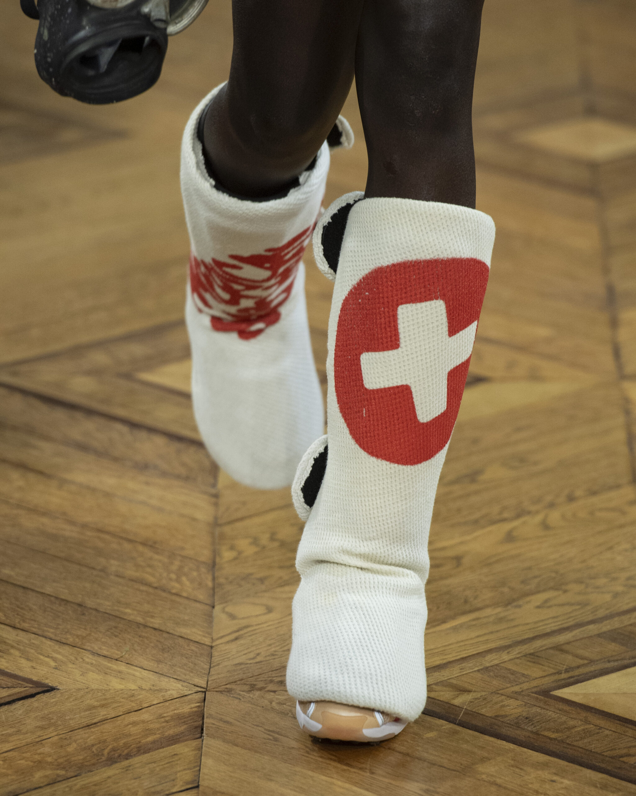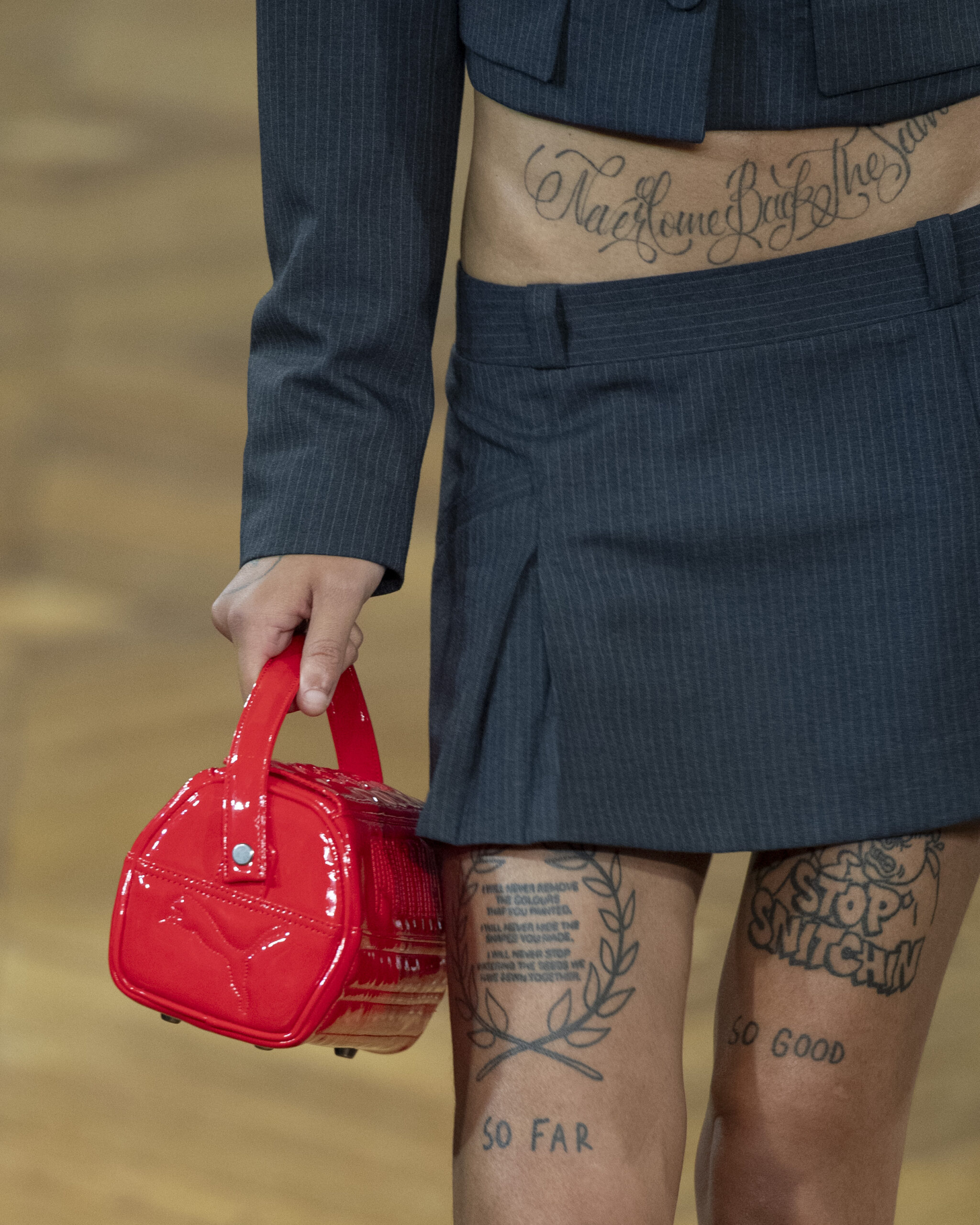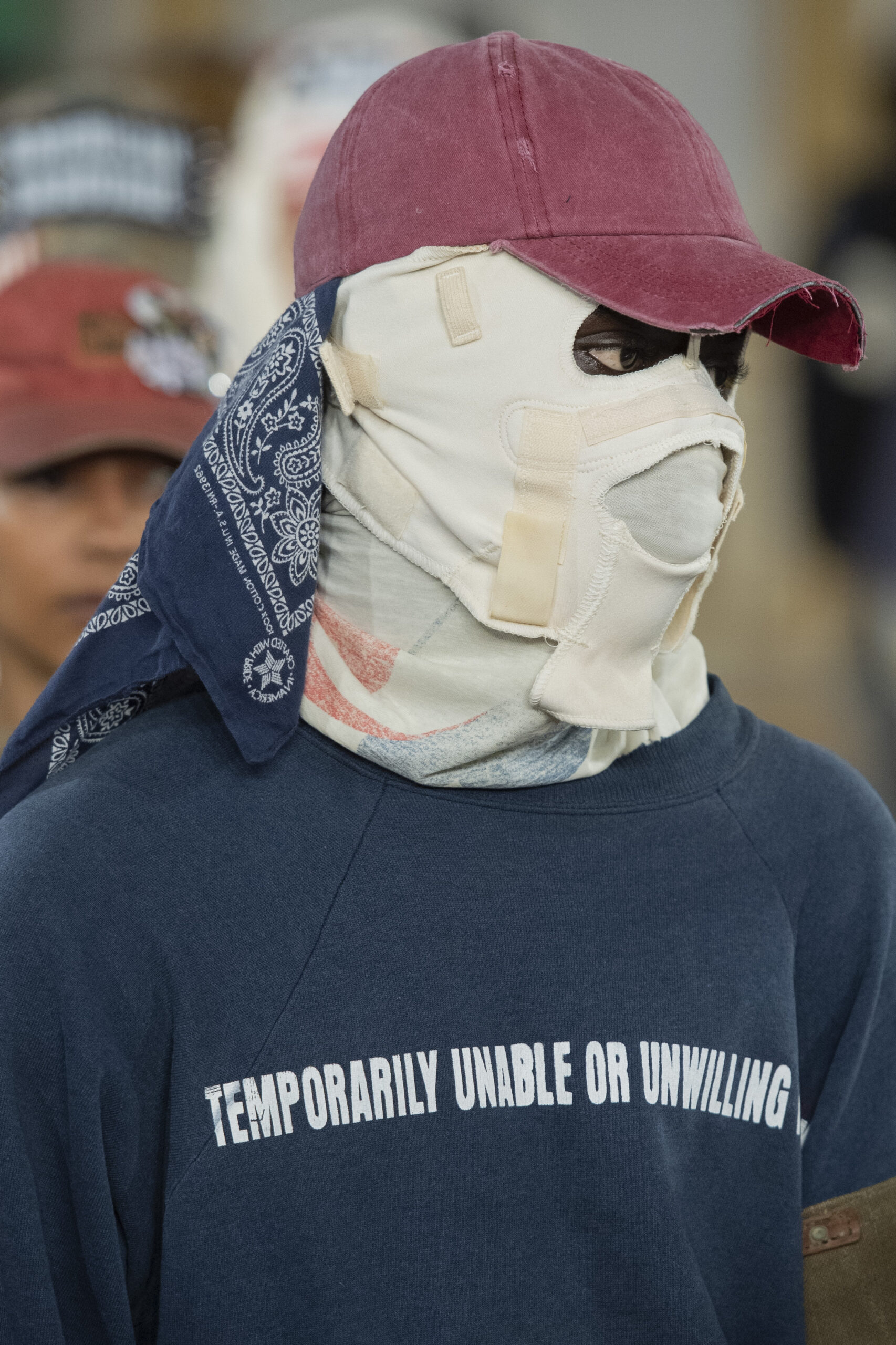 Le décor du défilé, comprenant des sacs poubelles transformés en chaises beanbag issues de la marque de mobilier Hommemade, en collaboration avec Crosby Studios, ajoutait une dimension immersive à cette expérience unique. Le défilé a été rythmé par la bande-son du prochain album d’A$AP Rocky, créant une synergie entre mode et musique.
