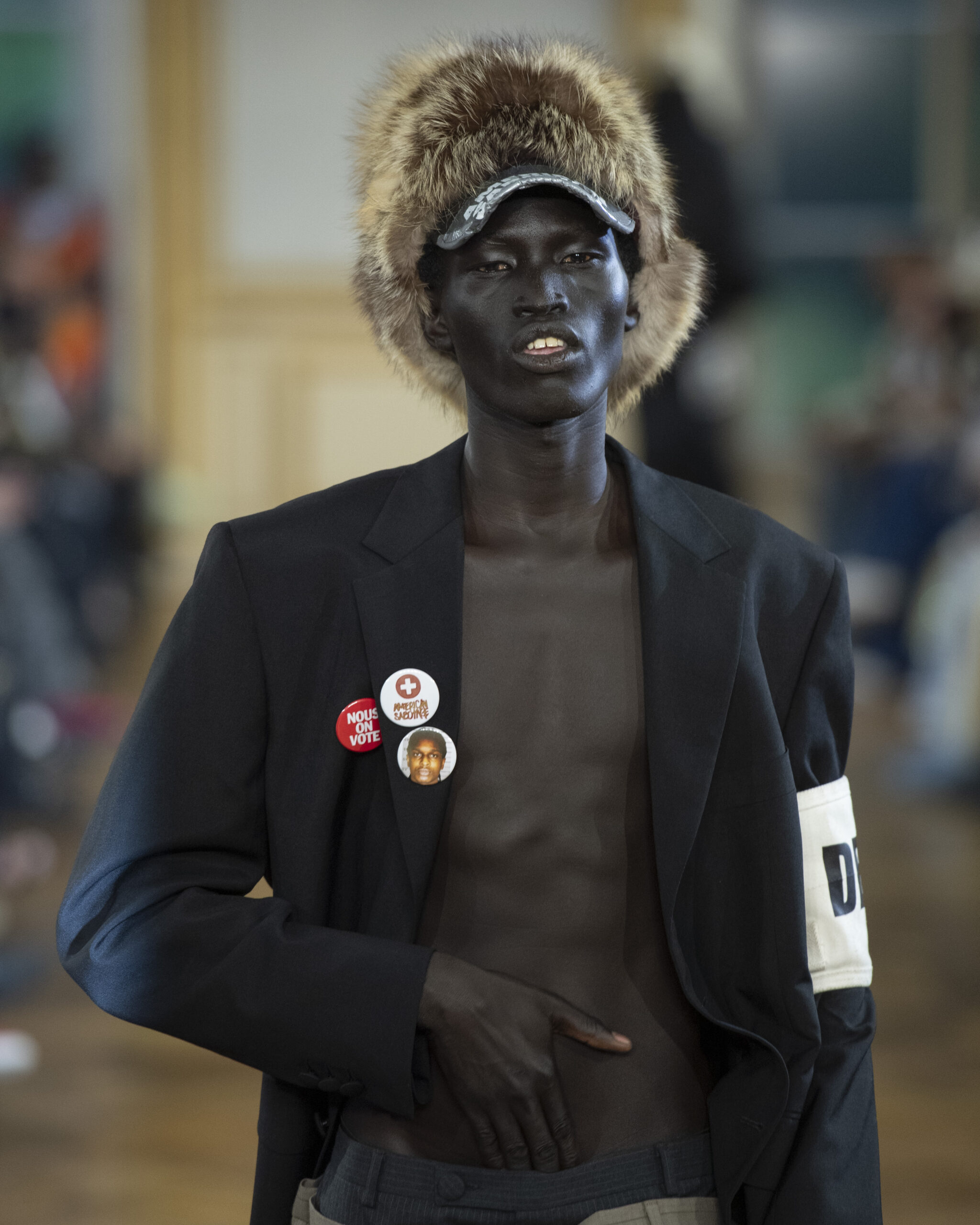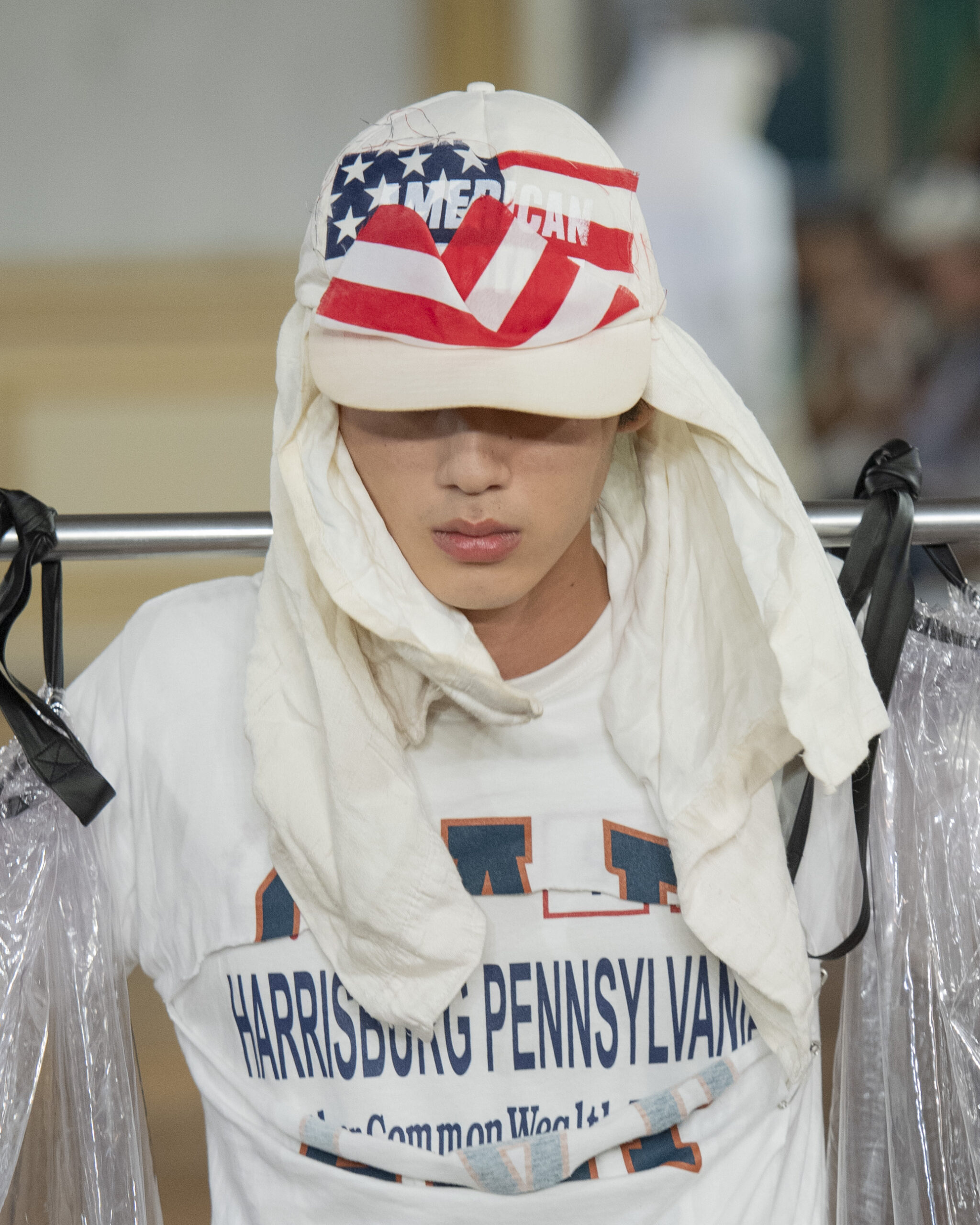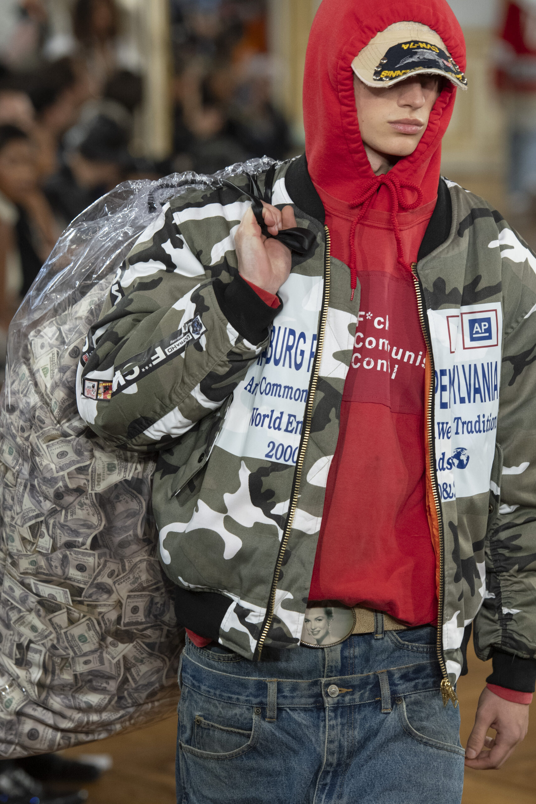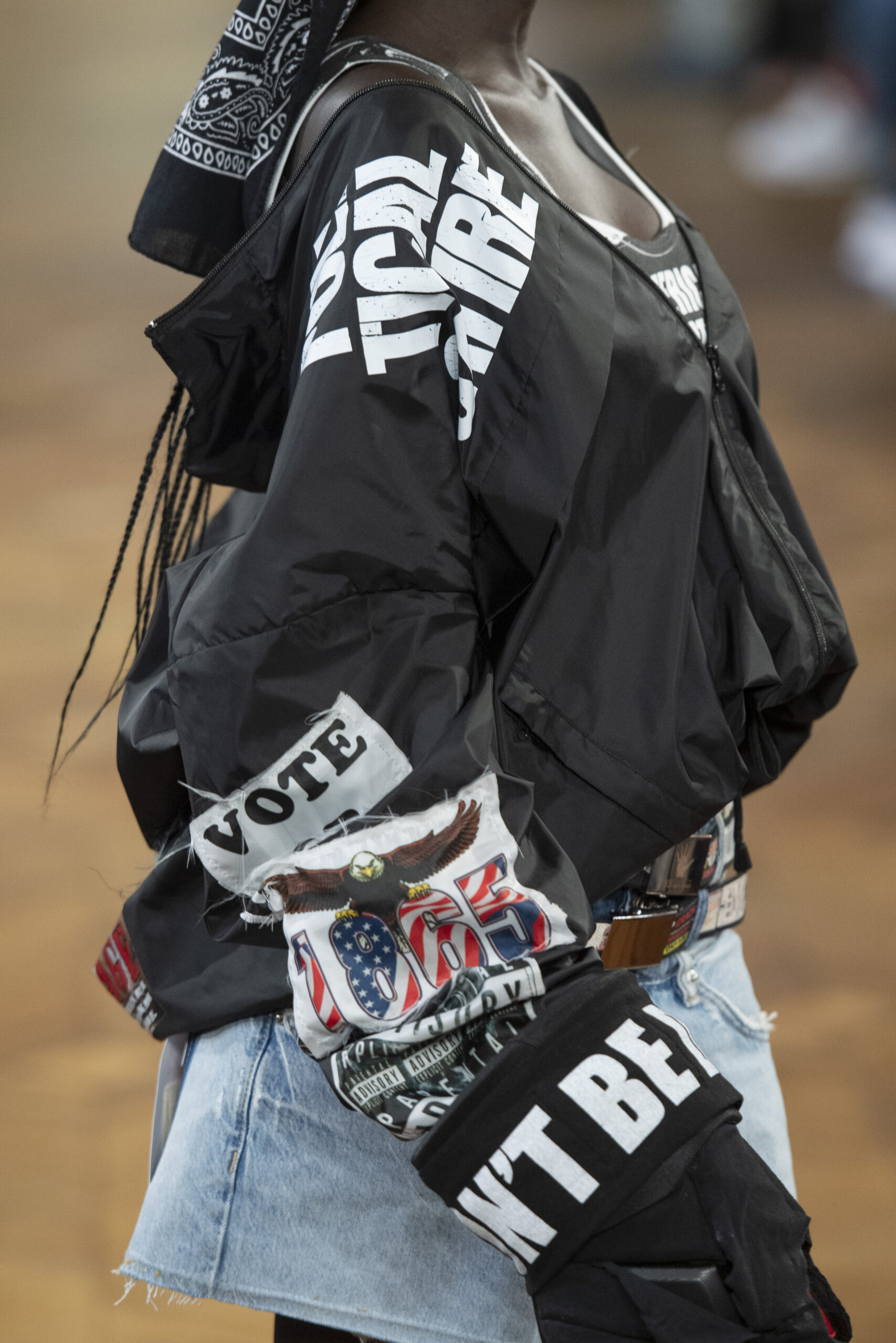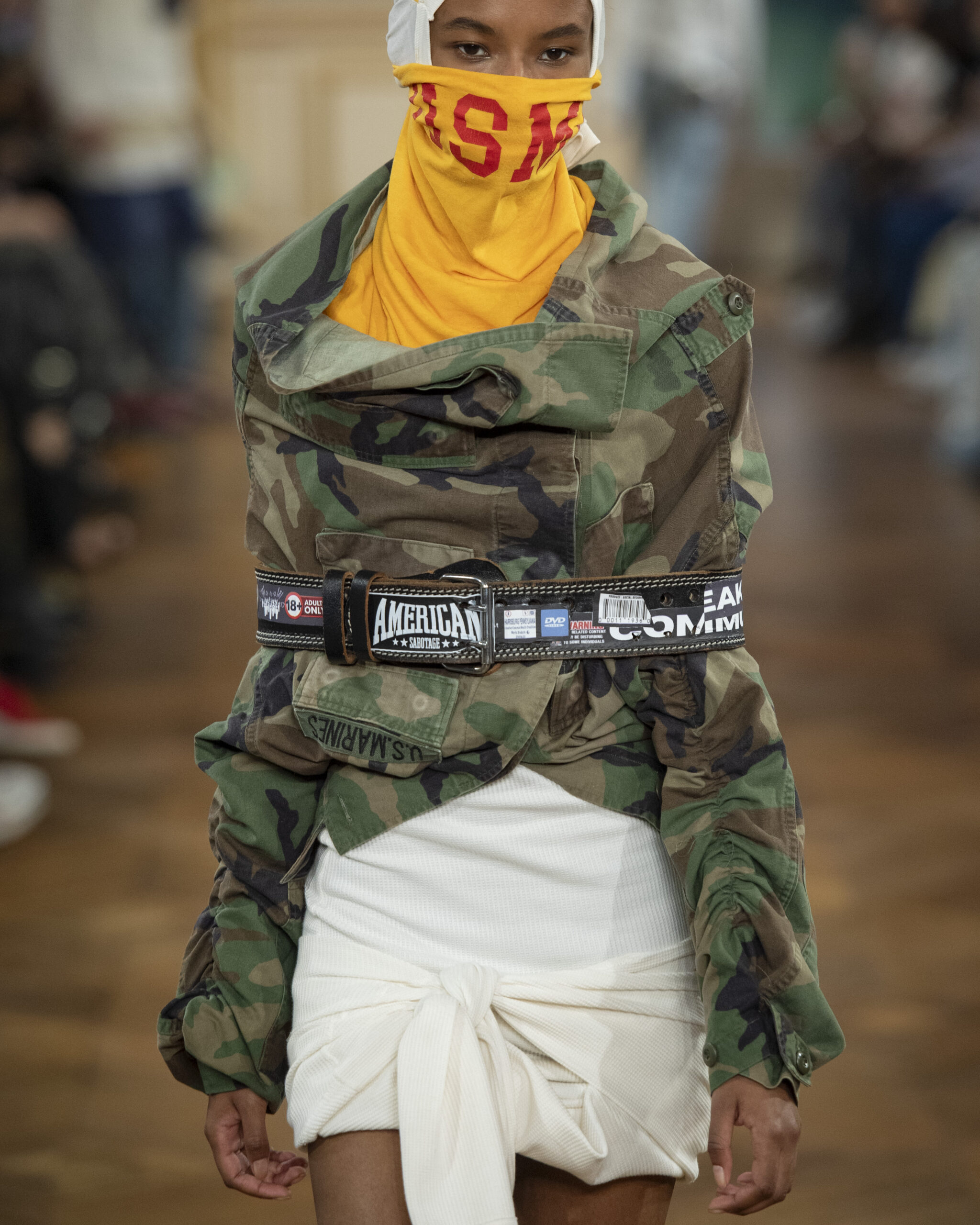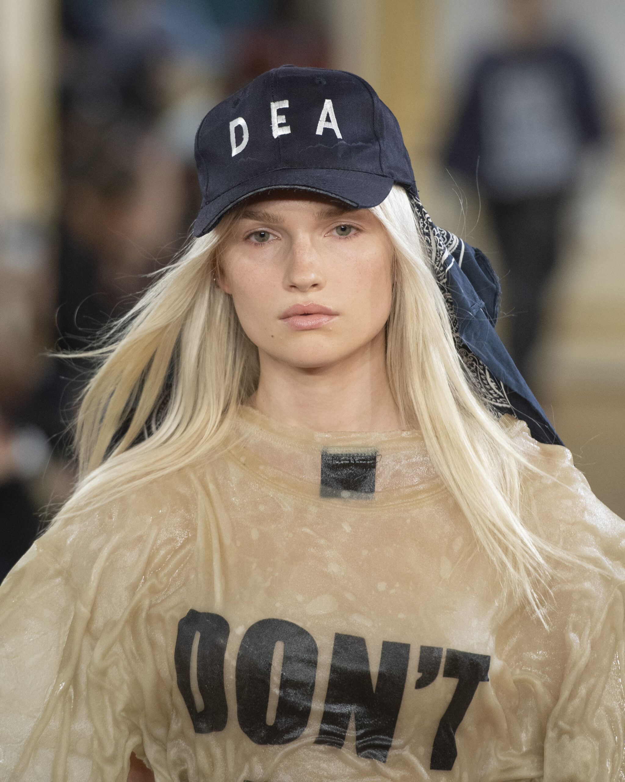 Le décor du défilé, comprenant des sacs poubelles transformés en chaises beanbag issues de la marque de mobilier Hommemade, en collaboration avec Crosby Studios, ajoutait une dimension immersive à cette expérience unique. Le défilé a été rythmé par la bande-son du prochain album d’A$AP Rocky, créant une synergie entre mode et musique.