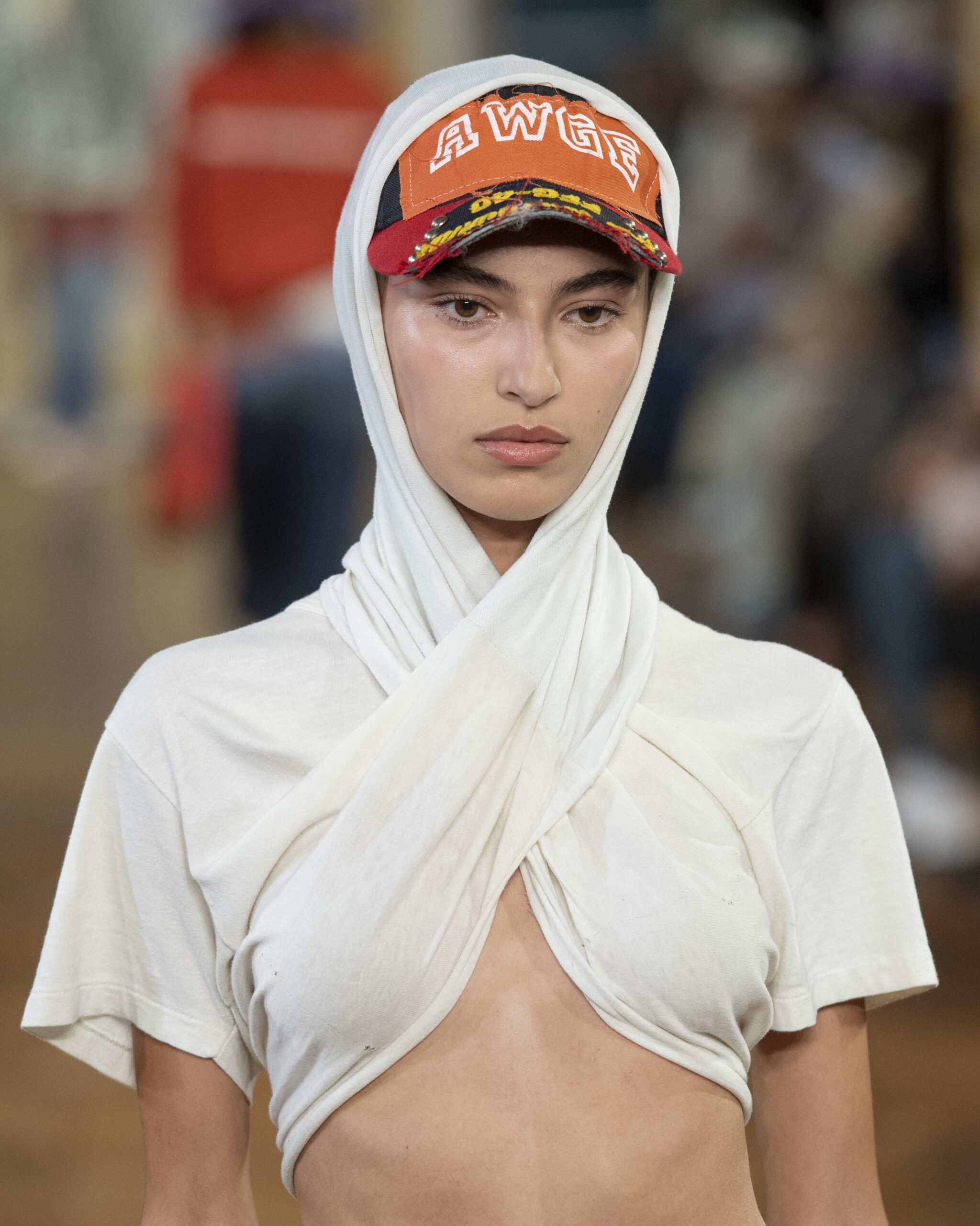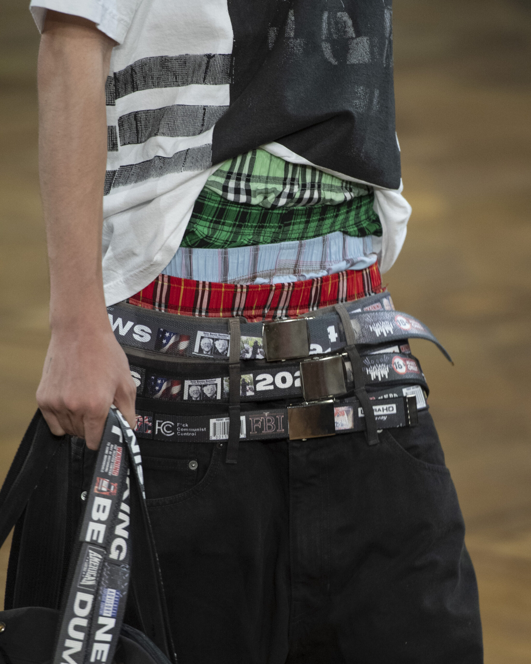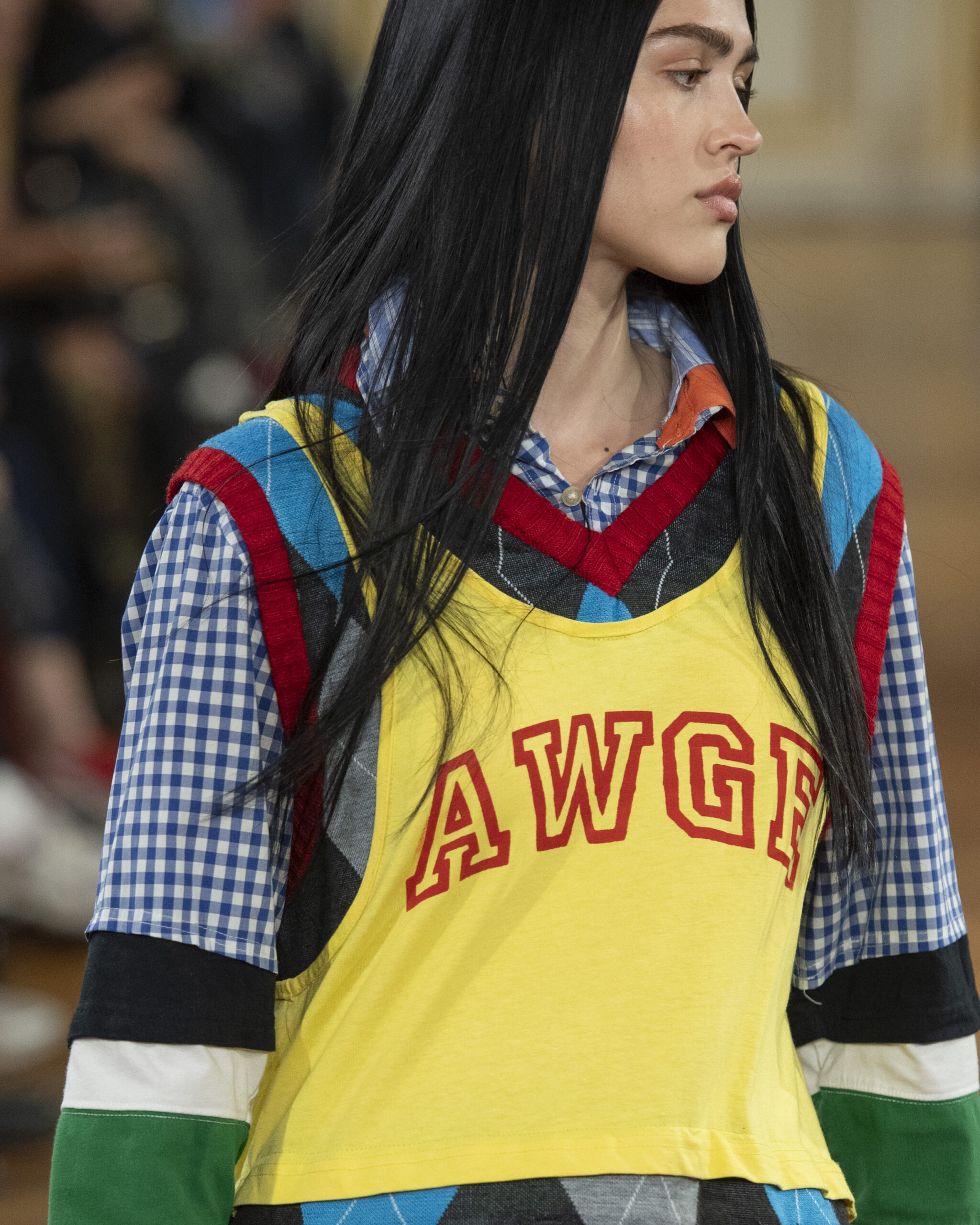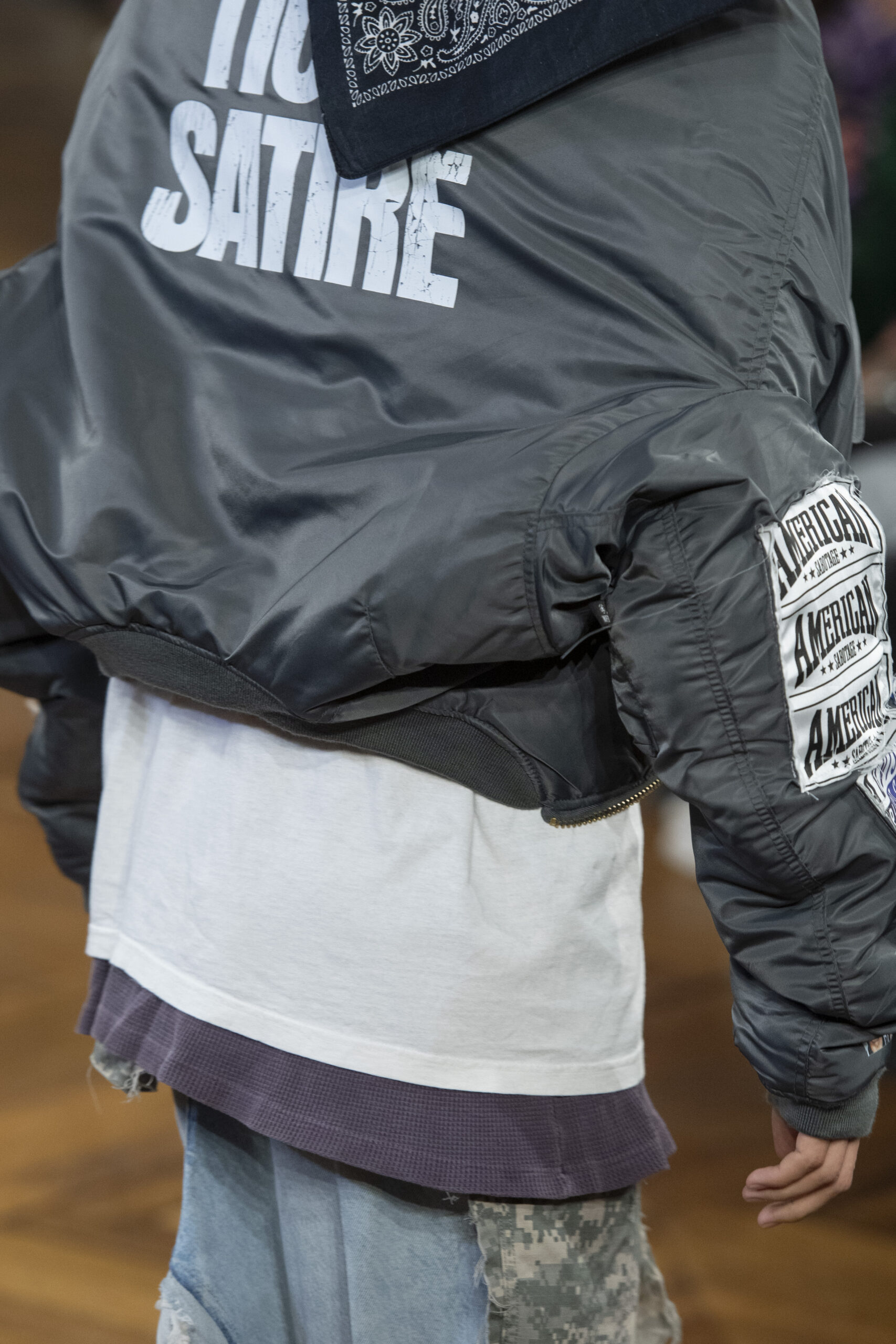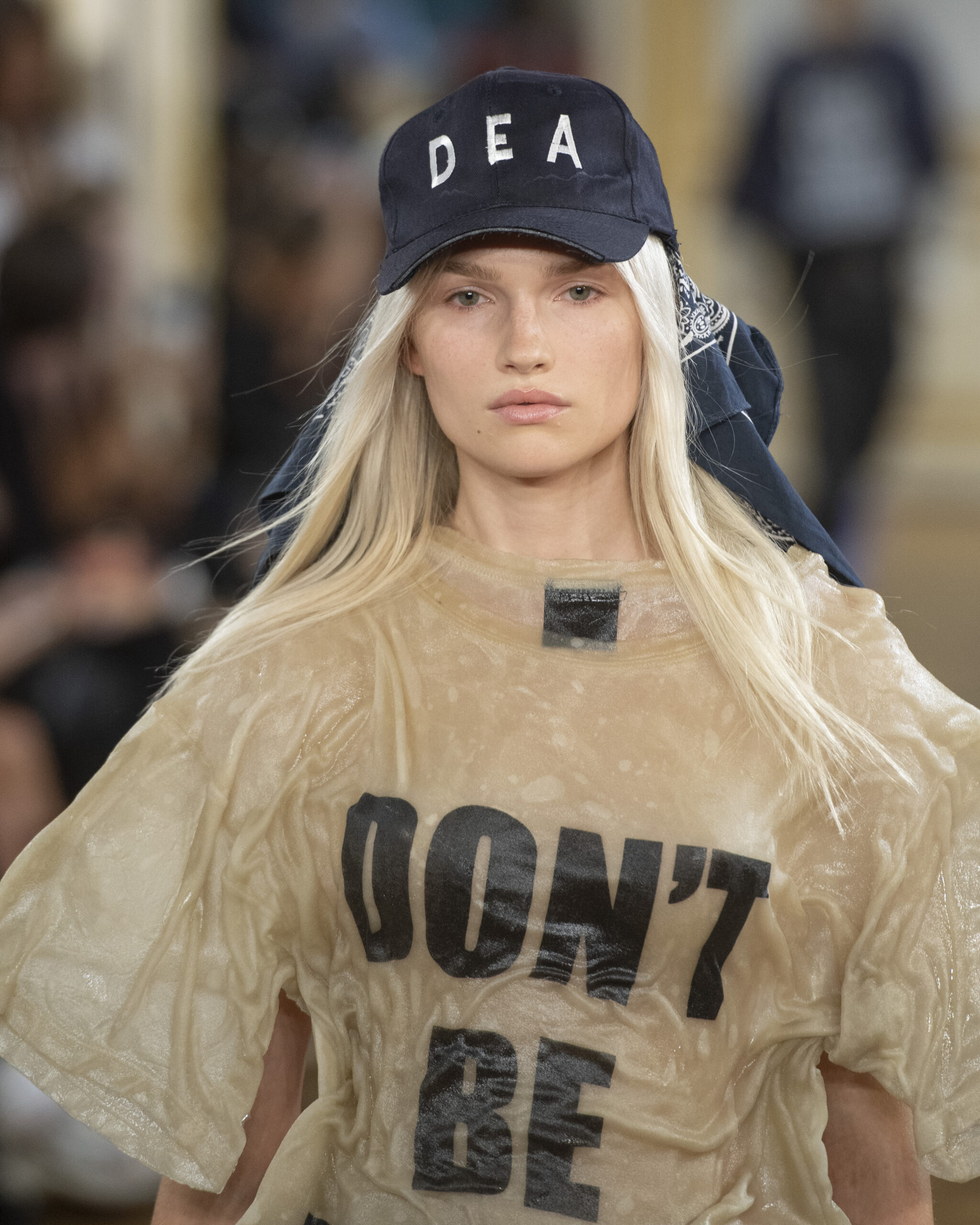 Le décor du défilé, comprenant des sacs poubelles transformés en chaises beanbag issues de la marque de mobilier Hommemade, en collaboration avec Crosby Studios, ajoutait une dimension immersive à cette expérience unique. Le défilé a été rythmé par la bande-son du prochain album d’A$AP Rocky, créant une synergie entre mode et musique.