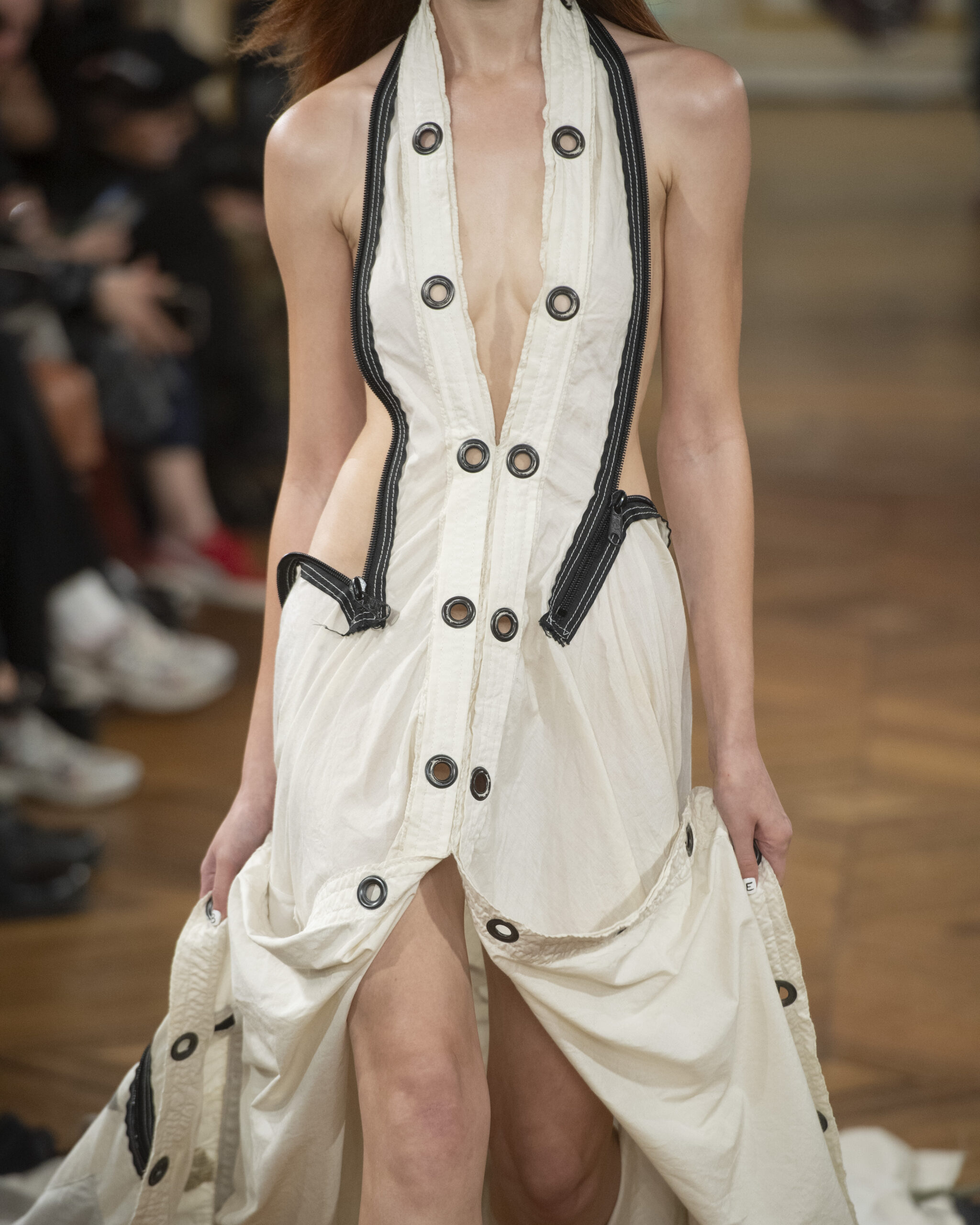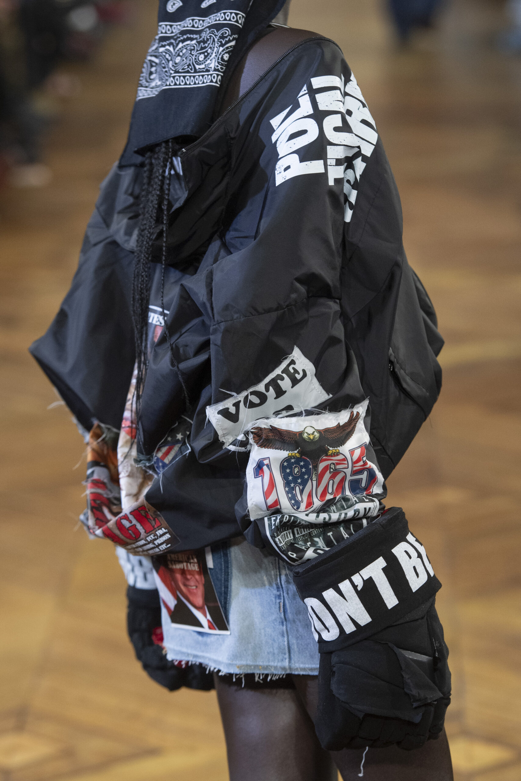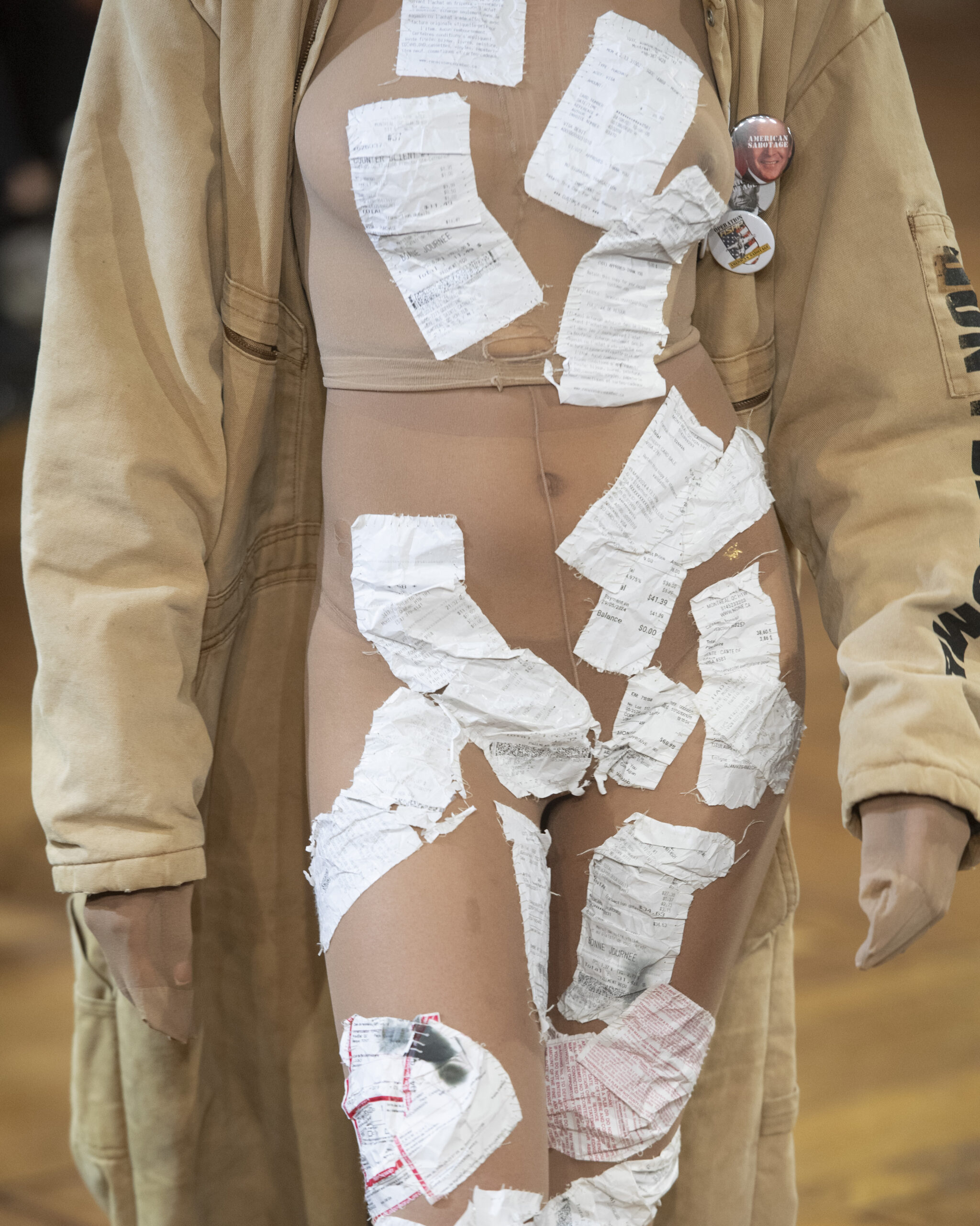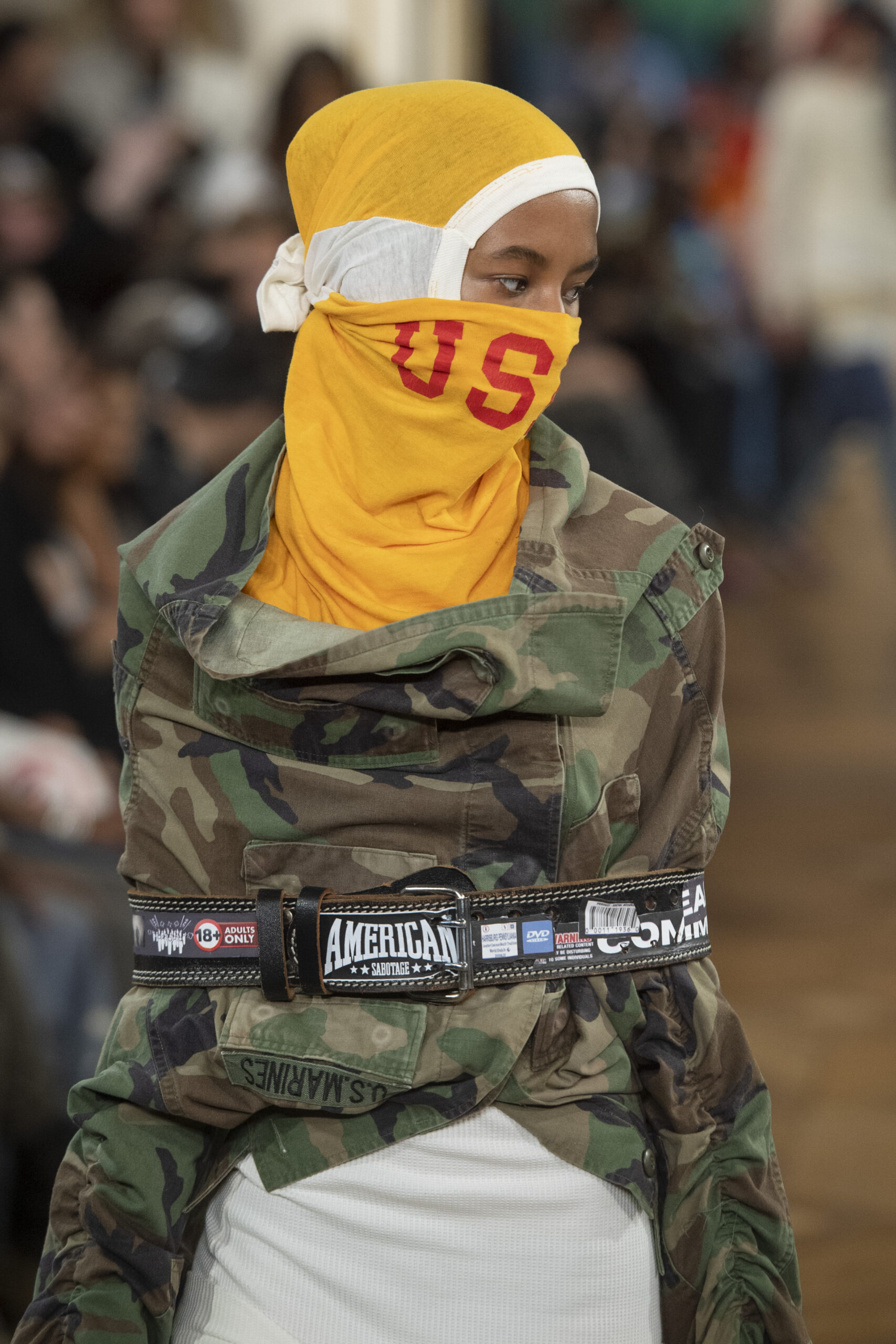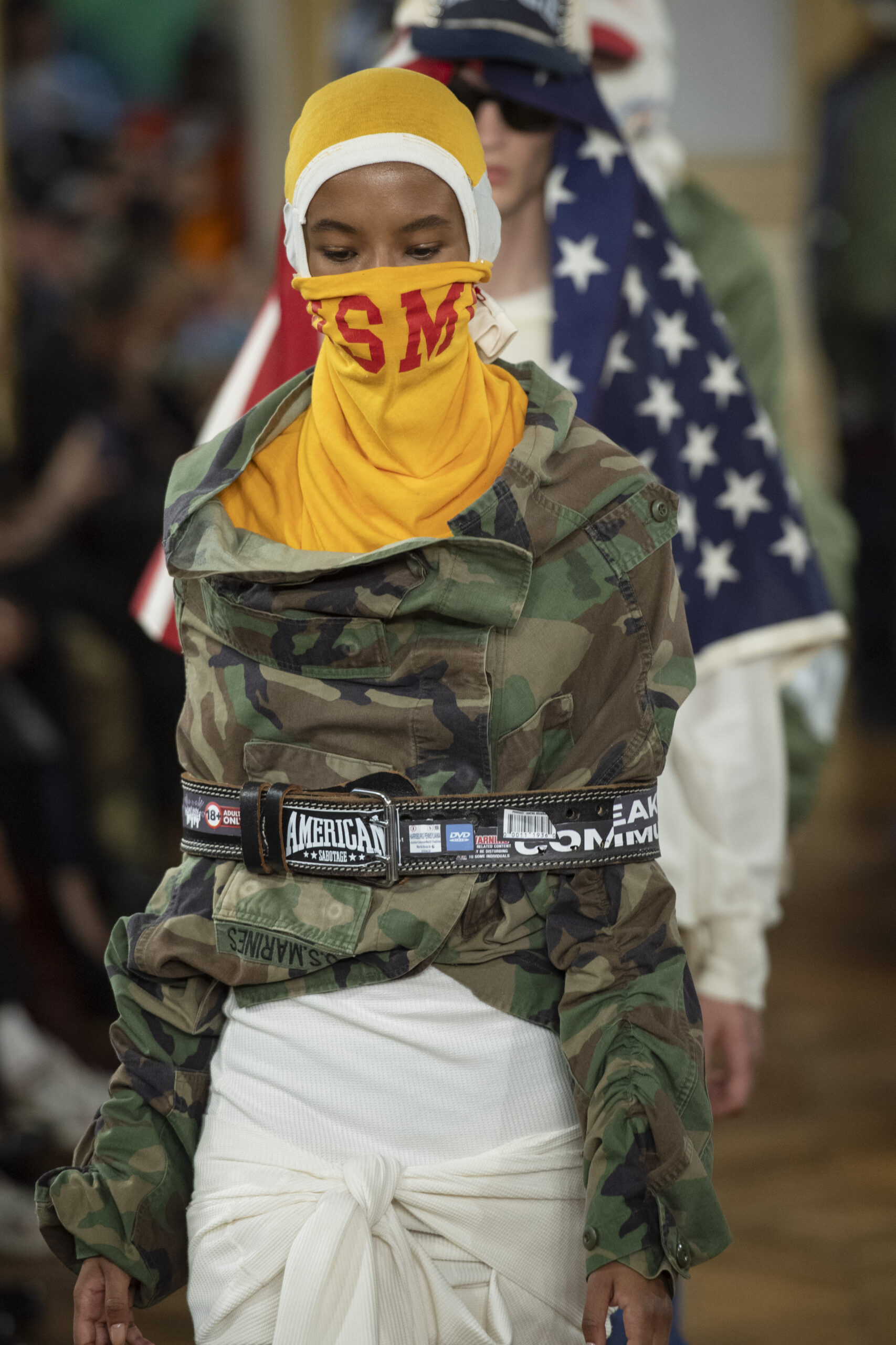 Le décor du défilé, comprenant des sacs poubelles transformés en chaises beanbag issues de la marque de mobilier Hommemade, en collaboration avec Crosby Studios, ajoutait une dimension immersive à cette expérience unique. Le défilé a été rythmé par la bande-son du prochain album d’A$AP Rocky, créant une synergie entre mode et musique.
