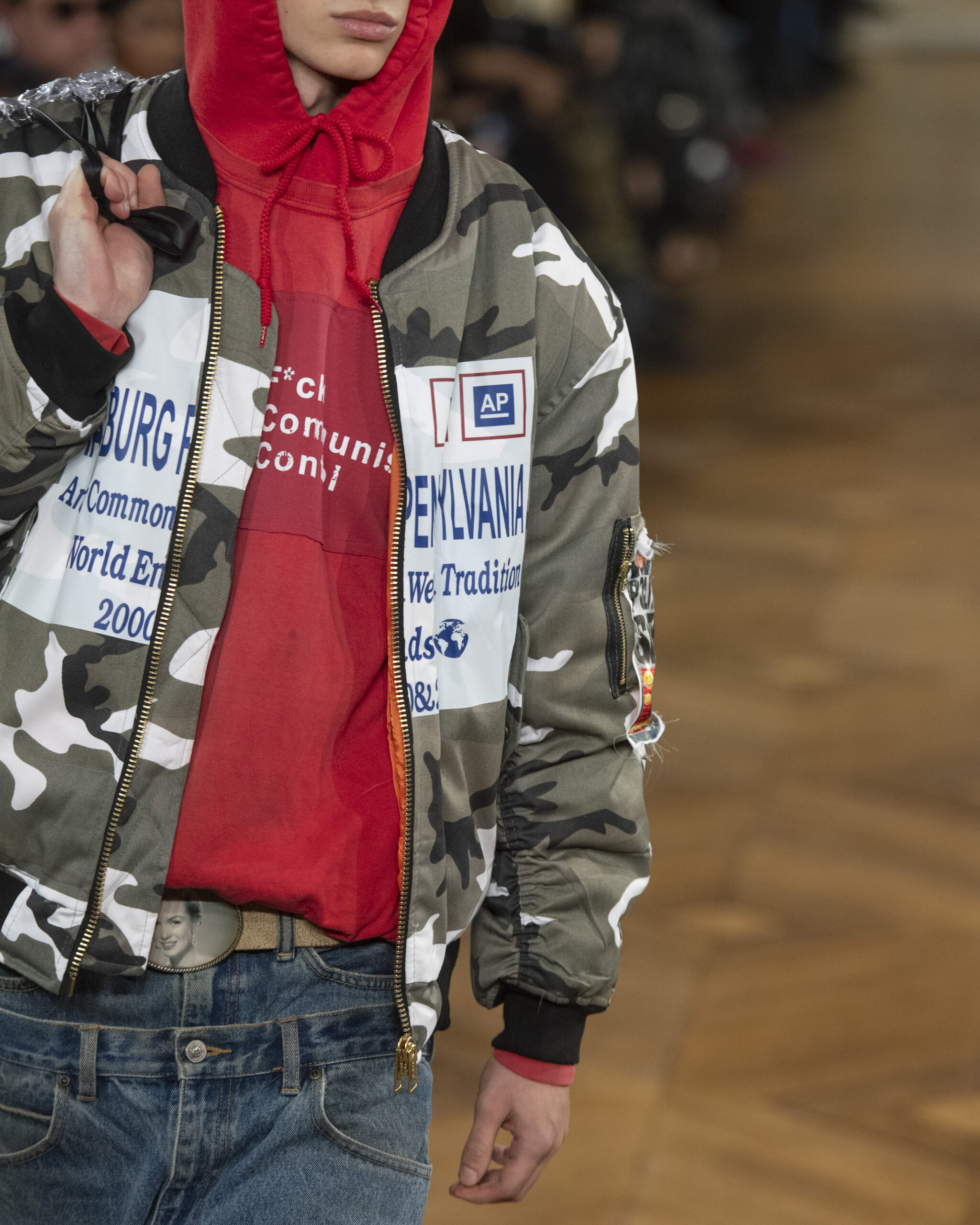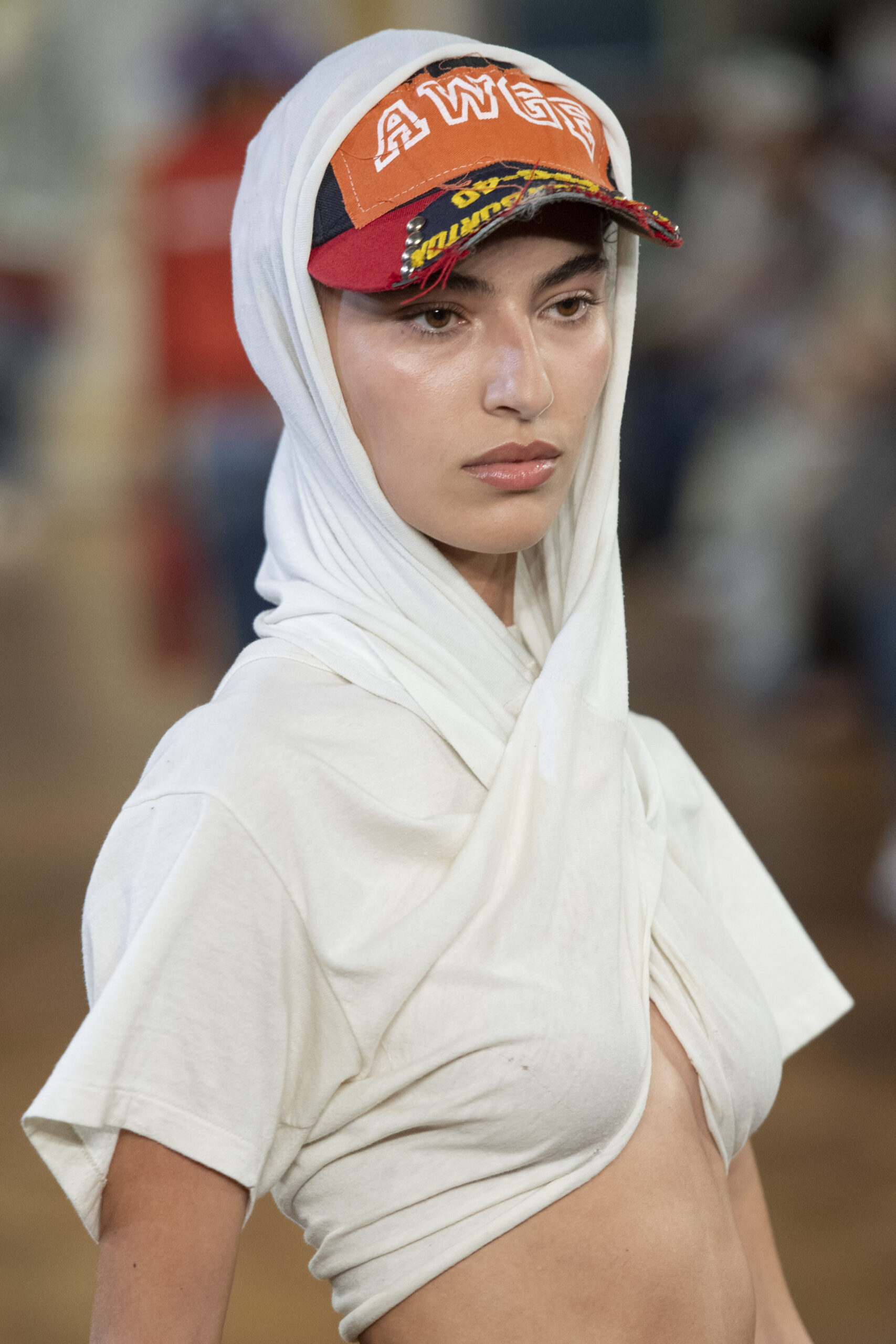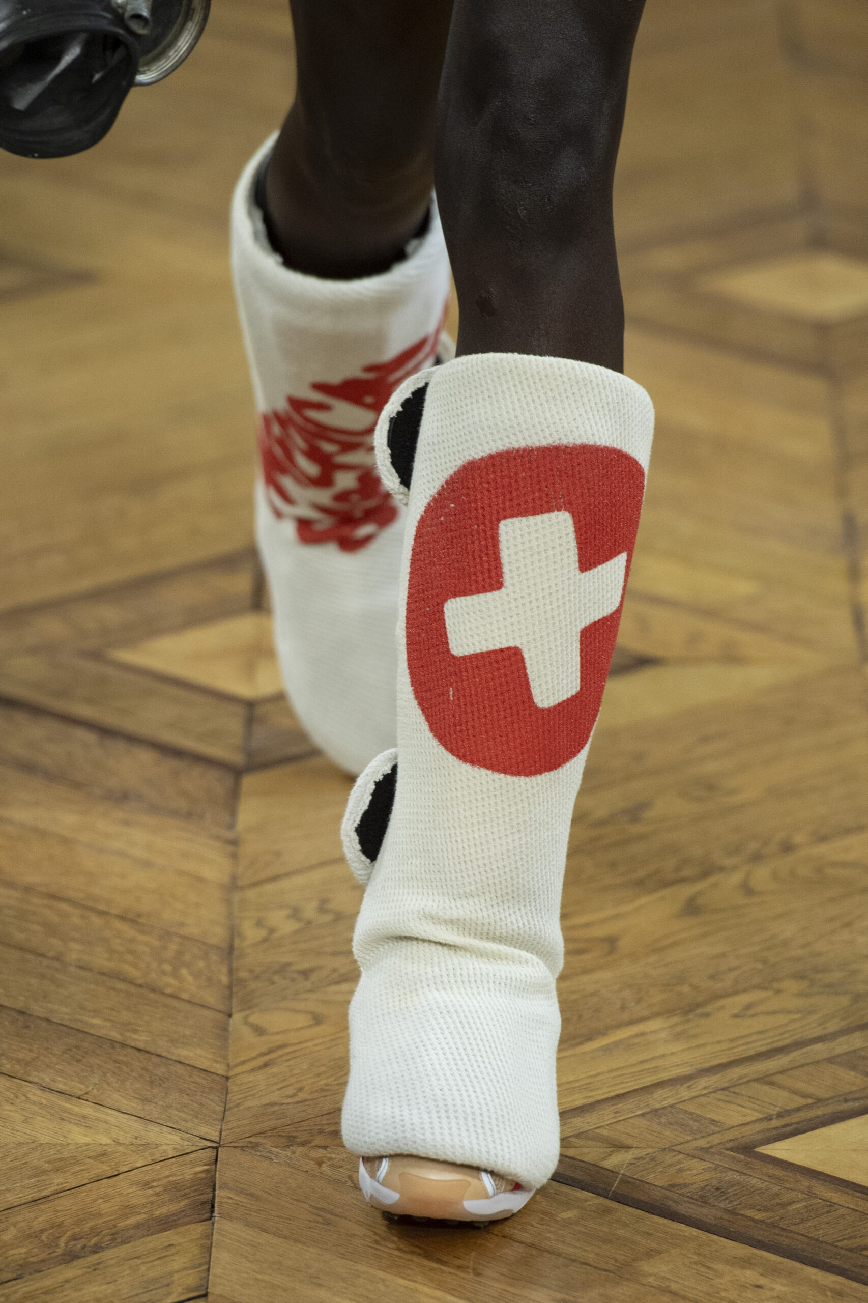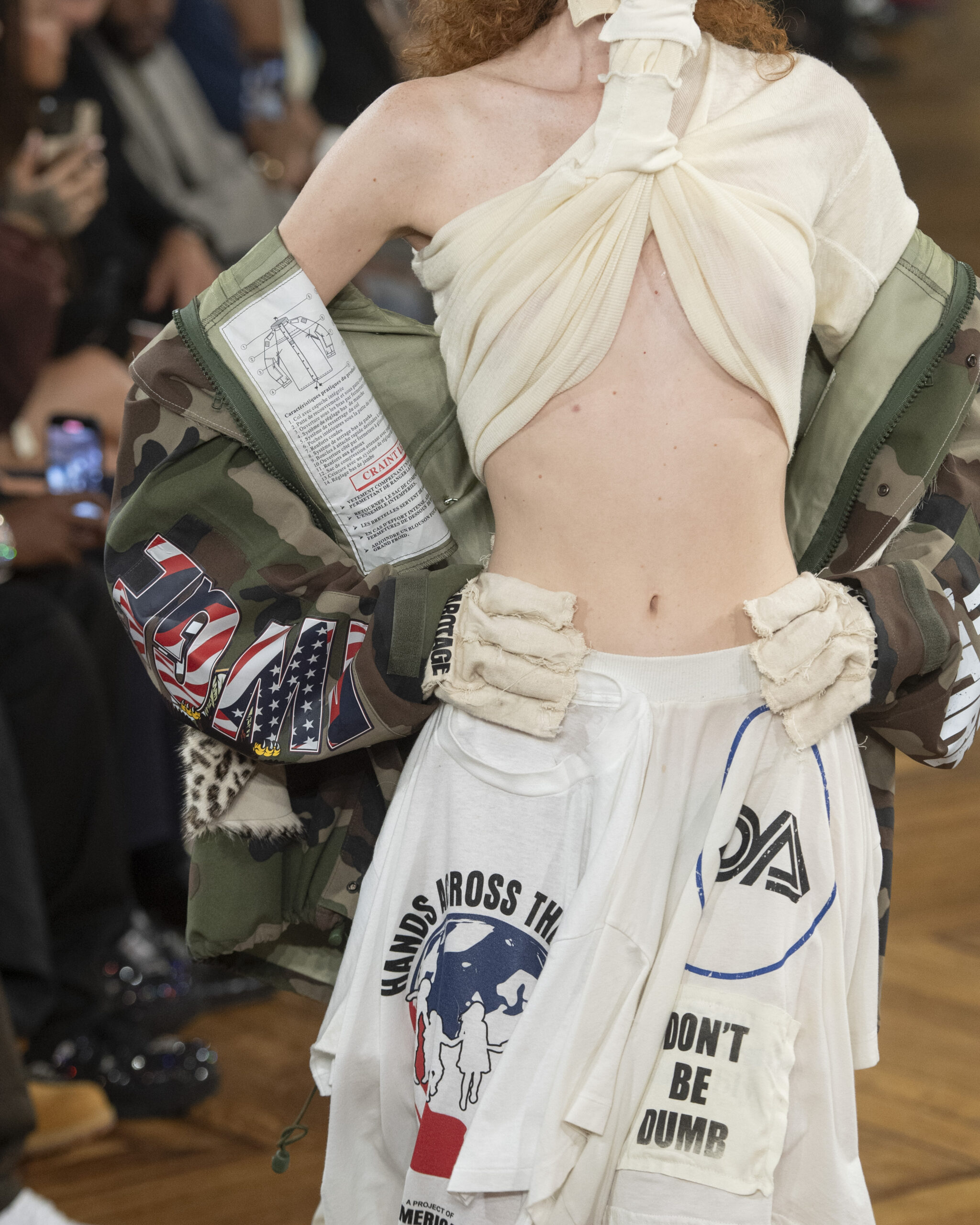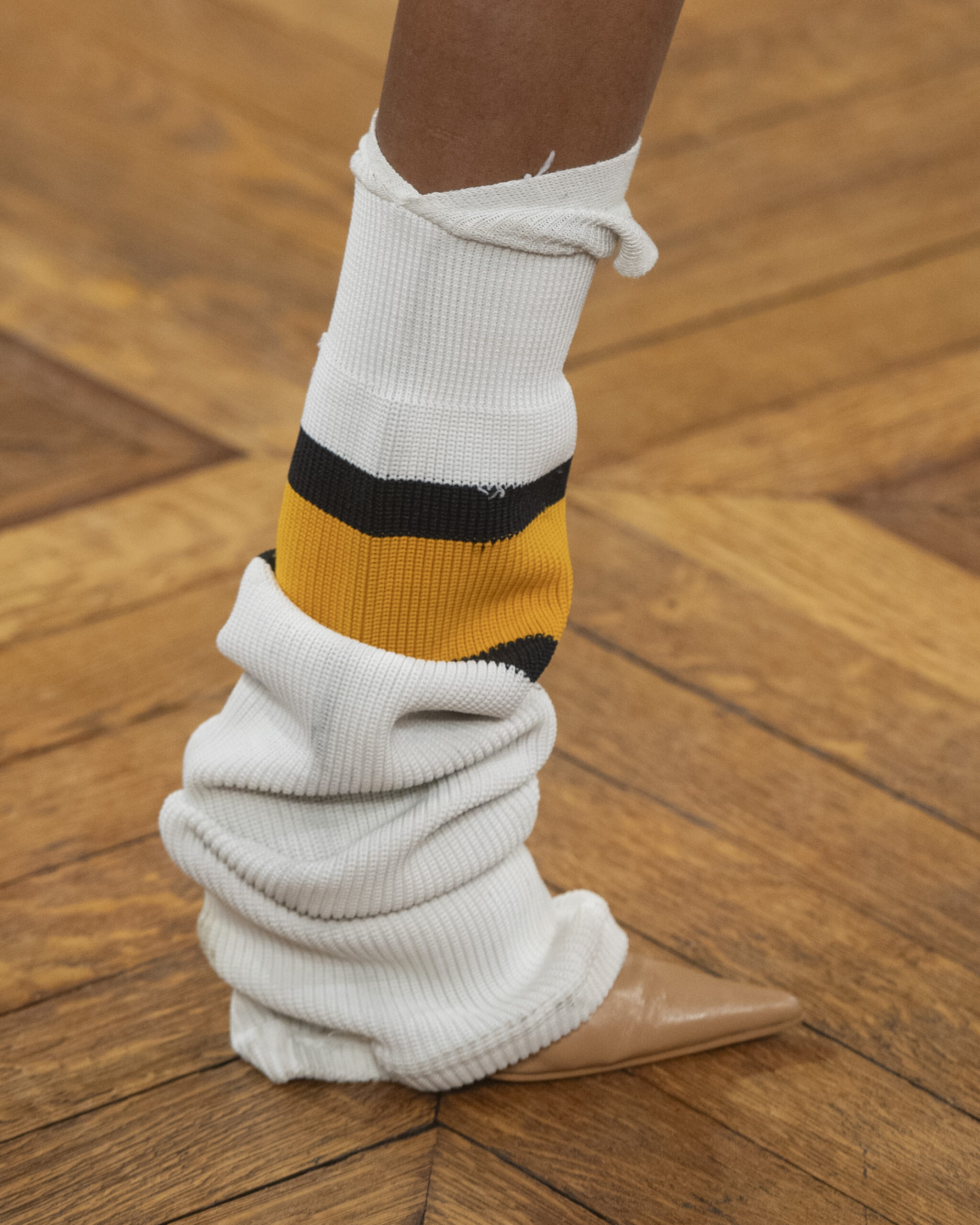 Le décor du défilé, comprenant des sacs poubelles transformés en chaises beanbag issues de la marque de mobilier Hommemade, en collaboration avec Crosby Studios, ajoutait une dimension immersive à cette expérience unique. Le défilé a été rythmé par la bande-son du prochain album d’A$AP Rocky, créant une synergie entre mode et musique.