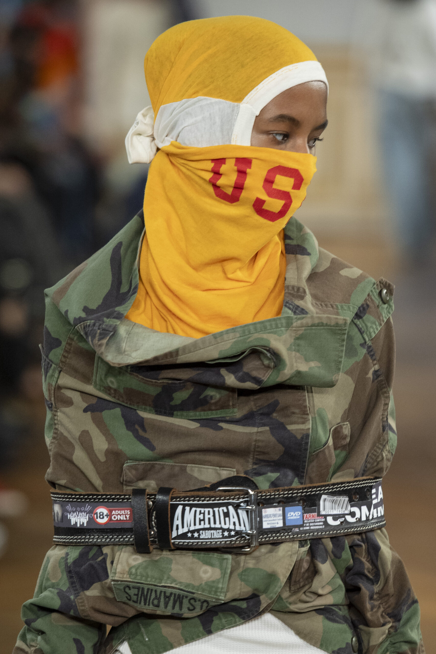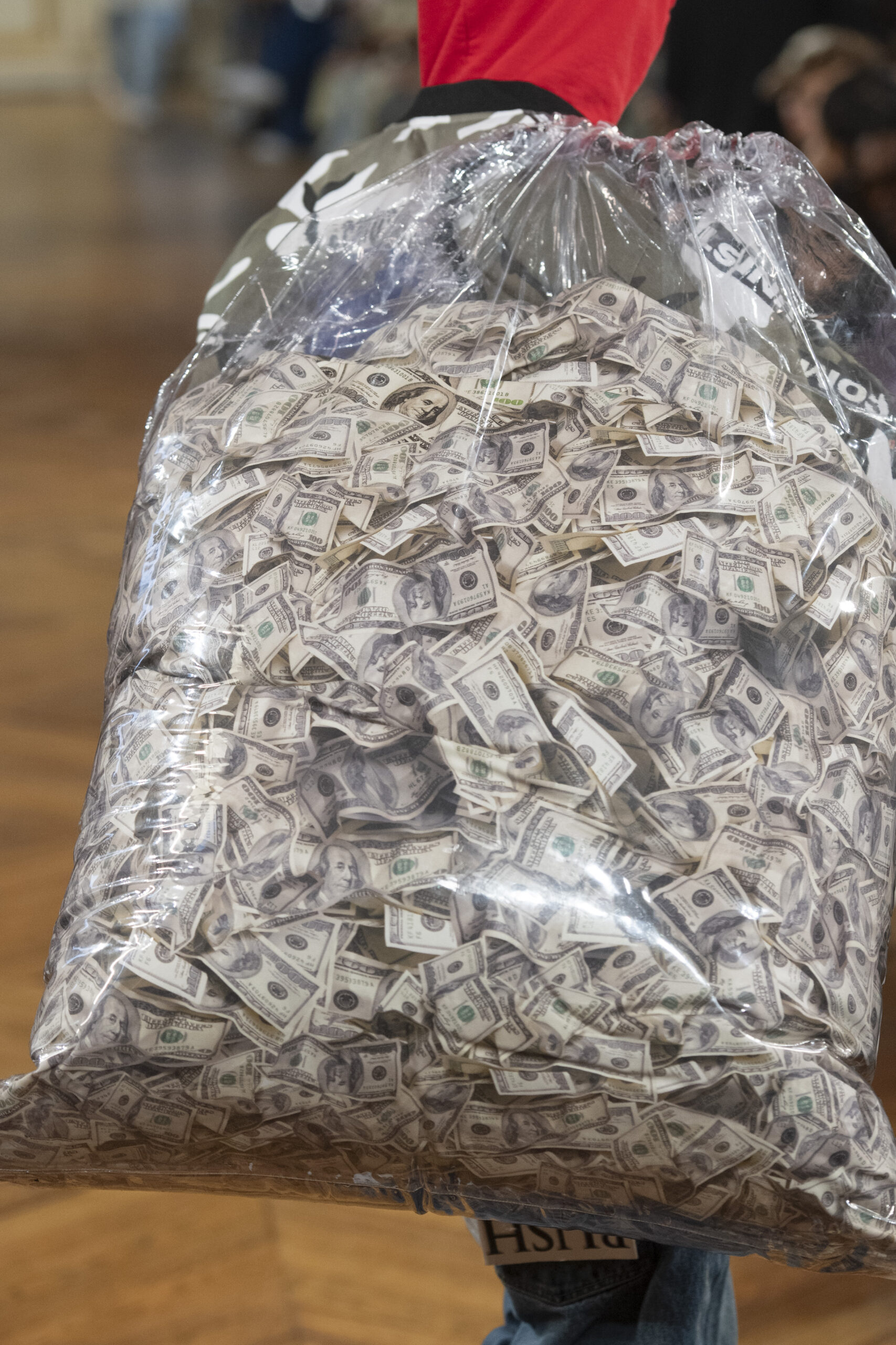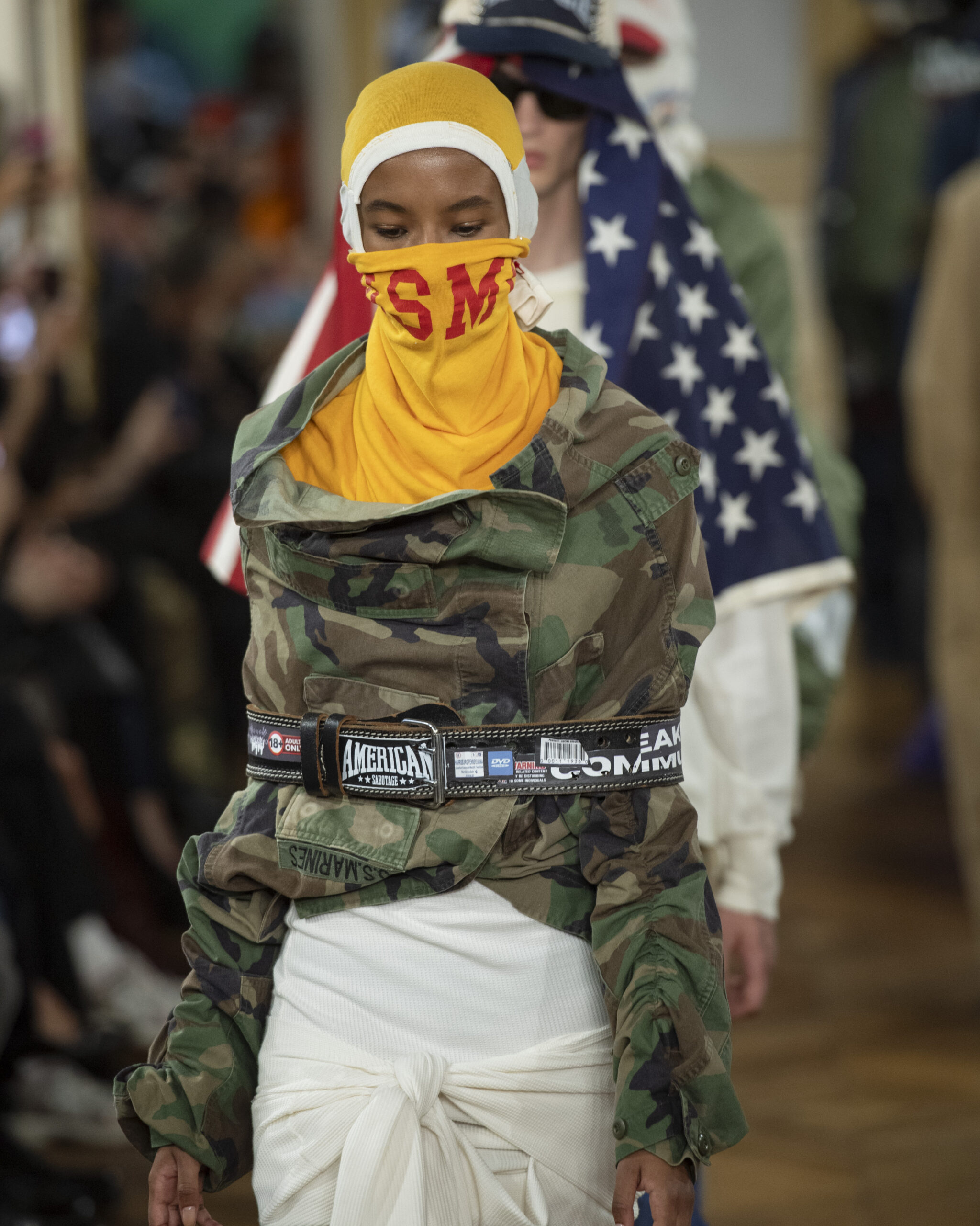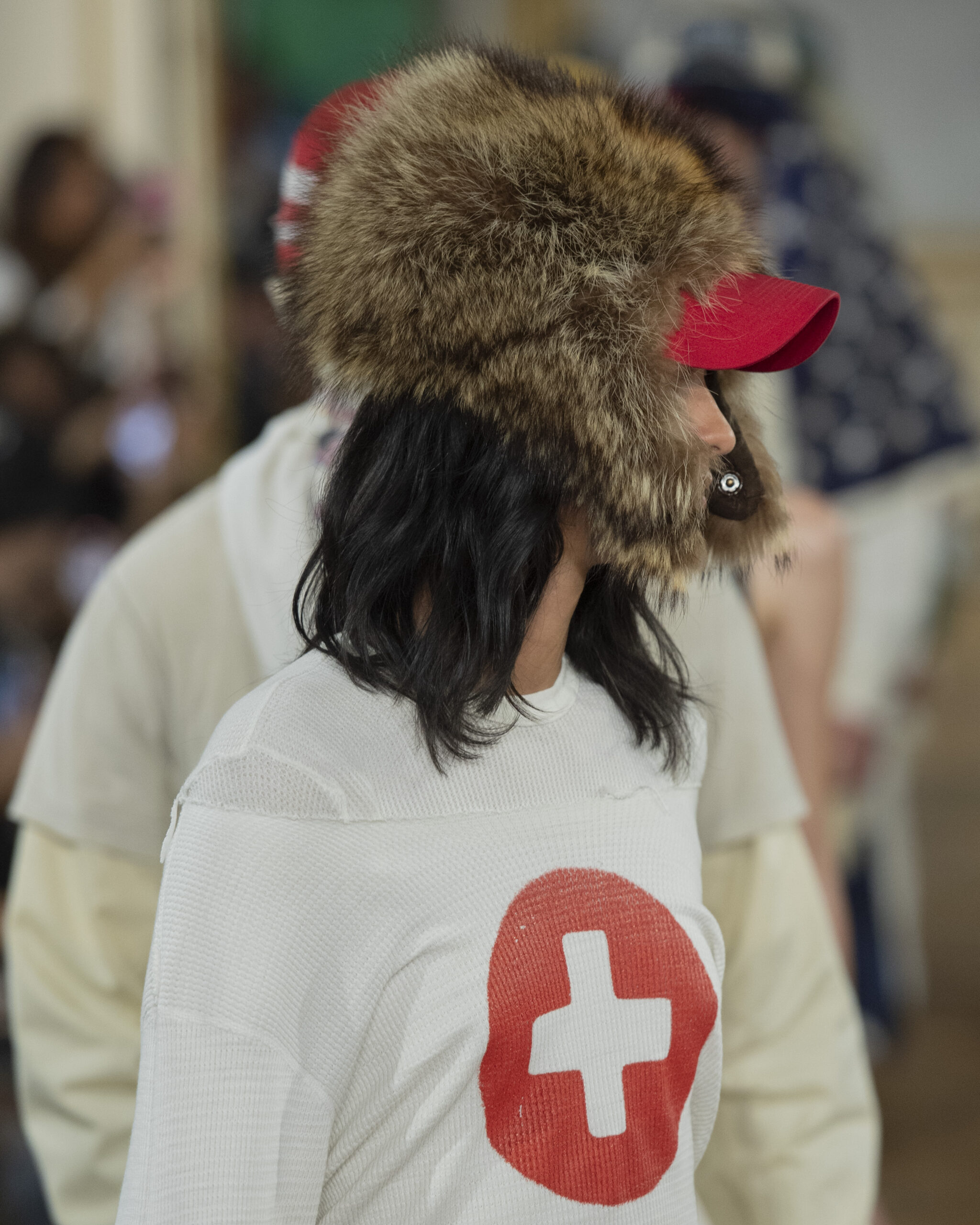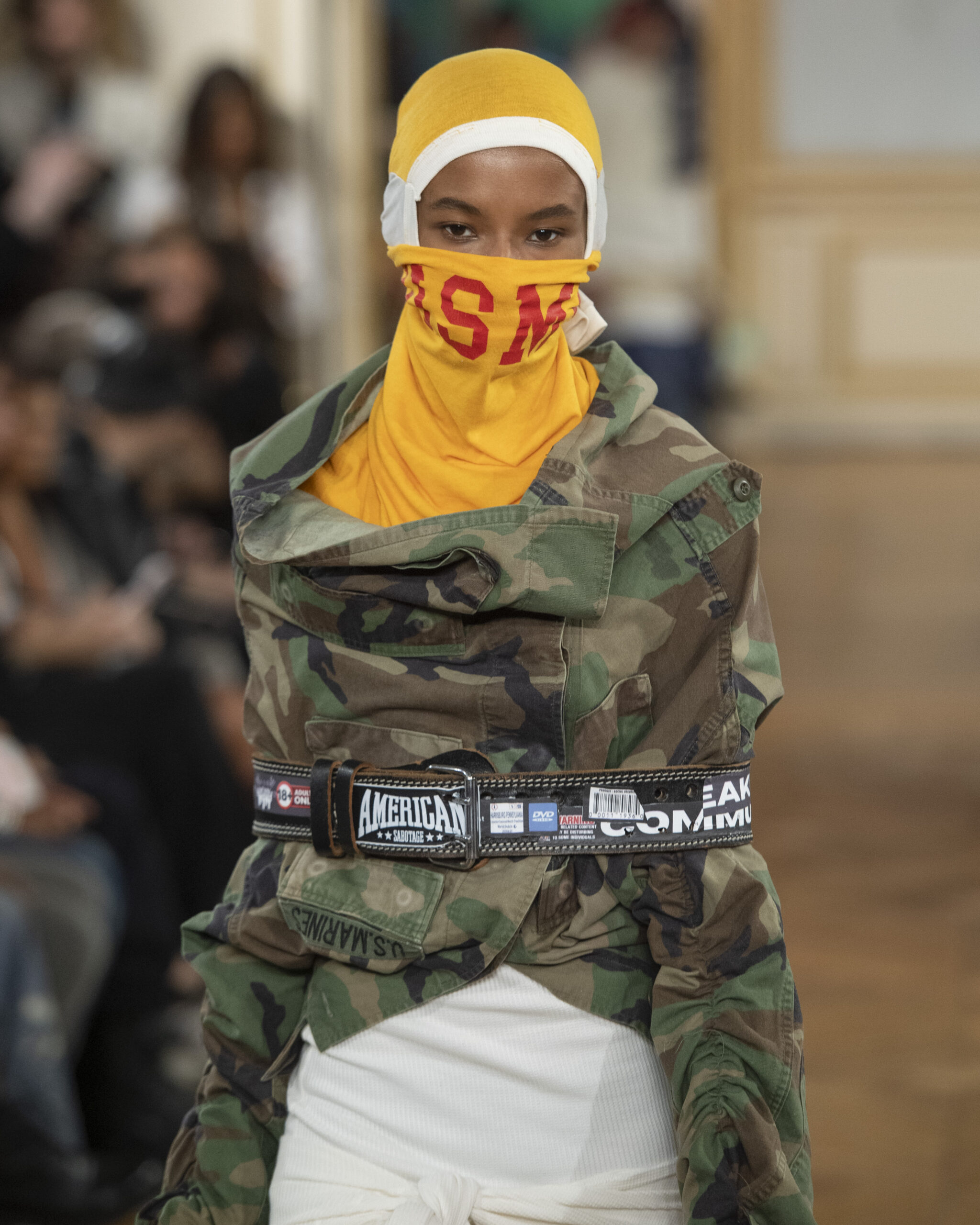 Le décor du défilé, comprenant des sacs poubelles transformés en chaises beanbag issues de la marque de mobilier Hommemade, en collaboration avec Crosby Studios, ajoutait une dimension immersive à cette expérience unique. Le défilé a été rythmé par la bande-son du prochain album d’A$AP Rocky, créant une synergie entre mode et musique.