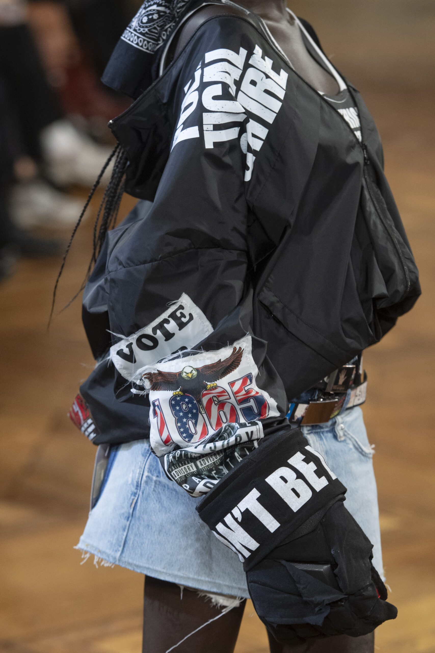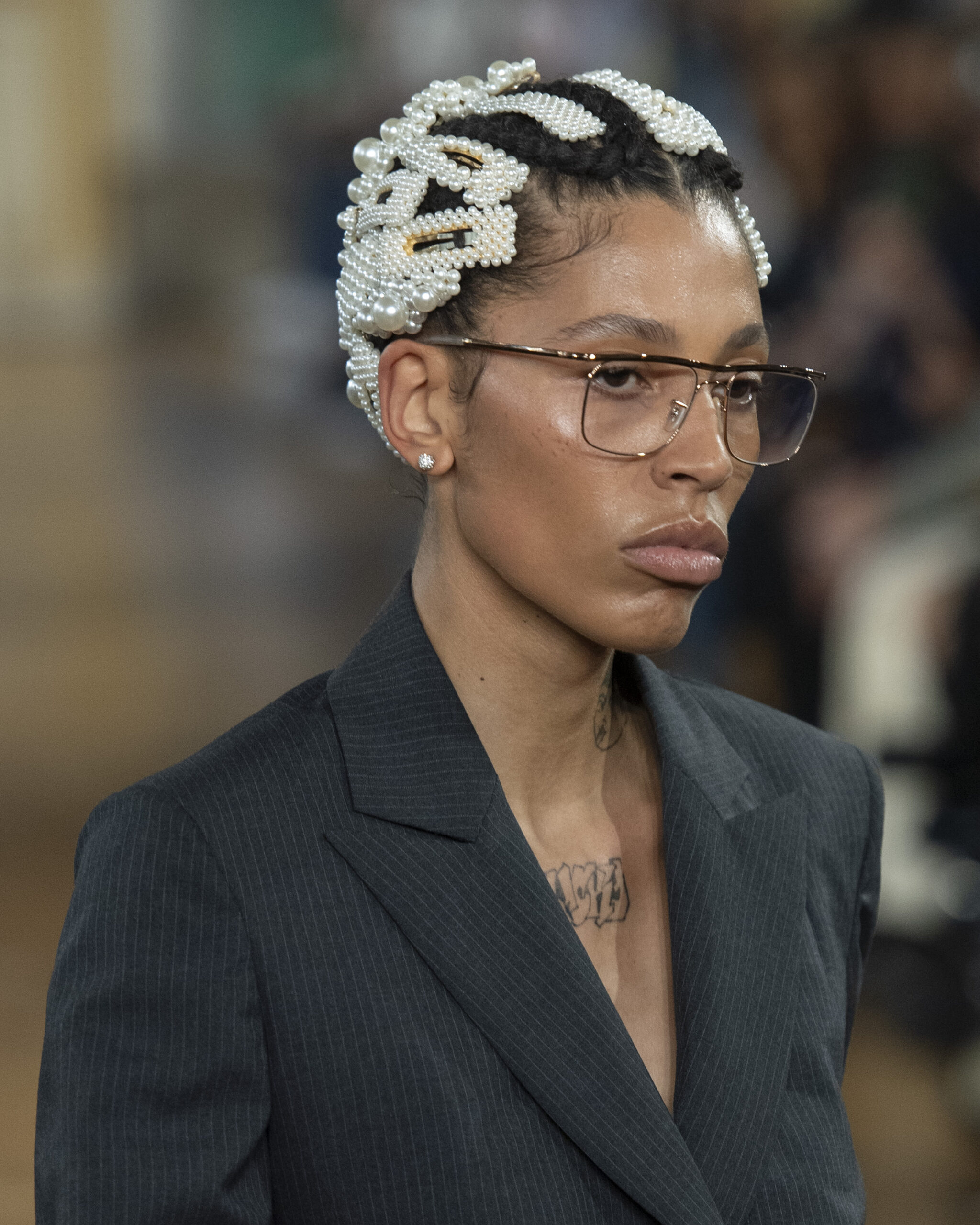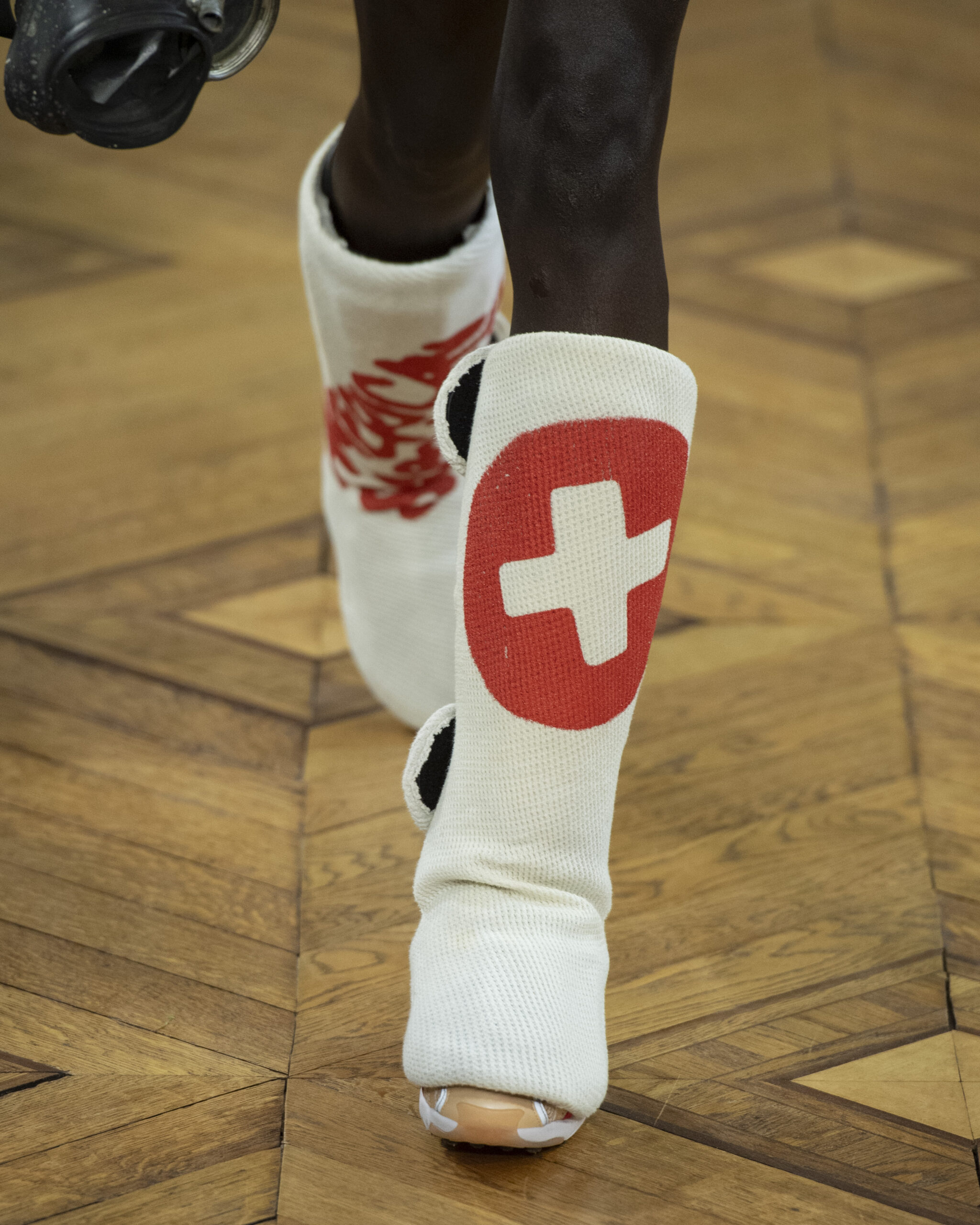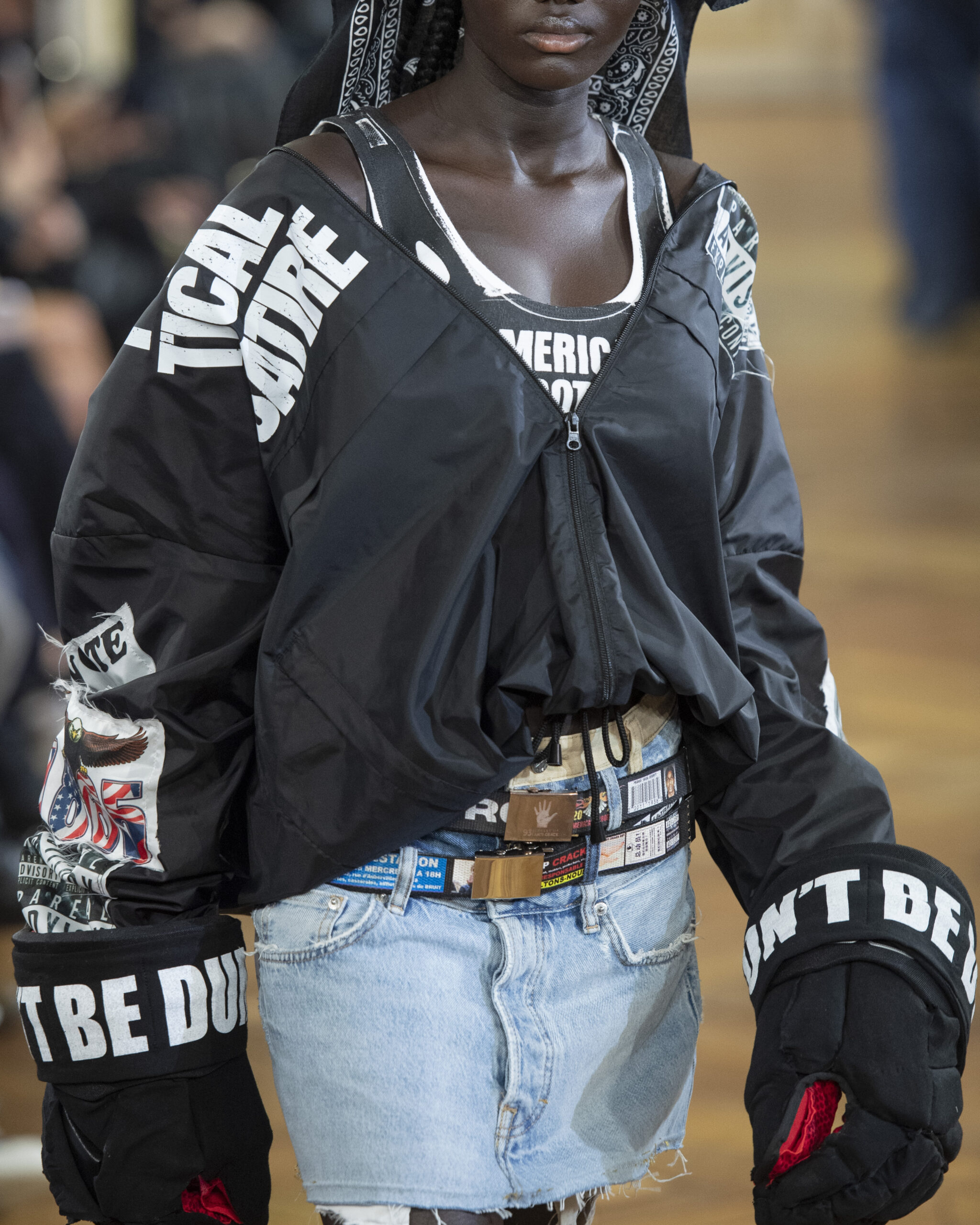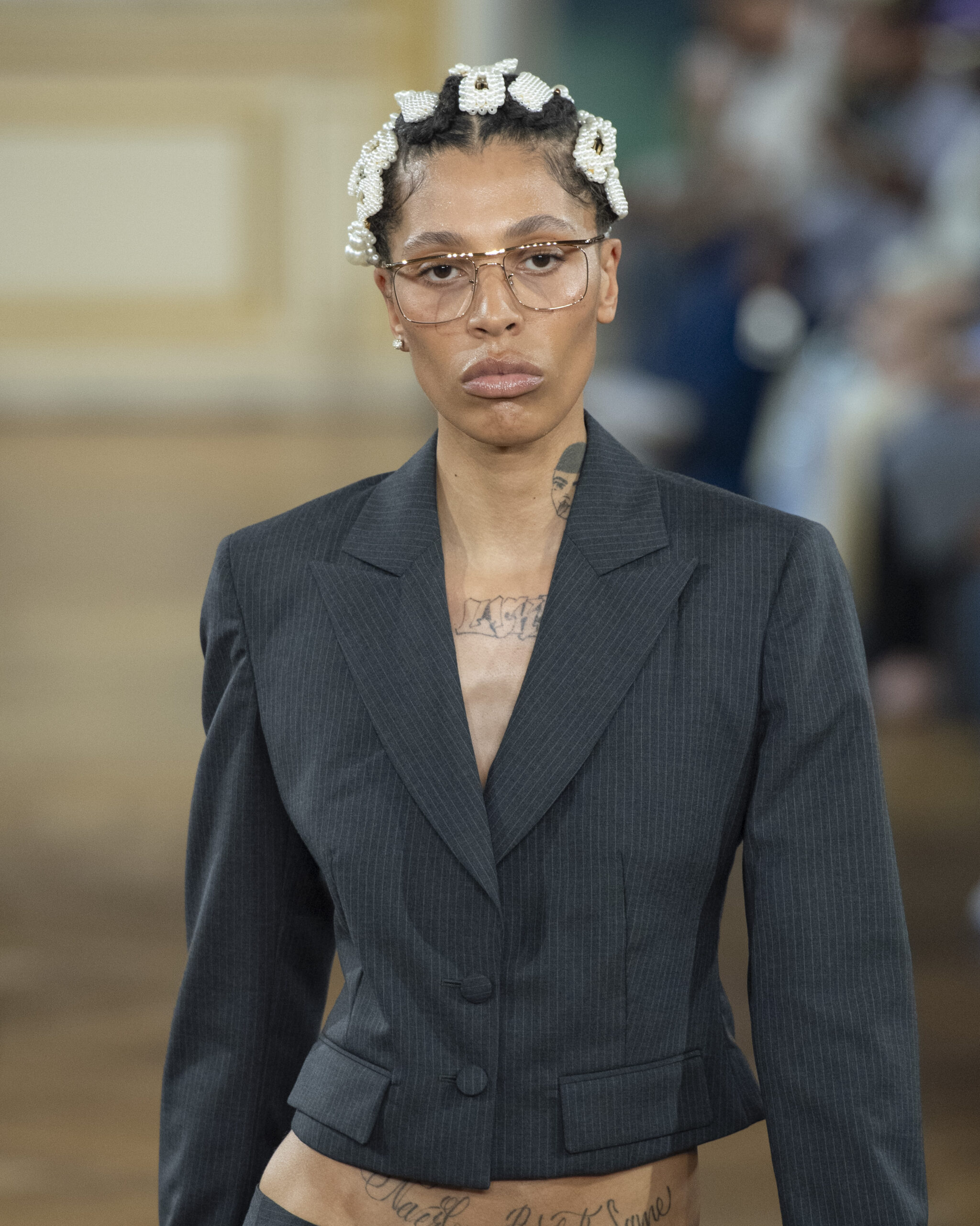 Le décor du défilé, comprenant des sacs poubelles transformés en chaises beanbag issues de la marque de mobilier Hommemade, en collaboration avec Crosby Studios, ajoutait une dimension immersive à cette expérience unique. Le défilé a été rythmé par la bande-son du prochain album d’A$AP Rocky, créant une synergie entre mode et musique.