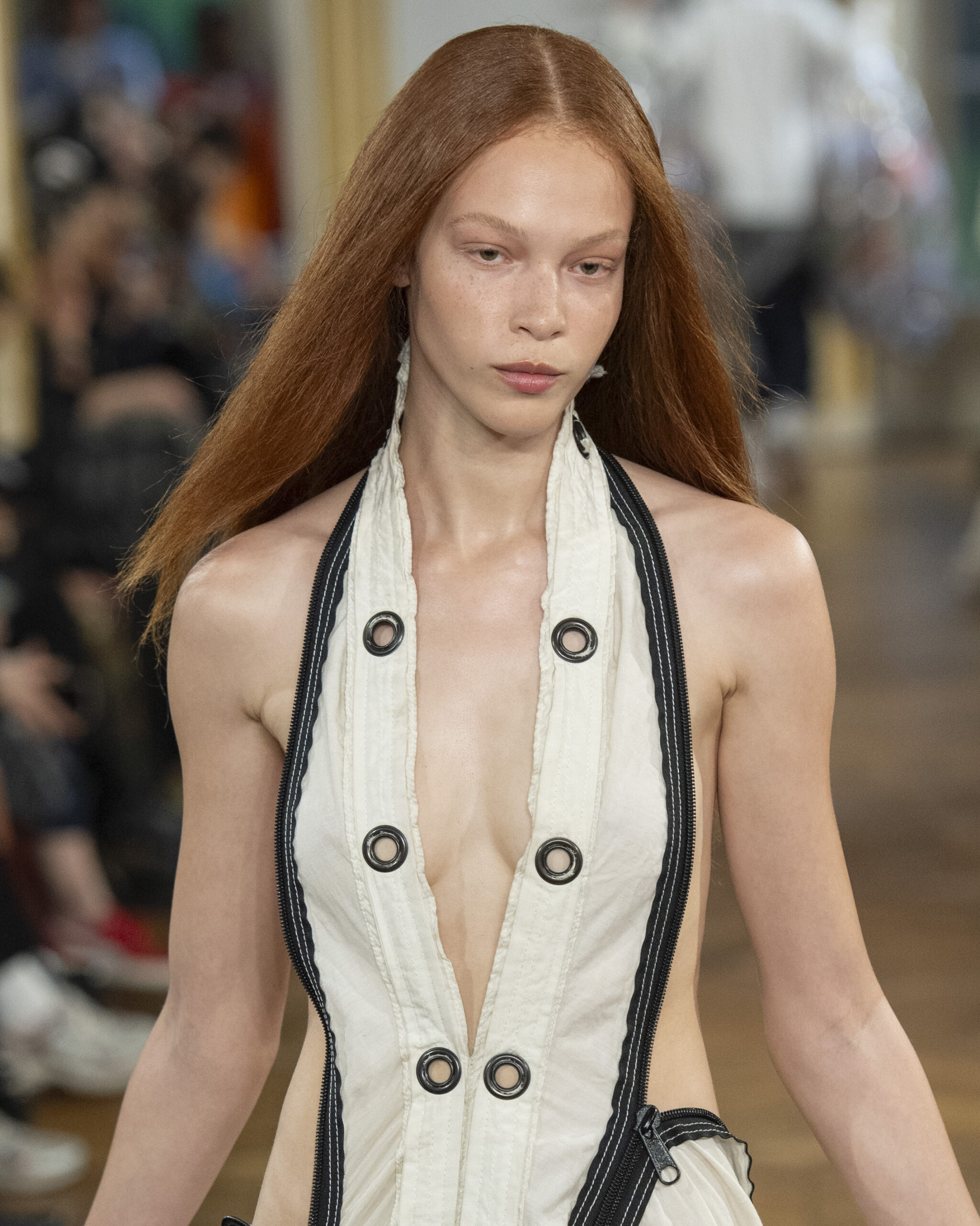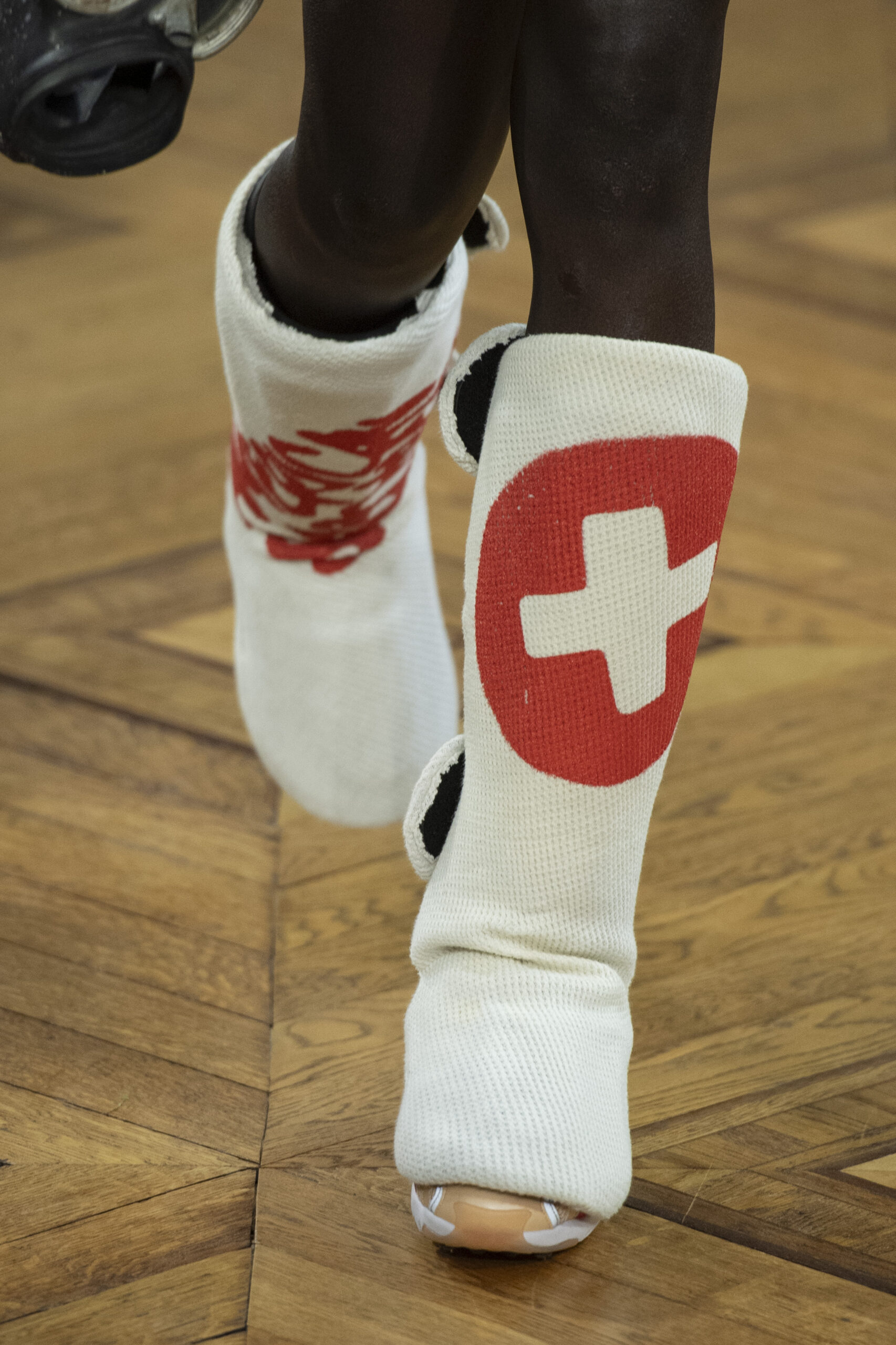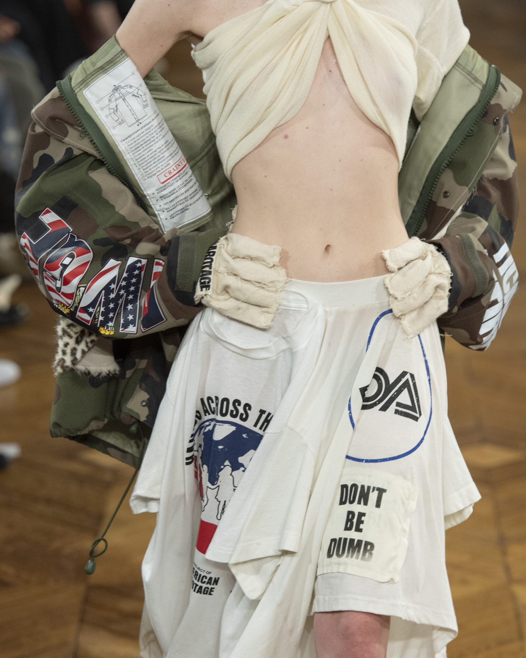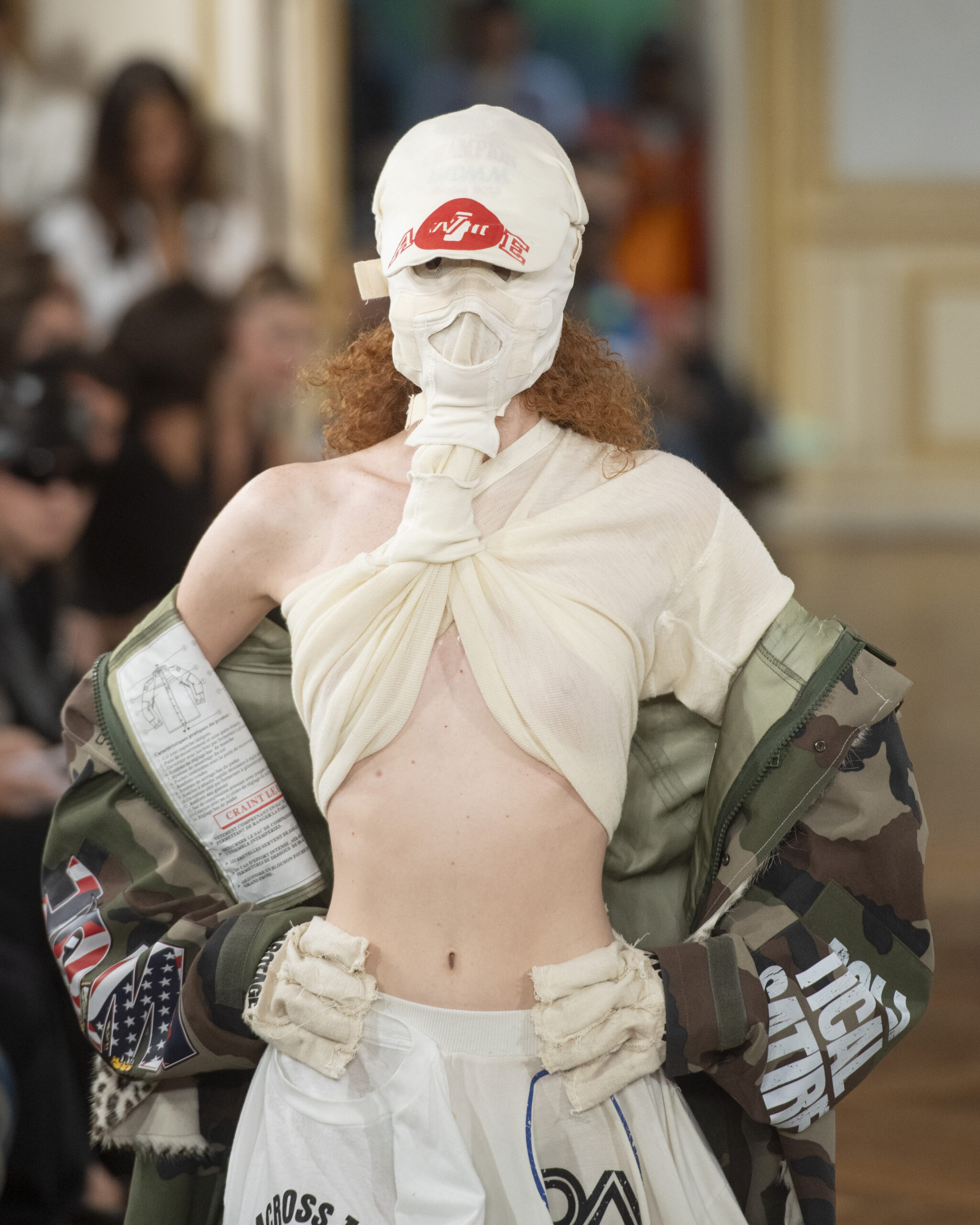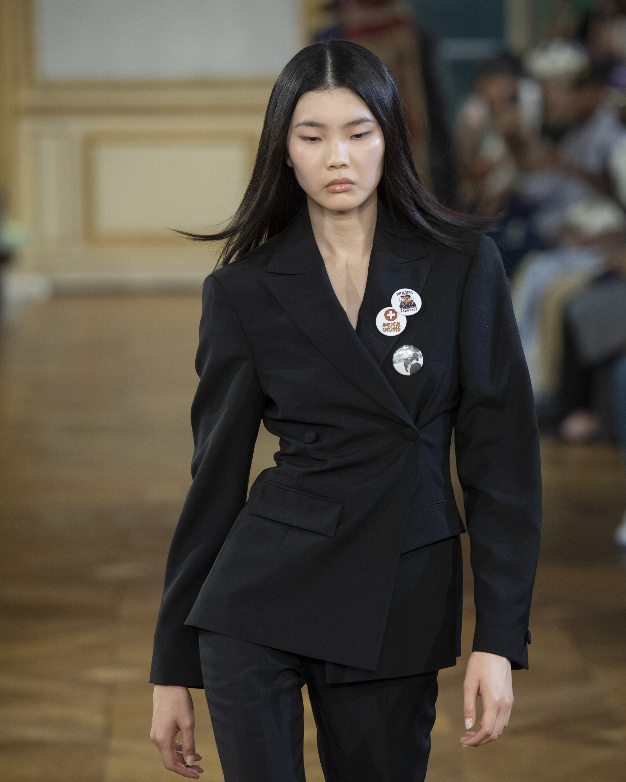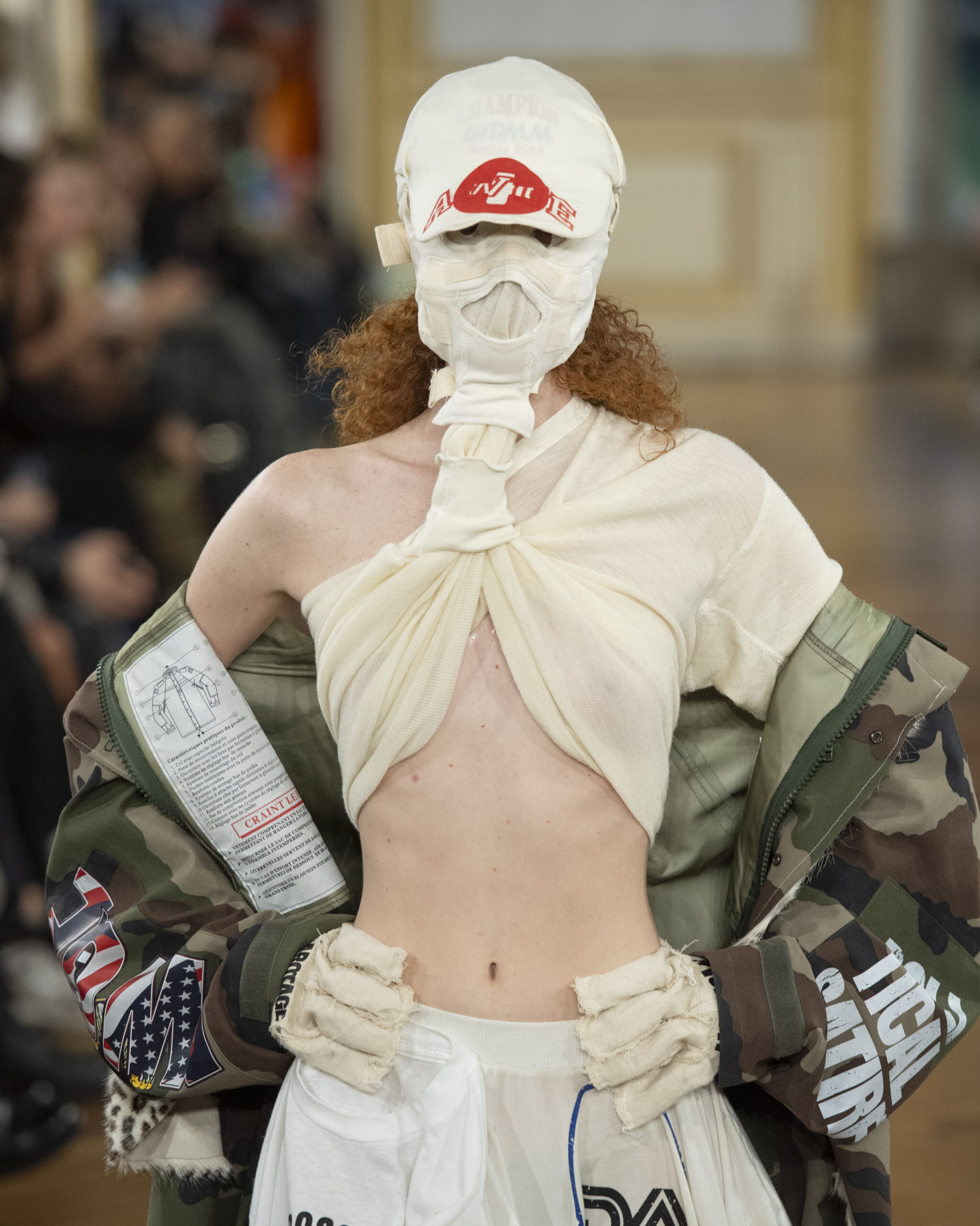Le décor du défilé, comprenant des sacs poubelles transformés en chaises beanbag issues de la marque de mobilier Hommemade, en collaboration avec Crosby Studios, ajoutait une dimension immersive à cette expérience unique. Le défilé a été rythmé par la bande-son du prochain album d’A$AP Rocky, créant une synergie entre mode et musique.