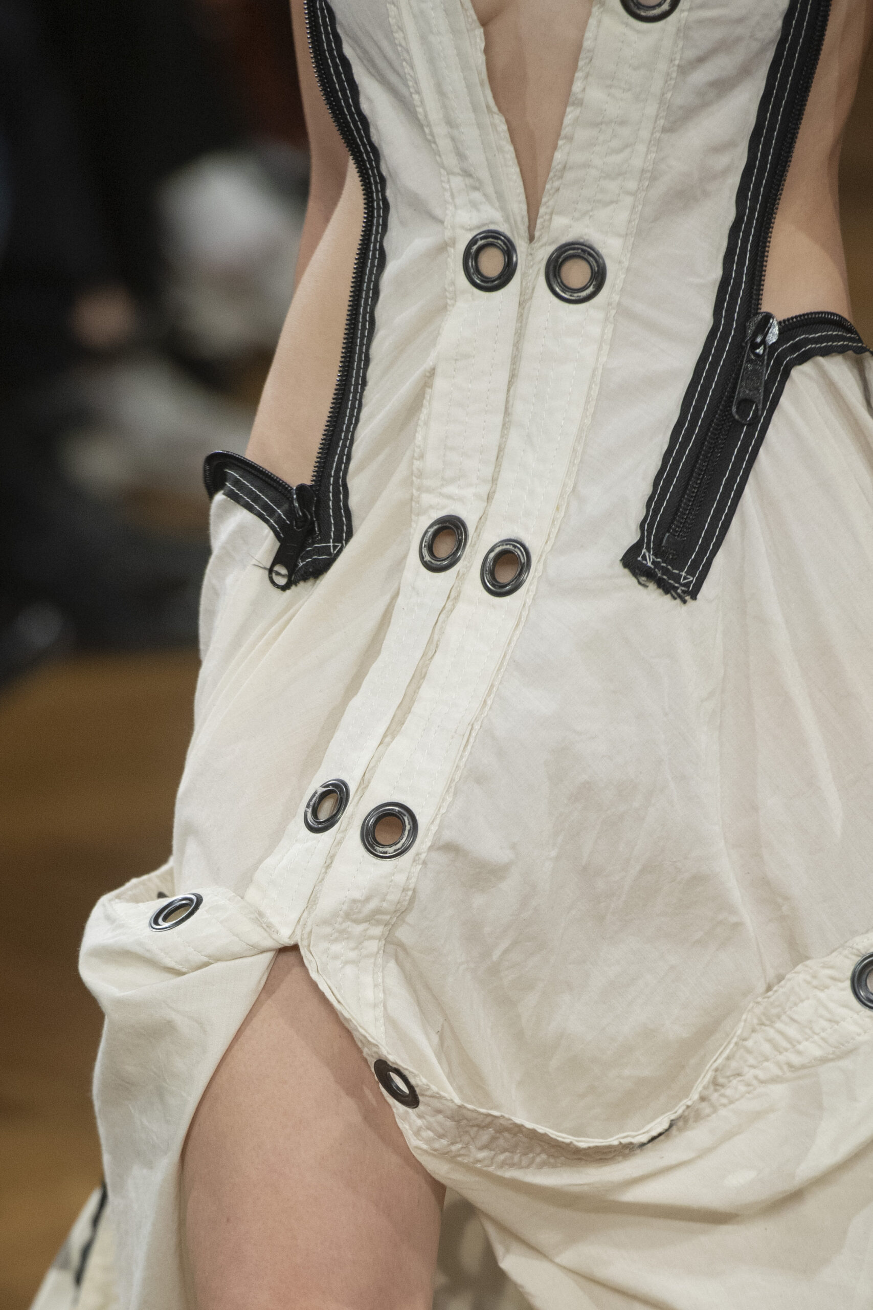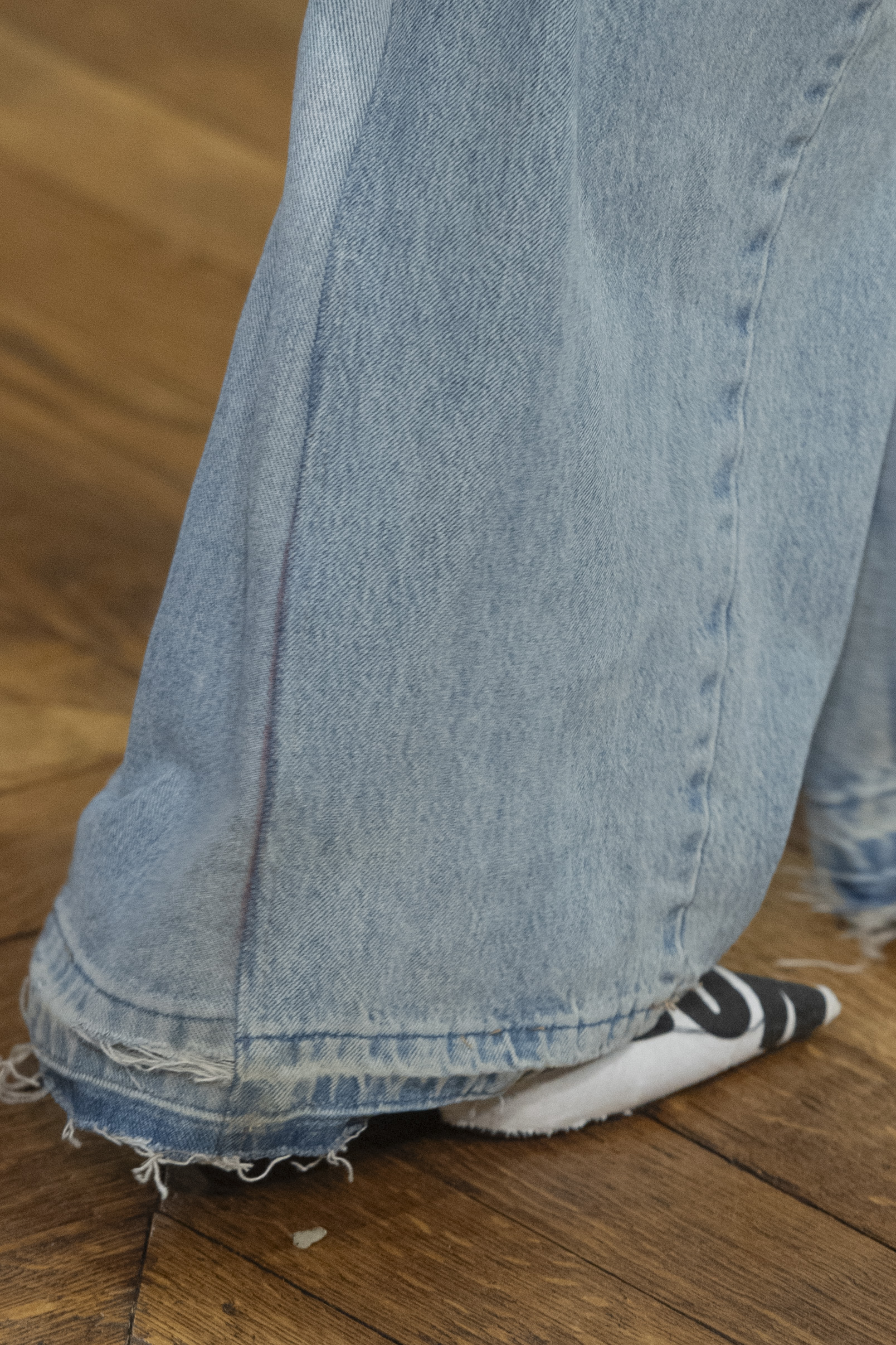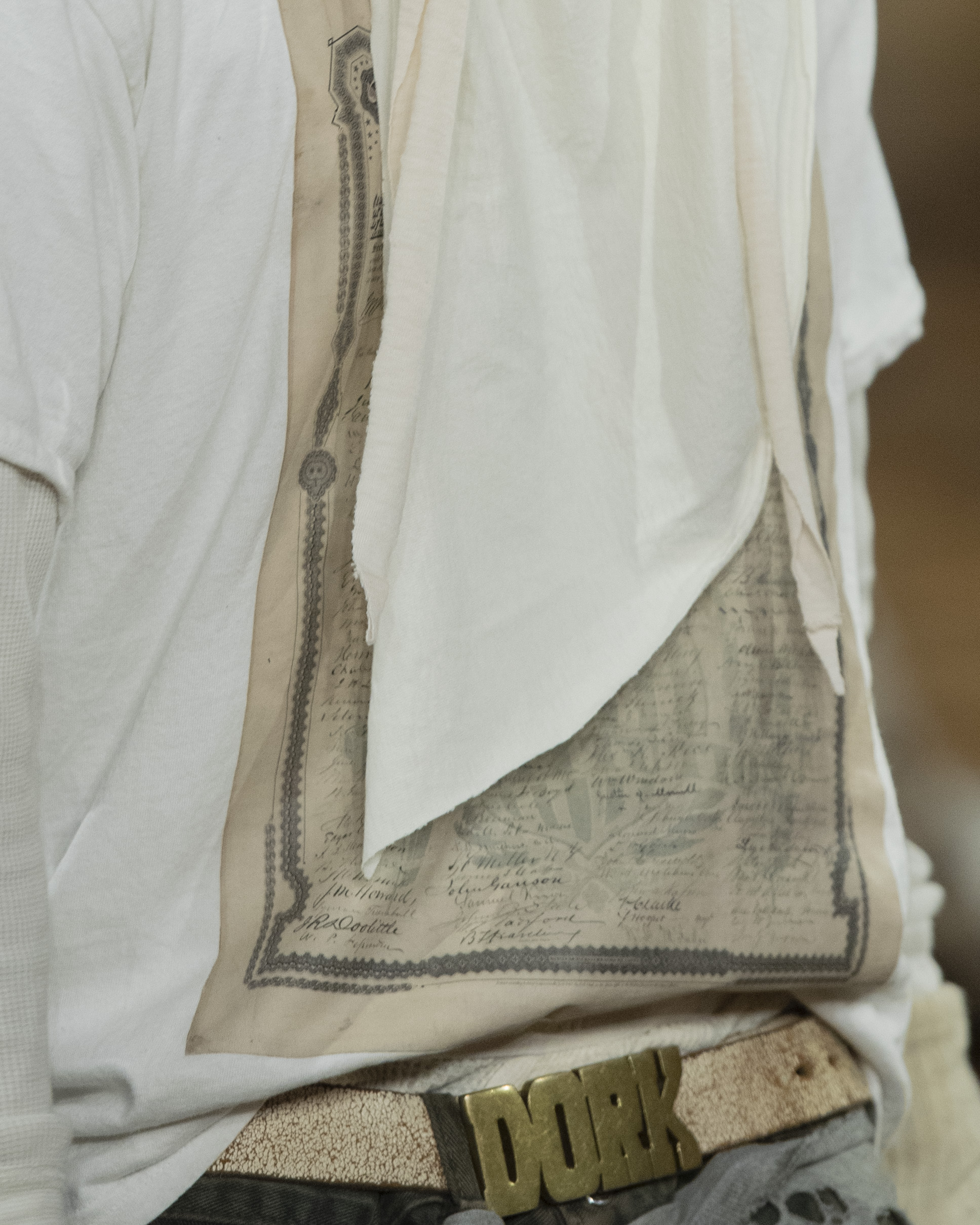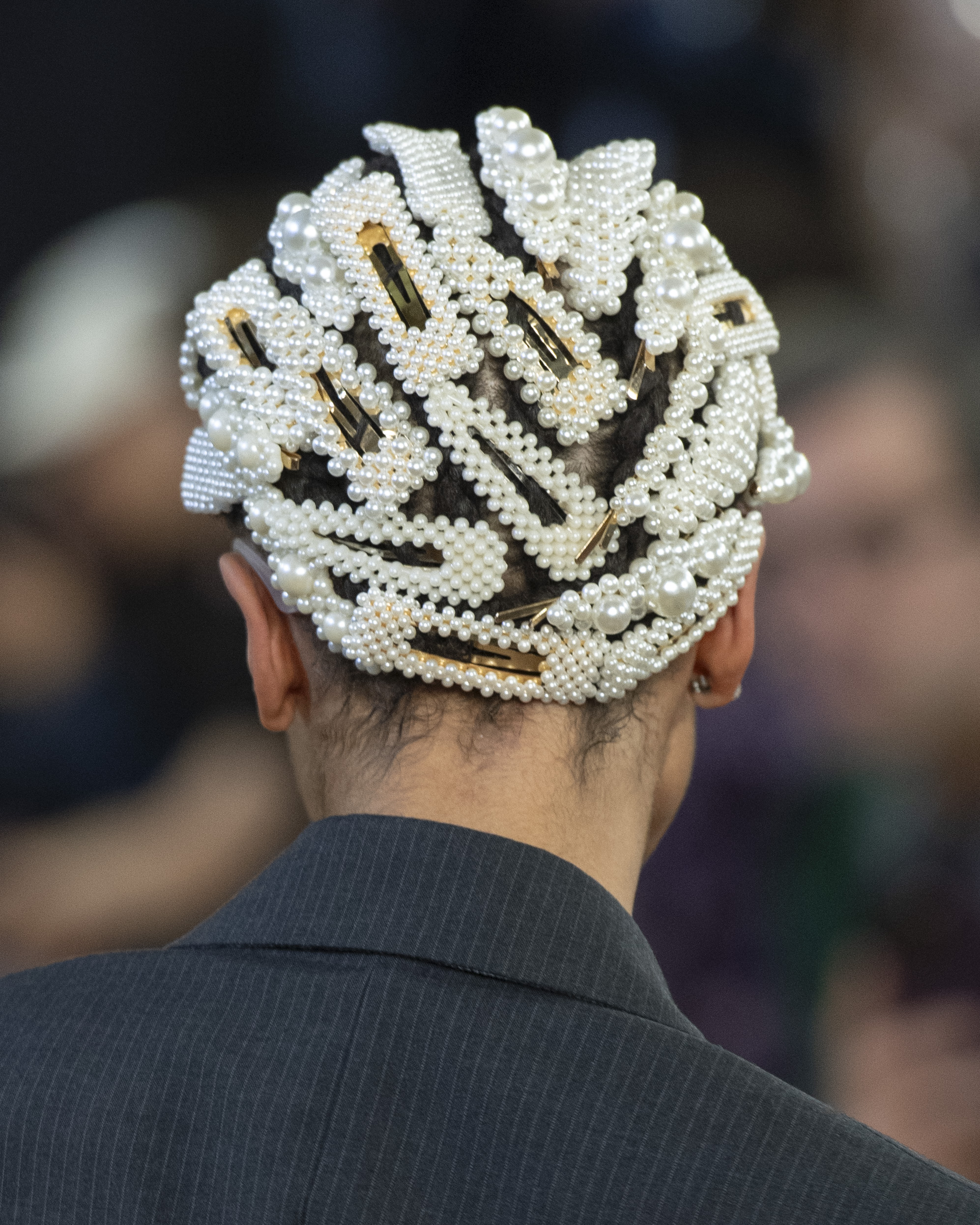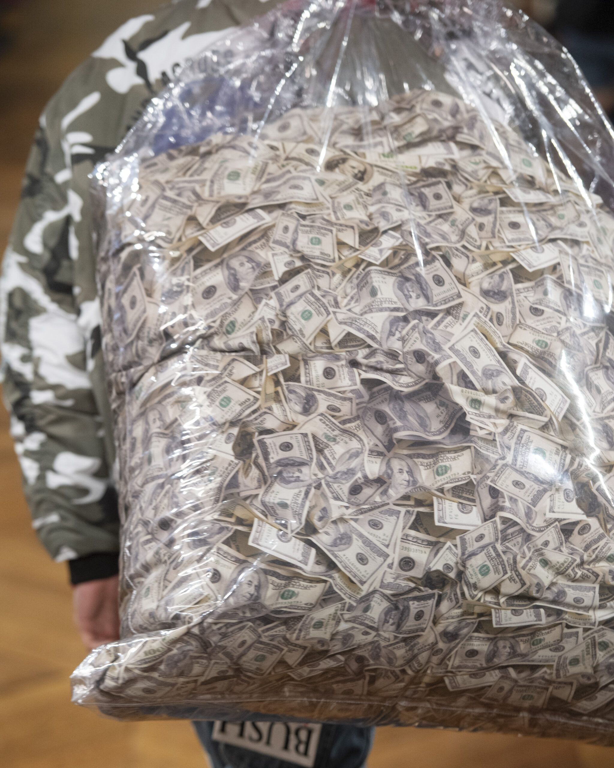 Le décor du défilé, comprenant des sacs poubelles transformés en chaises beanbag issues de la marque de mobilier Hommemade, en collaboration avec Crosby Studios, ajoutait une dimension immersive à cette expérience unique. Le défilé a été rythmé par la bande-son du prochain album d’A$AP Rocky, créant une synergie entre mode et musique.