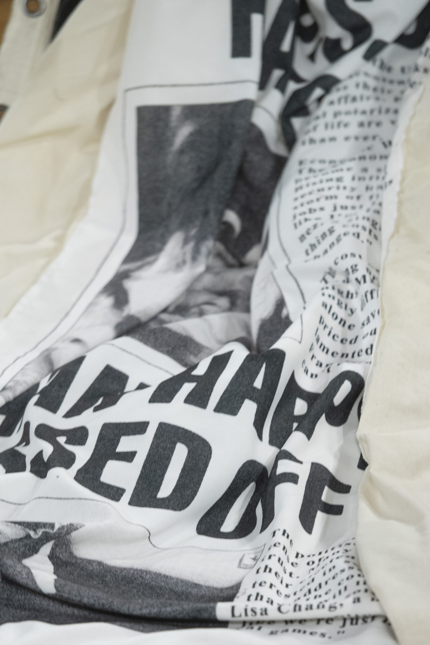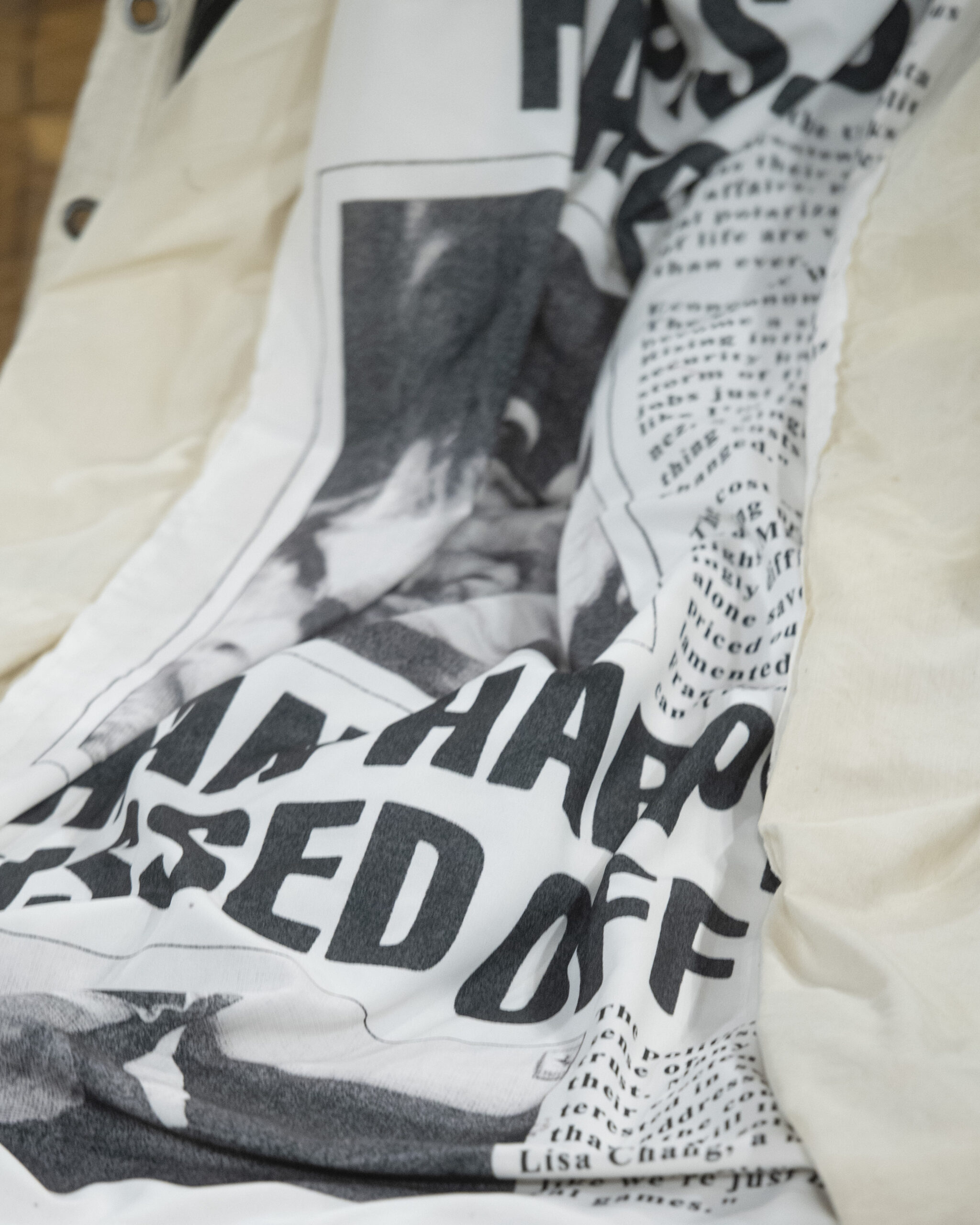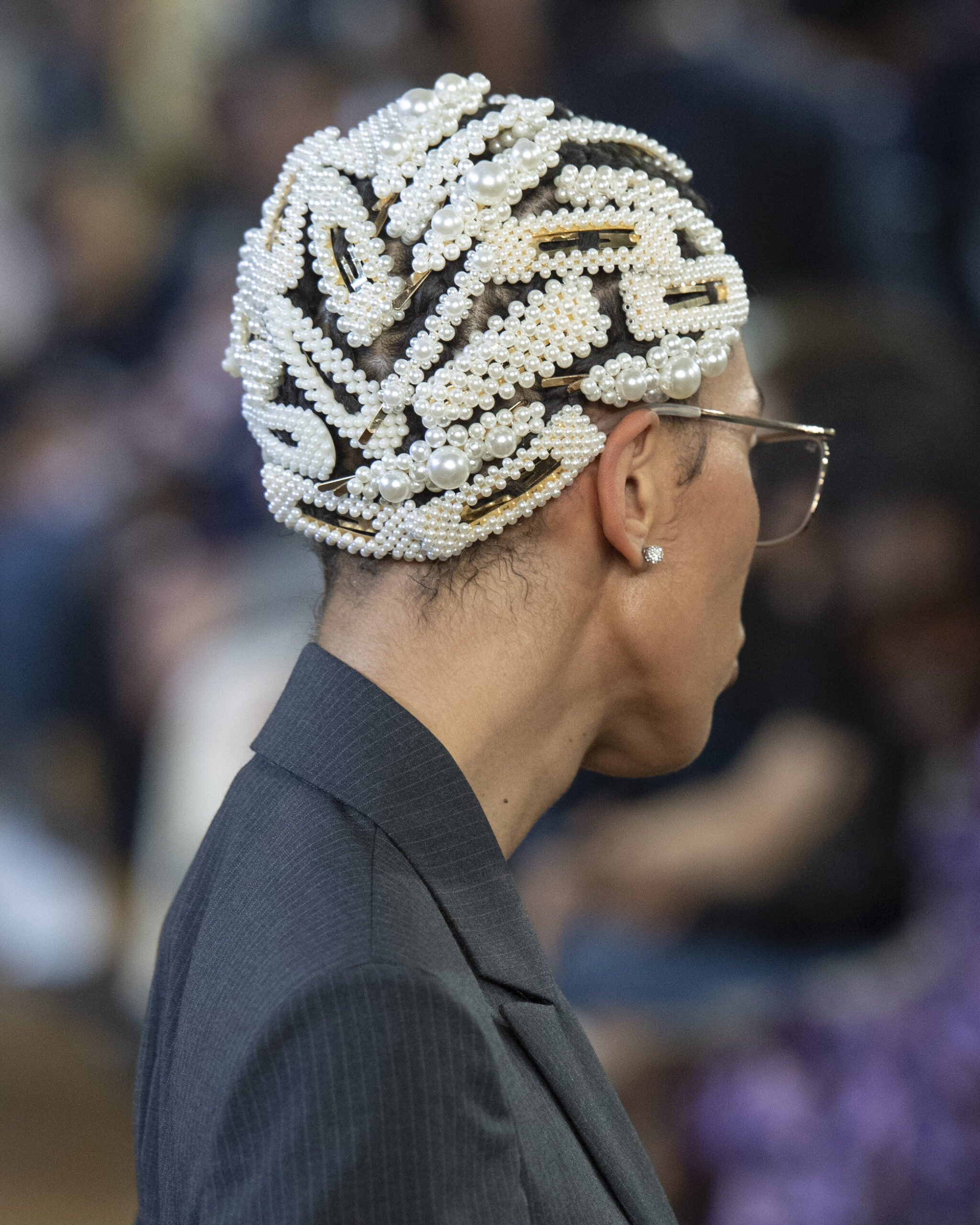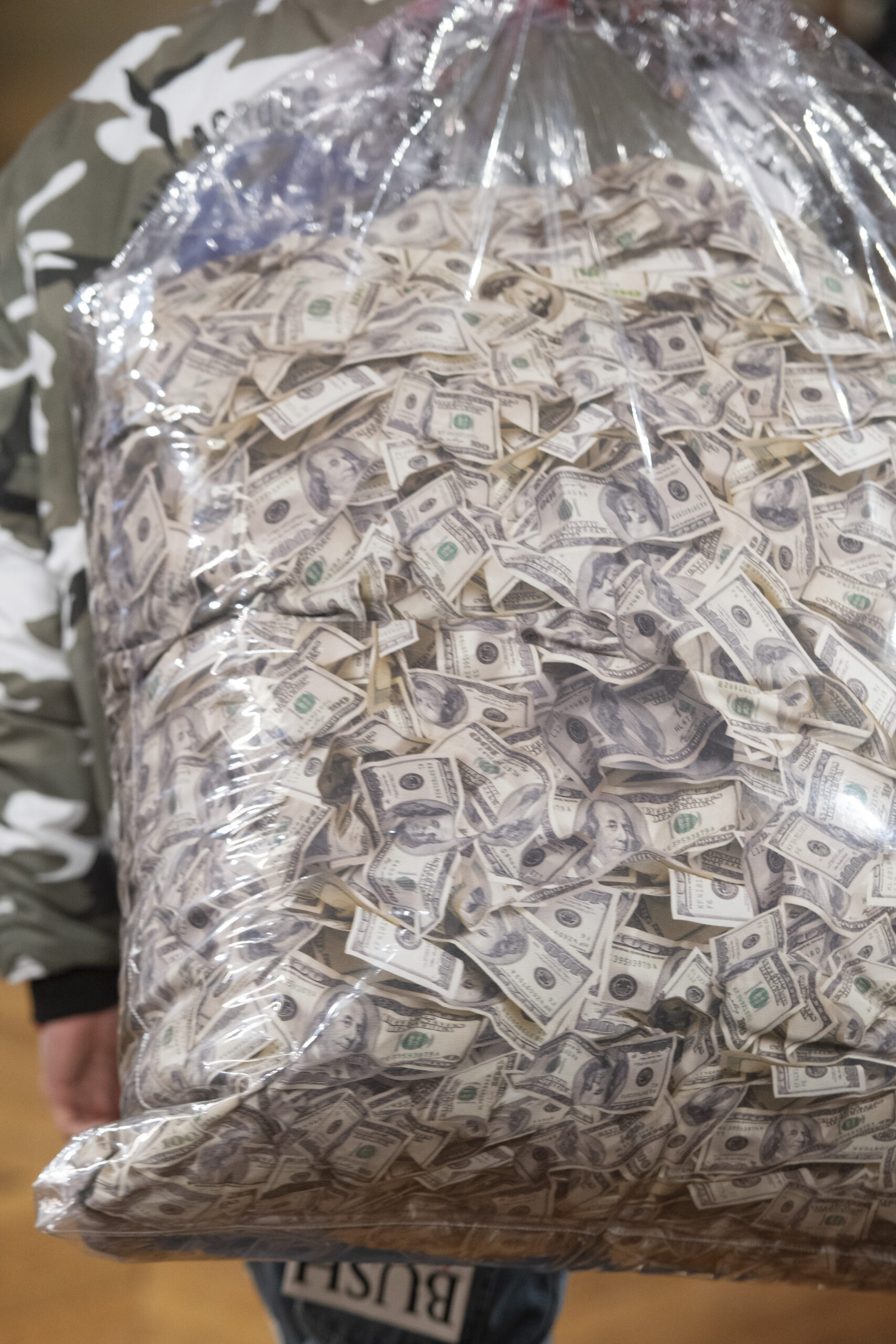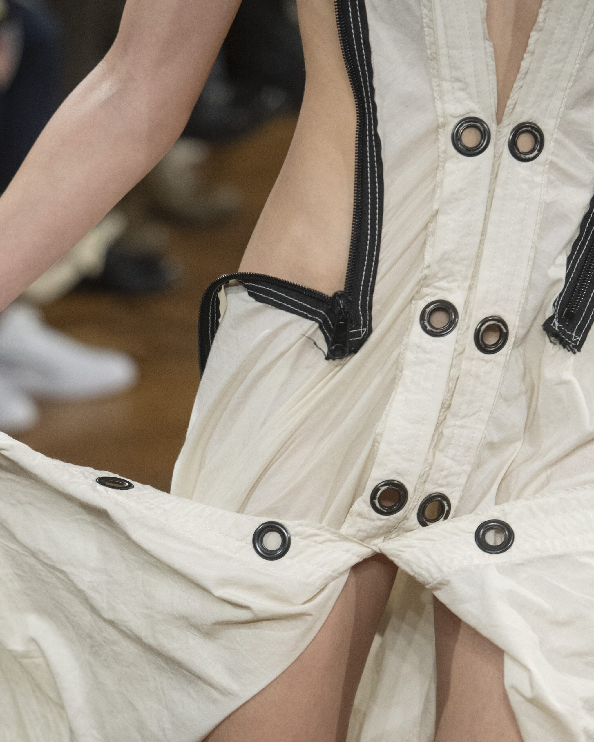 Le décor du défilé, comprenant des sacs poubelles transformés en chaises beanbag issues de la marque de mobilier Hommemade, en collaboration avec Crosby Studios, ajoutait une dimension immersive à cette expérience unique. Le défilé a été rythmé par la bande-son du prochain album d’A$AP Rocky, créant une synergie entre mode et musique.