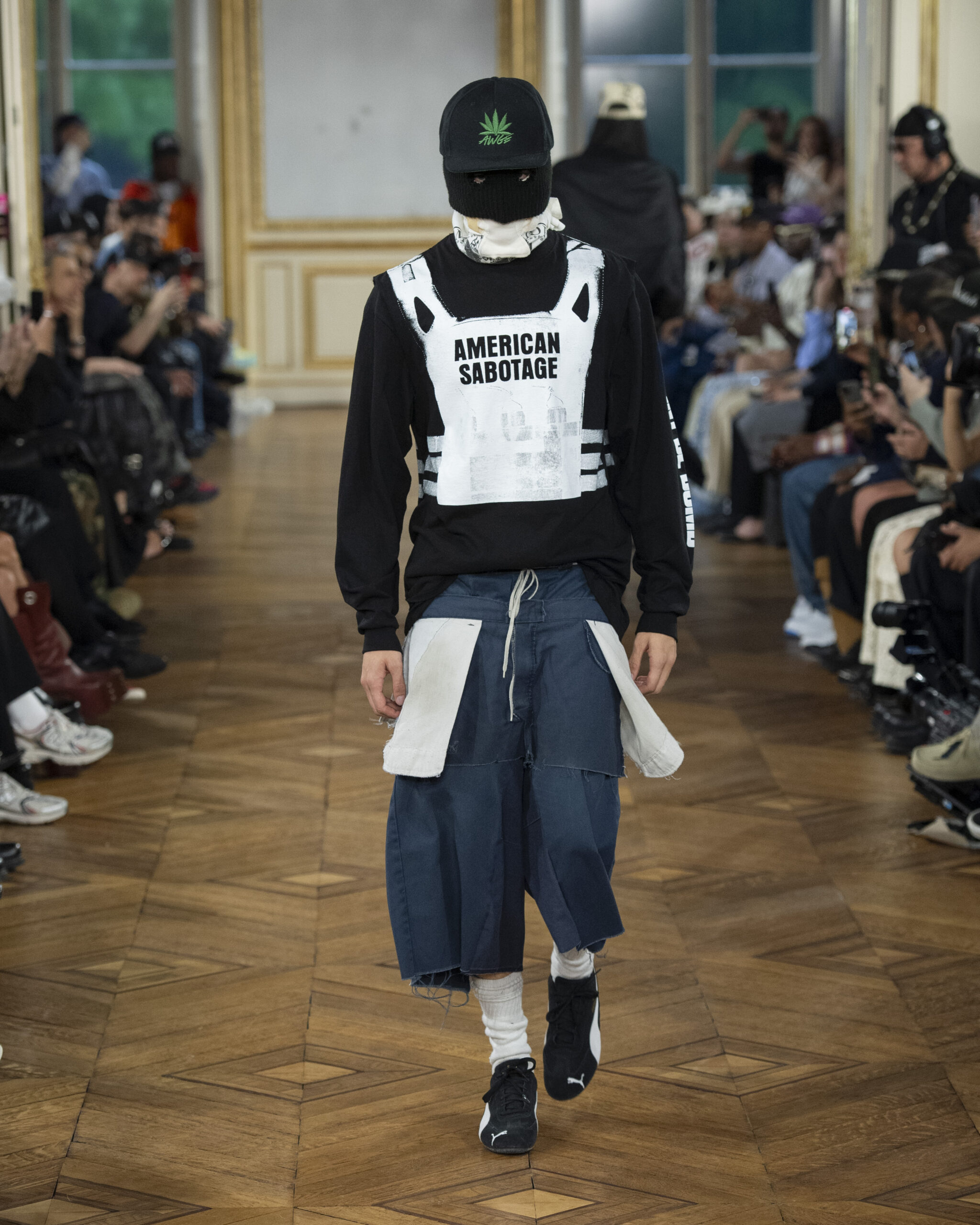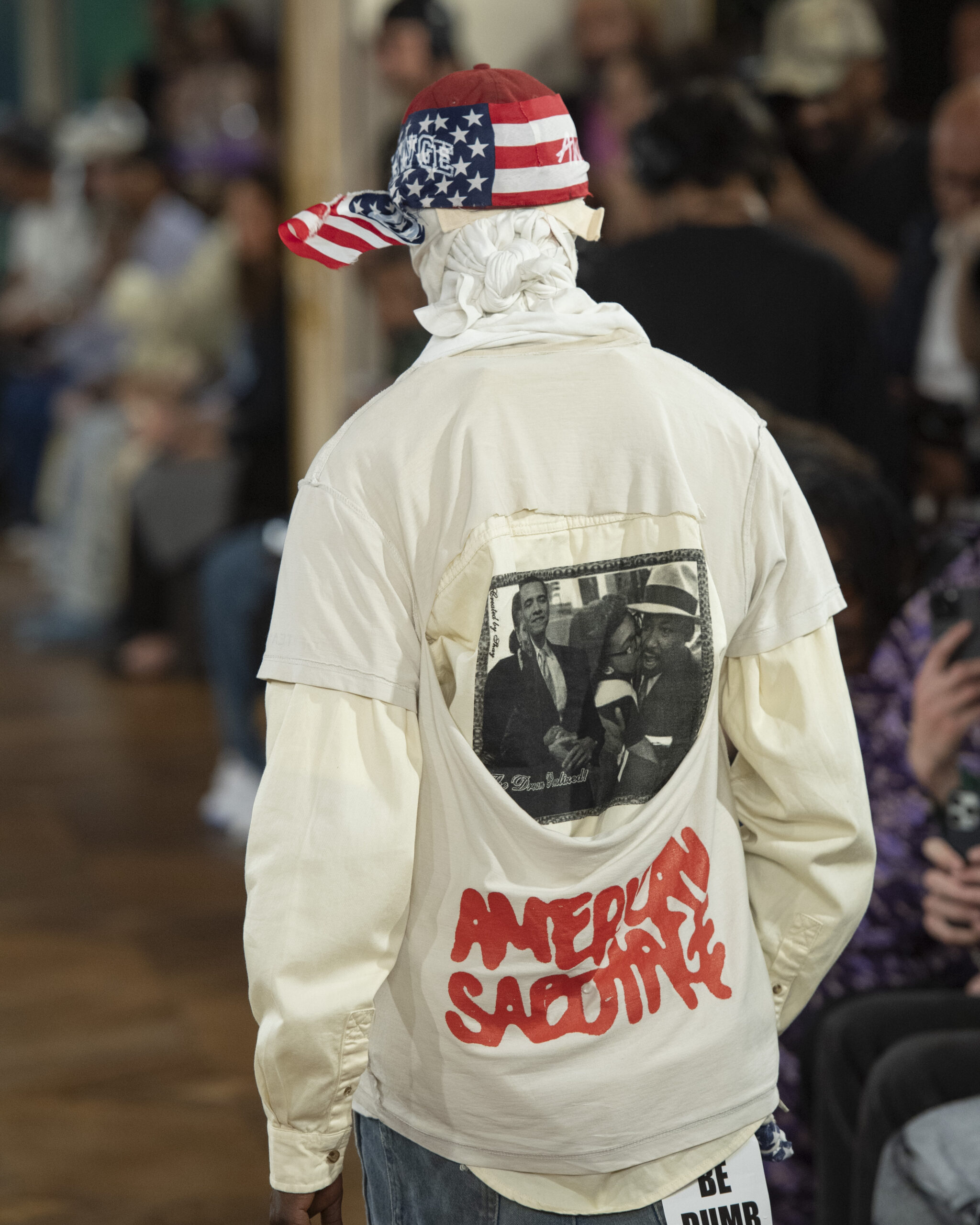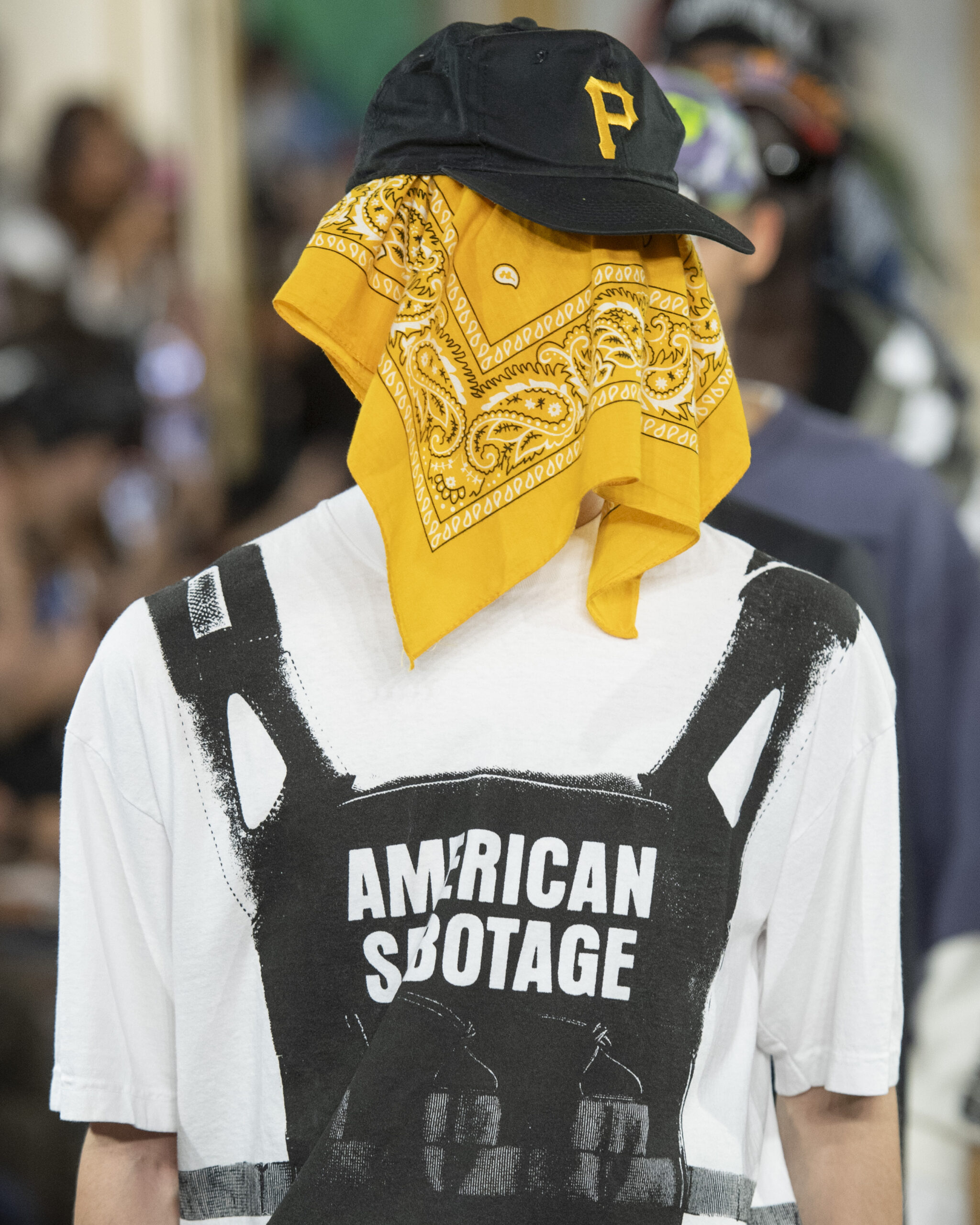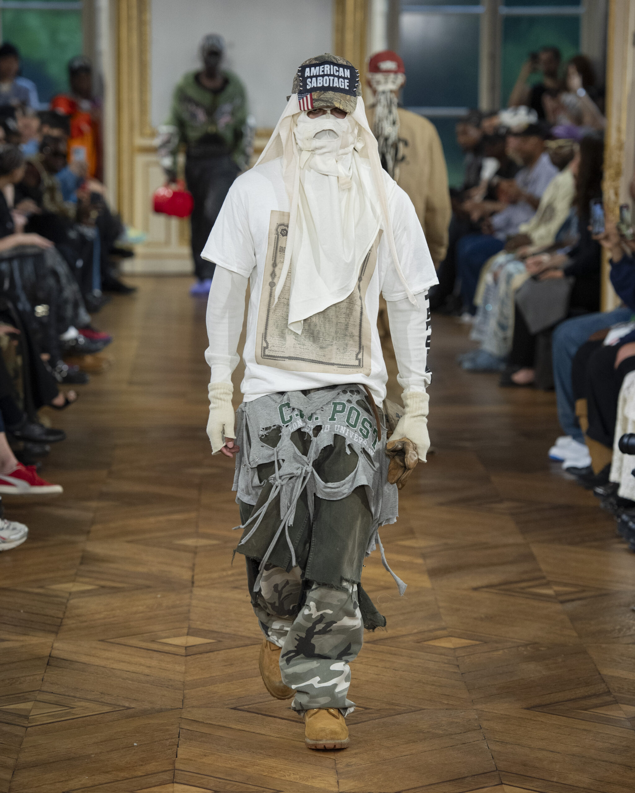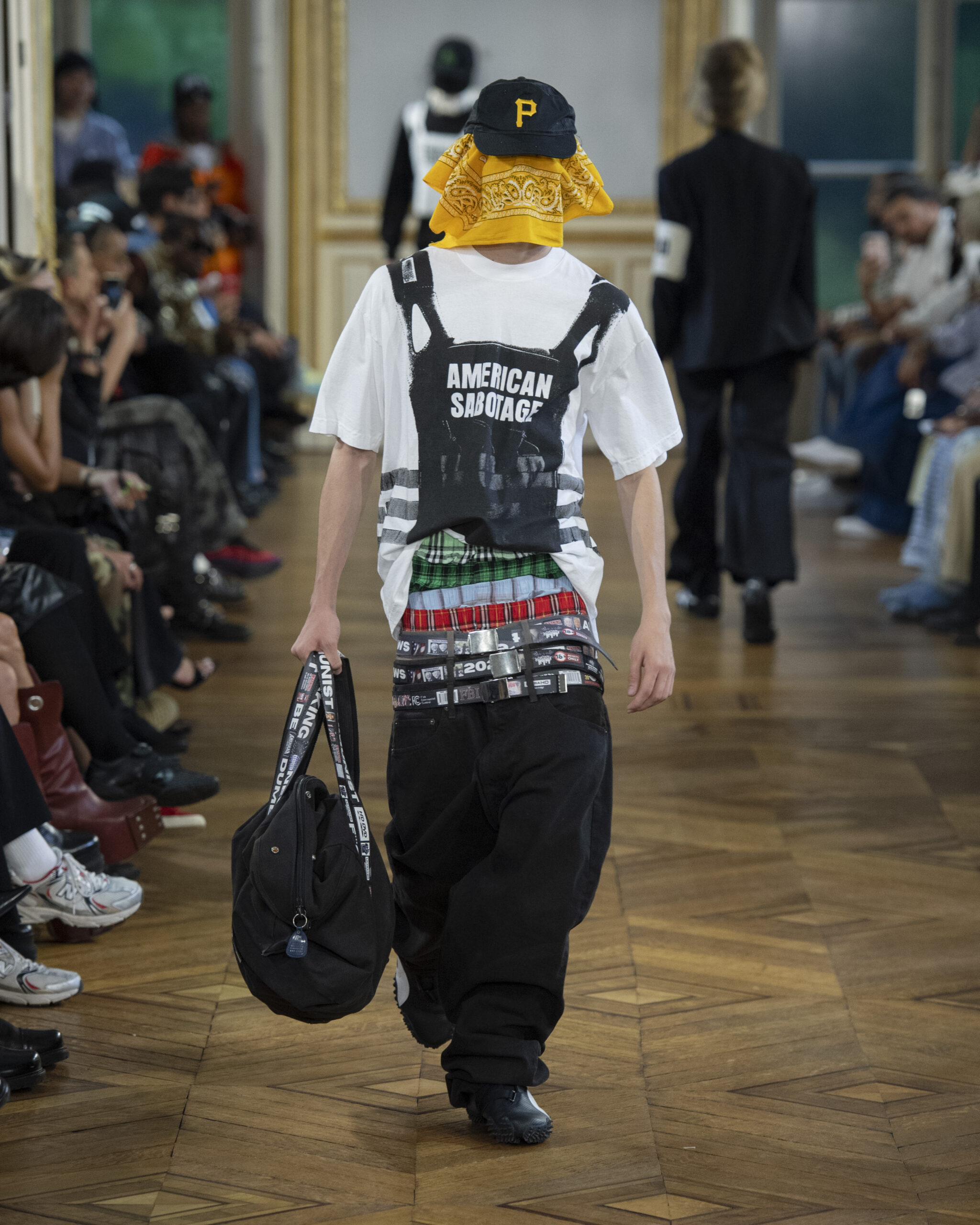 Avec 30 looks méticuleusement conçus, American Sabotage explore les enjeux pressants de notre époque en mêlant mode et militantisme. Cette collection, dirigée par A$AP Rocky avec le soutien des designers Joshua Jamal, Bede Marchand et Coucou Bebe, plonge dans l’esprit créatif de l’artiste, tout en réinterprétant les codes de la mode à travers diverses communautés et cultures. « American Sabotage est plus qu’une marque, c’est un mouvement. Nous brisons les barrières et faisons des déclarations à travers chaque pièce », a déclaré A$AP Rocky.