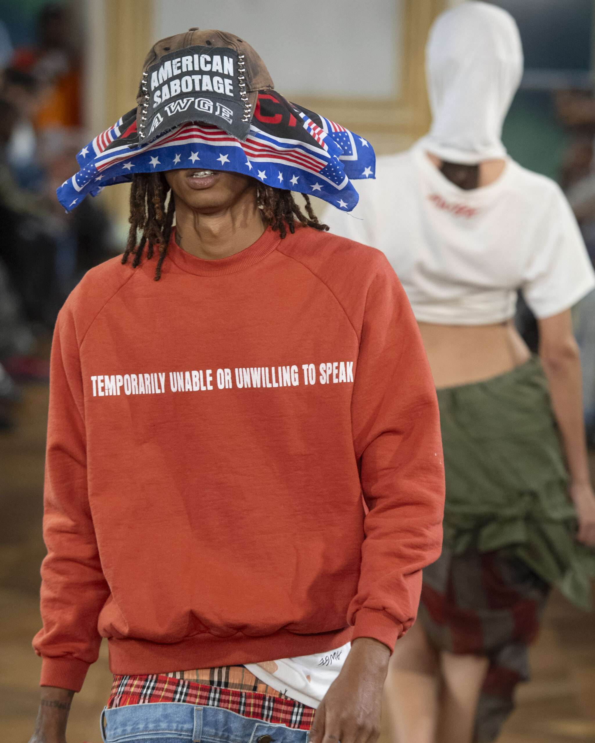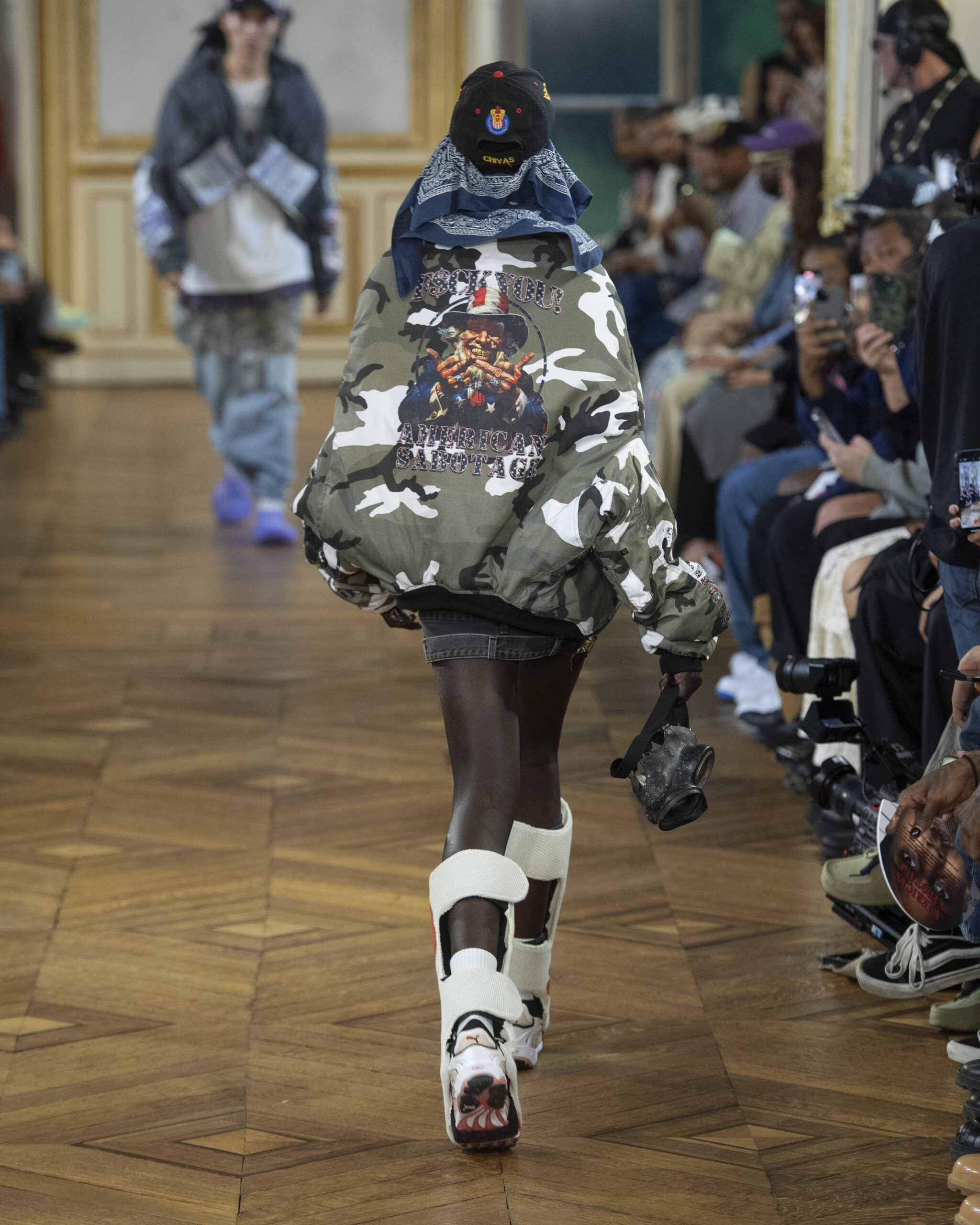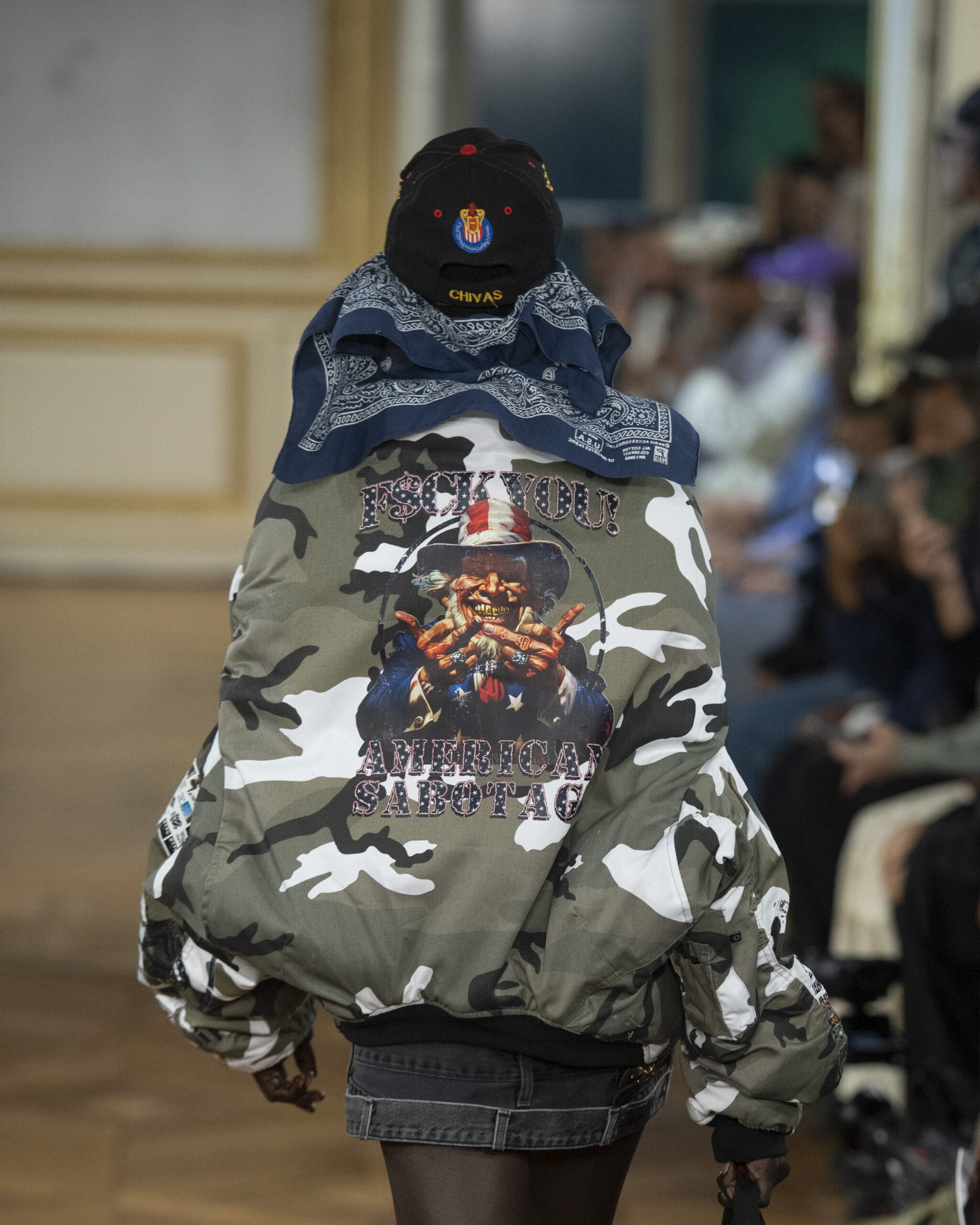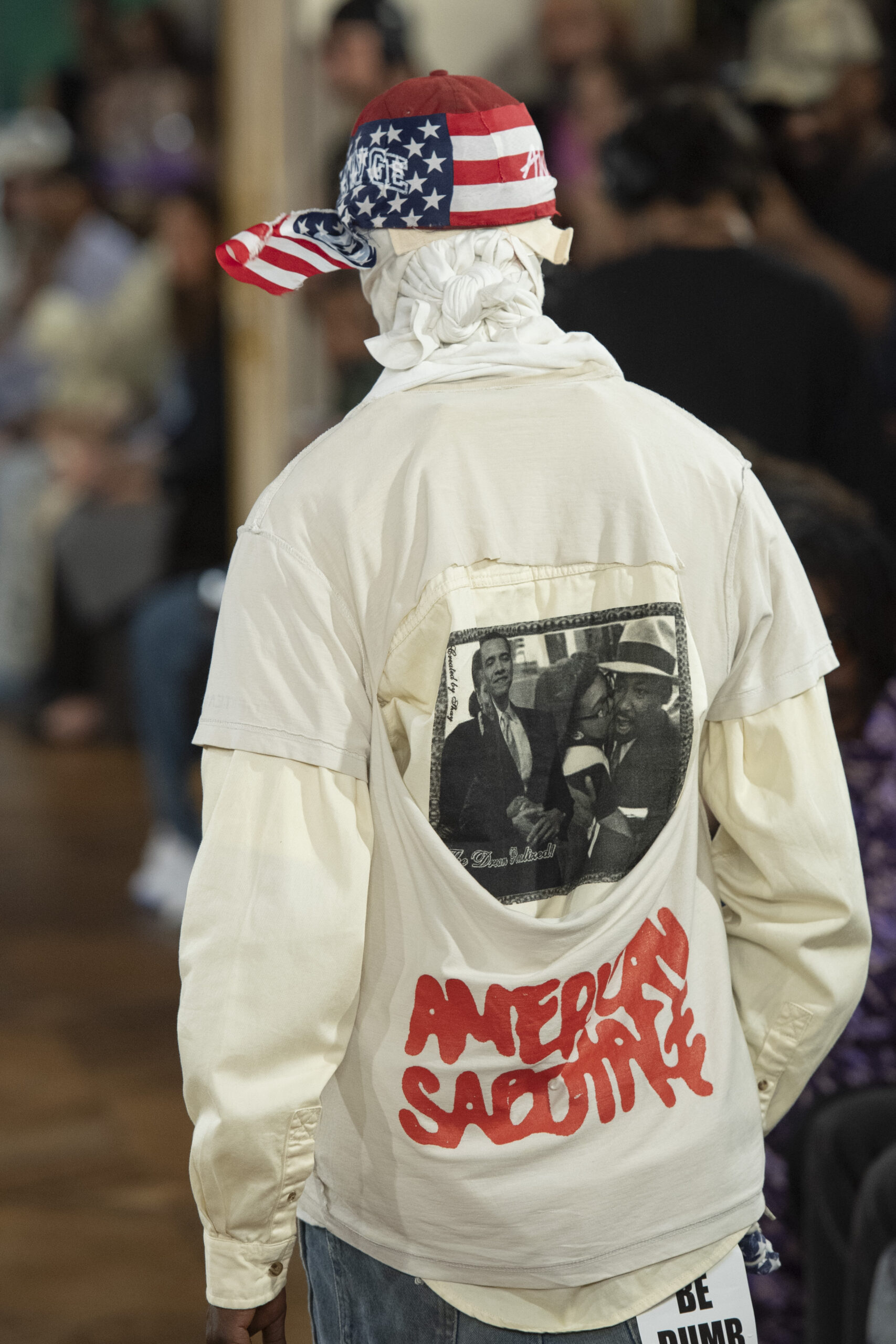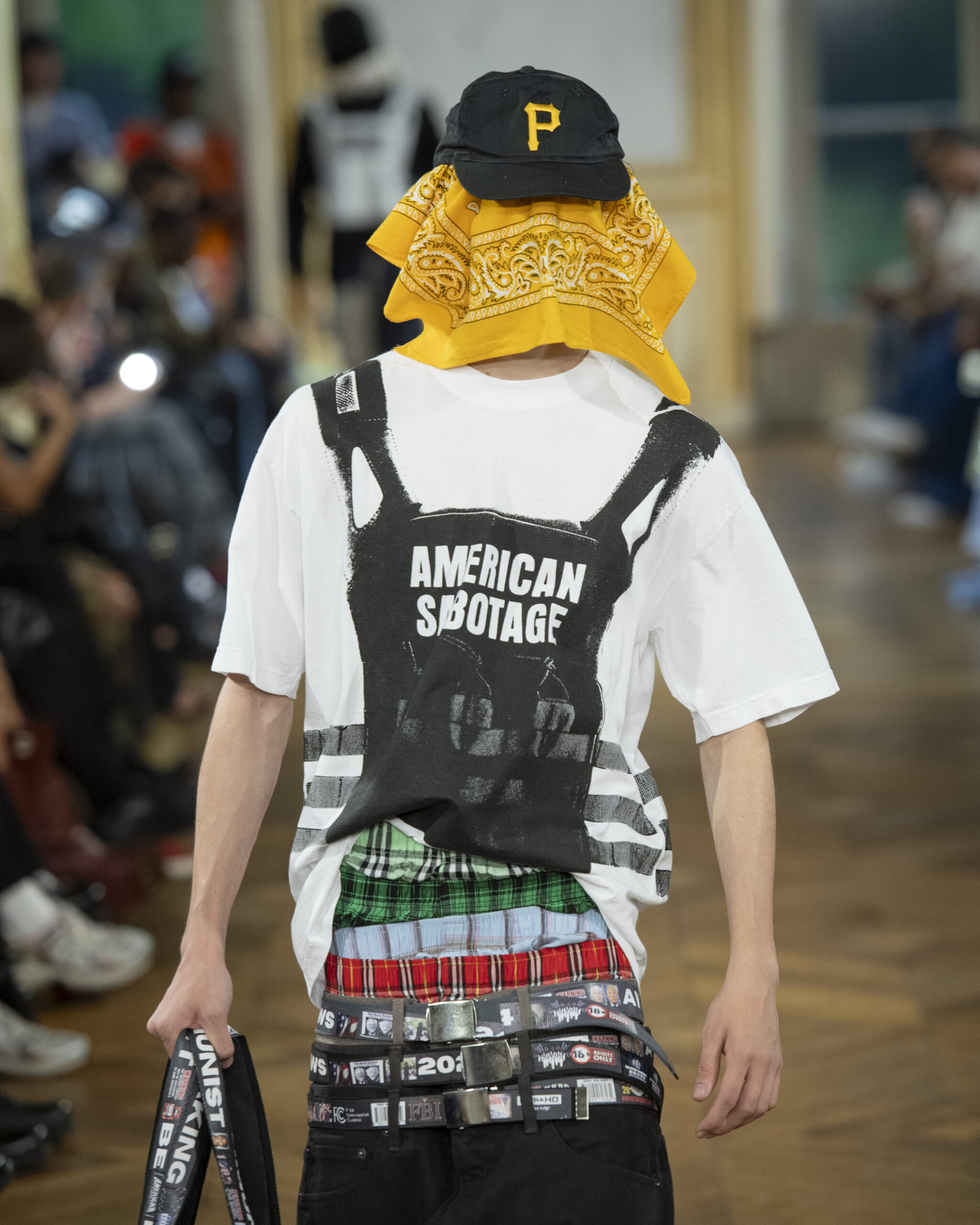 Avec 30 looks méticuleusement conçus, American Sabotage explore les enjeux pressants de notre époque en mêlant mode et militantisme. Cette collection, dirigée par A$AP Rocky avec le soutien des designers Joshua Jamal, Bede Marchand et Coucou Bebe, plonge dans l’esprit créatif de l’artiste, tout en réinterprétant les codes de la mode à travers diverses communautés et cultures. « American Sabotage est plus qu’une marque, c’est un mouvement. Nous brisons les barrières et faisons des déclarations à travers chaque pièce », a déclaré A$AP Rocky.