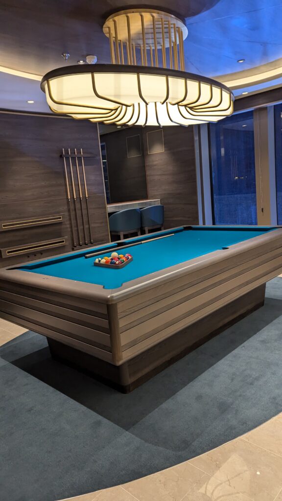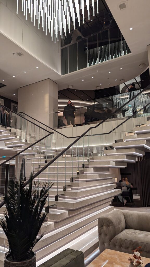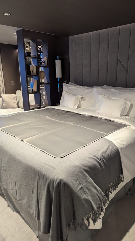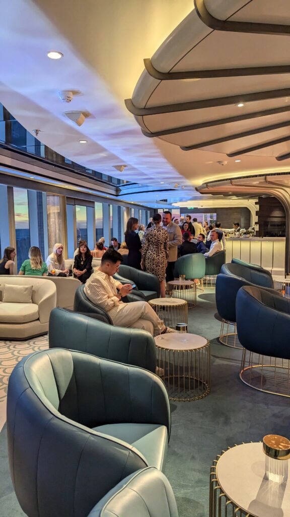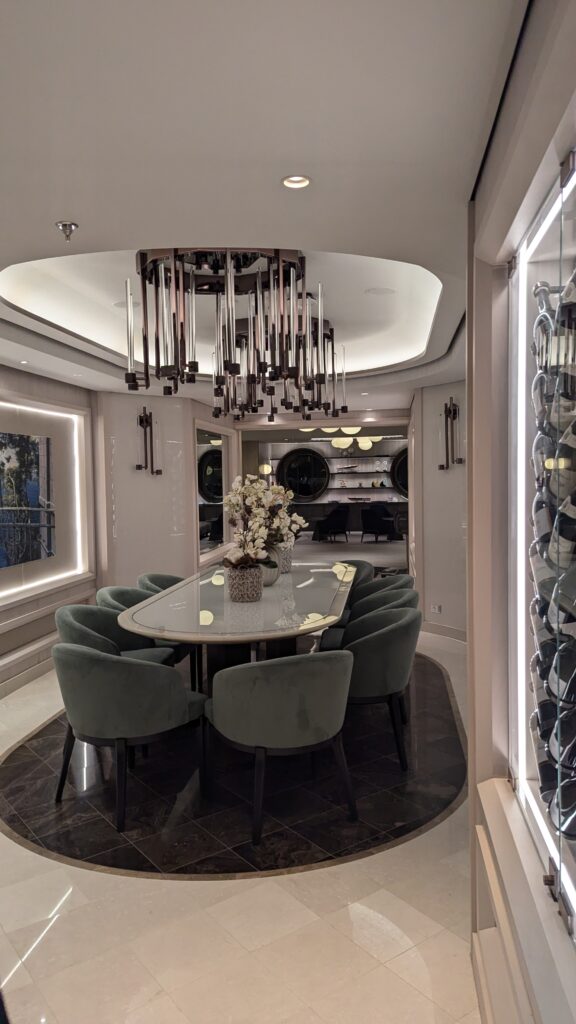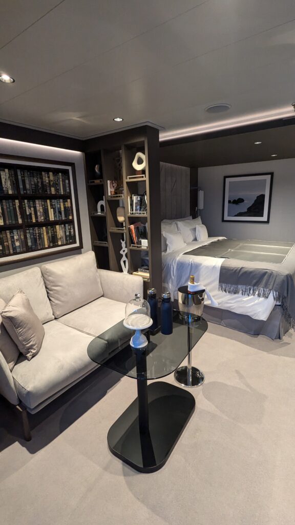 Dès l’instant où l’on monte à bord, on est frappé par l’ambiance cosy et raffinée qui règne sur le navire. Malgré sa capacité de 900 passagers, l’espace est si généreux qu’on ne se sent jamais à l’étroit. Le ratio espace par passager est exceptionnel, offrant une sensation d’intimité rarement vue sur les navires de croisière traditionnels.