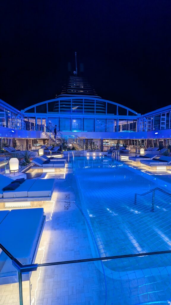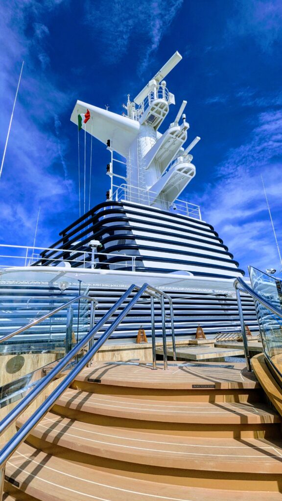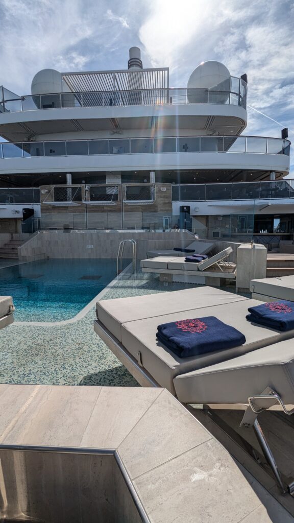 À bord, le concept est de considérer le navire comme une destination en soi. De nombreux passagers choisissent de rester à bord pendant les escales, profitant des installations exceptionnelles et du service personnalisé. C’est une invitation à la détente, à la contemplation, loin de l’agitation du monde extérieur.
