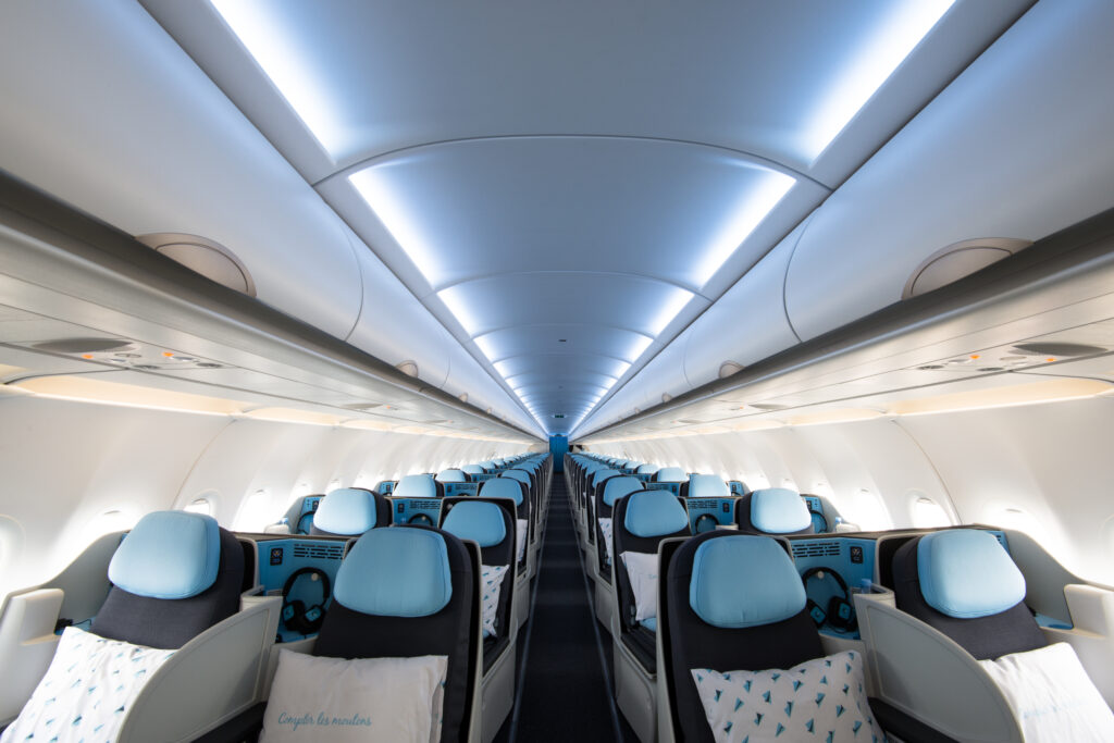 En 2026, un troisième Airbus A321neo viendra renforcer les capacités de La Compagnie. Cet appareil de nouvelle génération, 100% classe affaires, accueillera 68 sièges-lits et offrira une performance environnementale supérieure grâce à une consommation réduite de 30% par rapport aux modèles précédents.