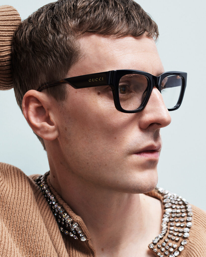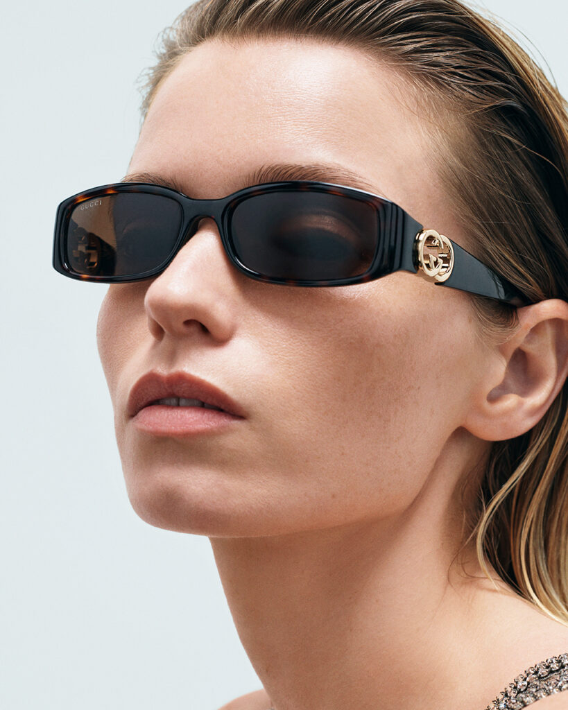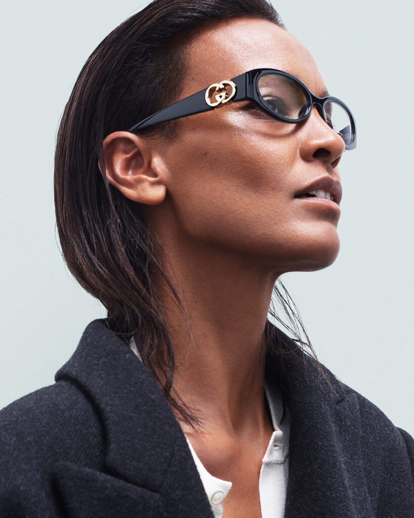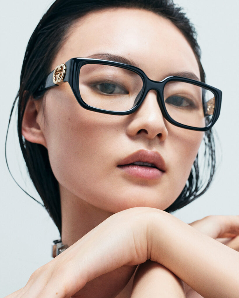 Les créations phares de cette campagne incluent des lunettes ornées de l’iconique logo Interlocking G en métal doré sur les branches. Abbey Lee porte des lunettes de soleil à monture étroite, tandis que Liya Kebede arbore un design optique en forme d’amande, élégant et moderne. He Cong est vue dans des lunettes de soleil oversize carrées et des montures optiques cat-eye, tandis que George Barnett ajoute une touche contemporaine avec des lunettes de soleil carrées épaisses en acétate et une monture optique, toutes deux caractérisées par une construction bilayer distinctive et le logo Gucci sur les branches.