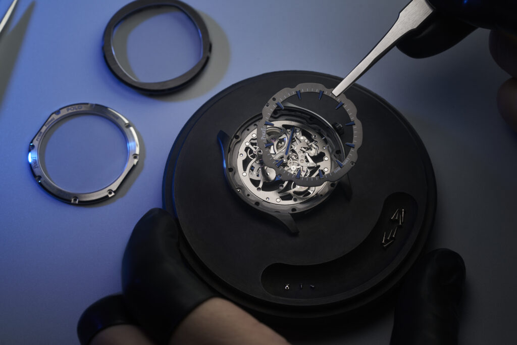 L’utilisation de ce matériau dans une montre squelette est une première dans l’histoire de l’horlogerie, une prouesse rendue possible grâce à trois années de recherche et de développement intensifs. L’objectif était clair : intégrer la céramique dans l’ADN ultrafin de la Piaget Polo sans compromettre l’esthétique ni la robustesse. Un défi relevé avec brio grâce à une ingénierie de pointe qui a nécessité une refonte complète de l’architecture traditionnelle du boîtier.
