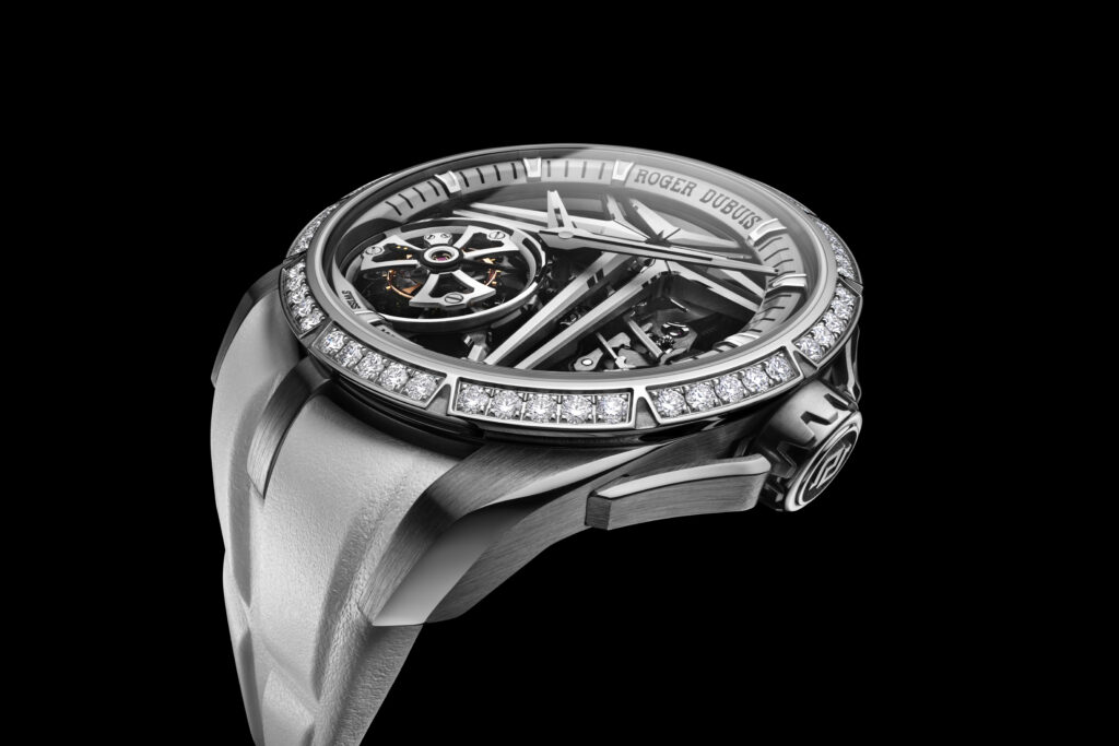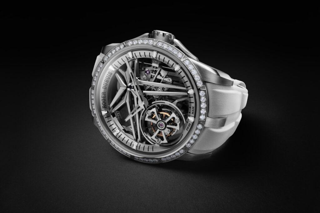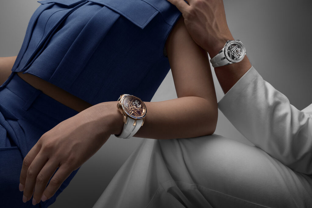 Le squelettage, qui est un élément central du design chez Roger Dubuis depuis 2009, permet à la lumière de jouer à travers la structure, révélant la complexité interne tout en soulignant la pureté du design. Cette approche met en lumière la philosophie de la Maison : créer des montres qui sont non seulement des instruments de précision, mais aussi des œuvres d’art.