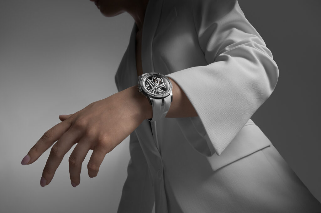 La pureté, lorsqu’elle est mariée à la complexité technique, devient une œuvre d’art intemporelle. C’est le cas de l’Excalibur Monotourbillon White Gold, la dernière création de Roger Dubuis dévoilée lors du salon Watches and Wonders 2024 à Shanghai. Cette montre est un parfait exemple de la manière dont la Maison fusionne l’héritage horloger avec une expressivité moderne.
