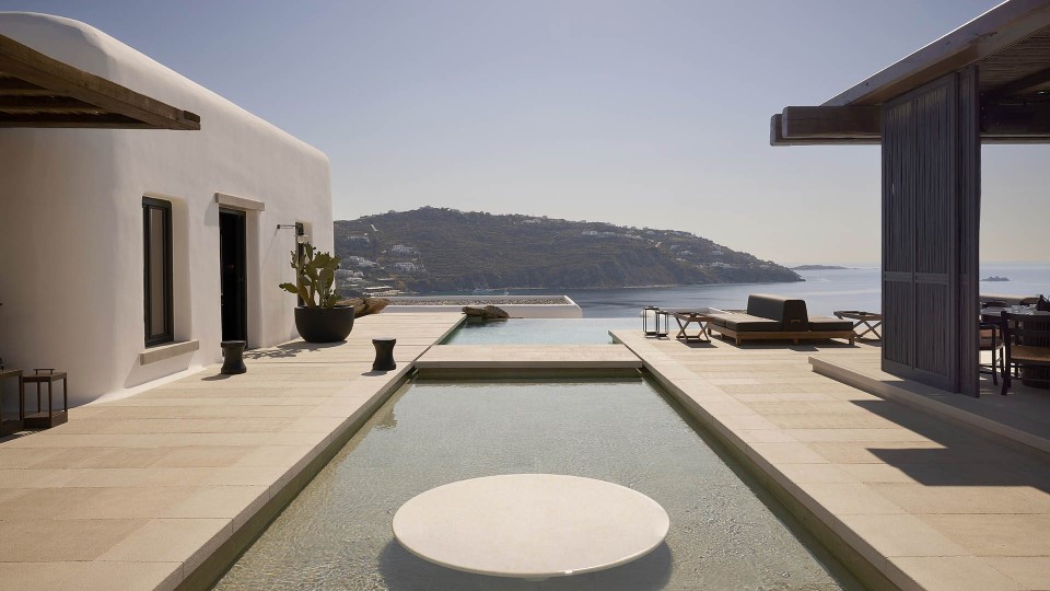 A quelques minutes en voiture du centre de Chora, capitale de Mykonos adulée par les jet-setters du monde entier, l’hôtel Kalesma Mykonos fait face à la superbe baie d’Ornos dans un paysage sublimé par les pierres, les oliviers et les figuiers. La mythologie grecque raconte que se trouvaient là, les écuries du dieu Apollon. Le cheval est donc devenu naturellement l’emblème de cet hôtel qui invite à se connecter à l’énergie des Cyclades. Conçu comme un village mykonien avec ses maisons blanchies à la chaux, il abrite sur 2 hectares 27 villas et suites où les vues sur la Mer Egée sont omniprésentes et époustouflantes. « Kalesma » qui veut dire « inviter » en grec, correspond à la philosophie de cet hôtel de luxe exclusif.