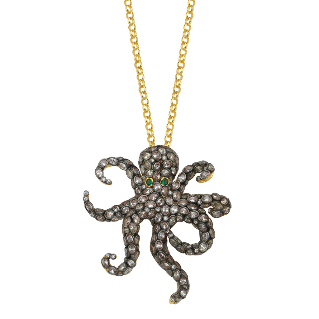 La collection Octopus de BEGÜM KHAN est une ode à l’océan et à ses mystères, une exploration des profondeurs marines à travers des créations qui séduisent par leur originalité et leur raffinement. Chaque pièce, façonnée avec soin, est une invitation à découvrir un monde où le luxe et la nature se rencontrent, offrant à ceux qui les portent une part du mystère et de la magie des fonds marins.