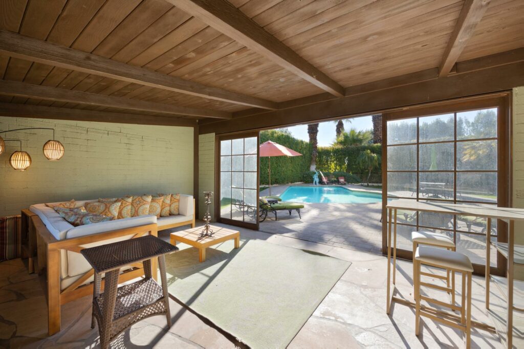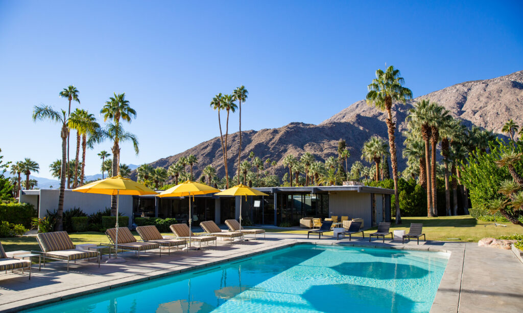 La Villa Carmelita, construite en 1930 pour l’acteur Joseph Cotten, est un autre joyau de Palm Springs. Cette villa, située dans l’enclave de Mesa, a abrité le chanteur Sonny Bono dans les années 1980. Récemment rénovée par le designer Rudi Polak, elle allie aujourd’hui tons naturels et touches vives, offrant un cadre à la fois élégant et confortable. Avec sa grande piscine chauffée, son jacuzzi, et ses nombreux espaces de détente, la cour centrale de la villa est idéale pour des soirées en plein air.