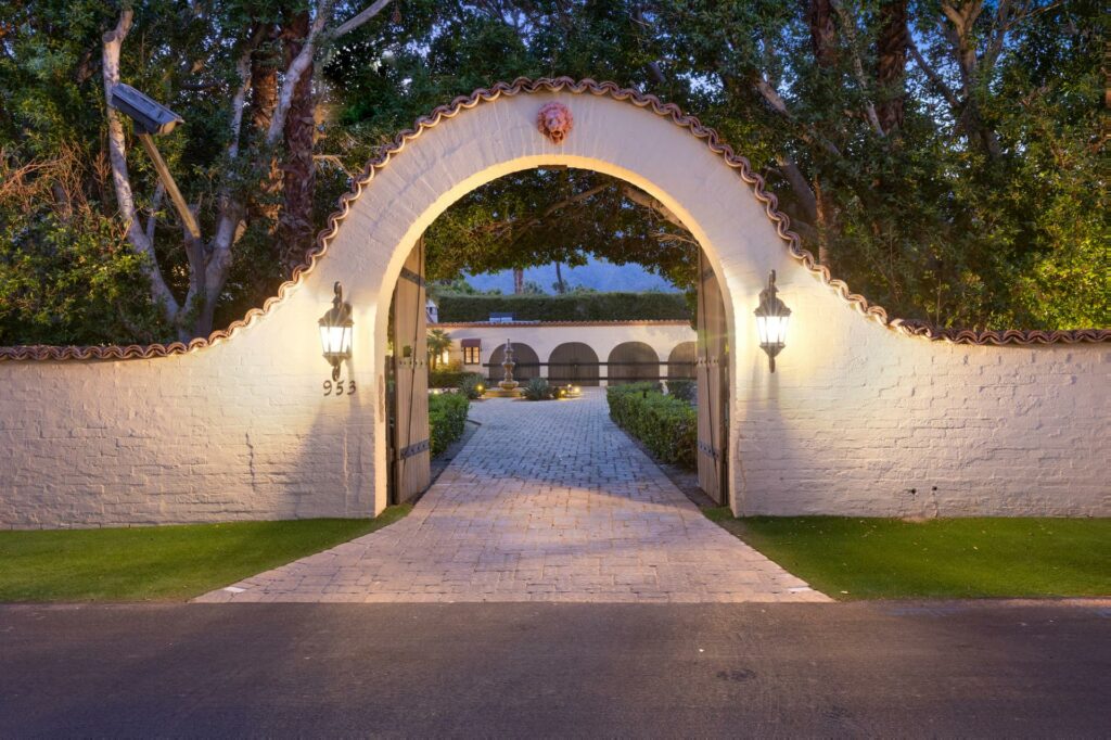 Parmi les trésors que recèle Palm Springs, la Sand Acre Estate brille par son histoire et son architecture majestueuse. Située au cœur du célèbre quartier de la Movie Colony, cette demeure de 319 mètres carrés, baignée de légendes hollywoodiennes, a accueilli des personnalités telles que Joe DiMaggio et Marilyn Monroe. On raconte que c’est ici même que DiMaggio demanda en mariage la célèbre blonde platine, et qu’ils y passèrent leur lune de miel. Entourée de hauts murs en stuc et de haies verdoyantes, la maison néocoloniale espagnole garantit une intimité totale. À l’intérieur, le charme des années 1950 se conjugue harmonieusement avec des équipements modernes, créant un cadre élégant et raffiné. L’extérieur n’est pas en reste, avec une piscine creusée, ornée d’un jeu d’eau en forme d’éléphant, qui invite à la détente sous le soleil californien.