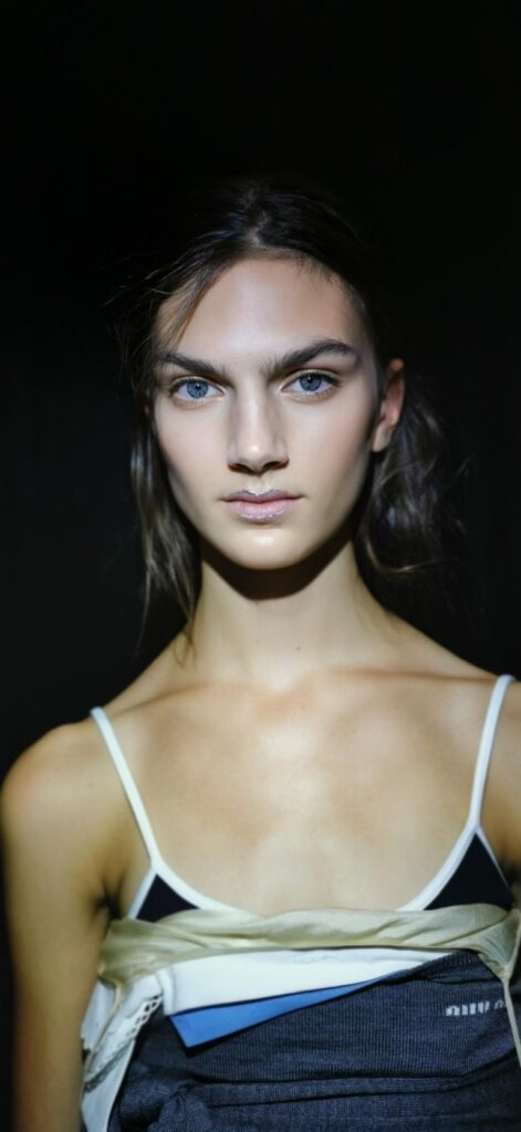 Cette collaboration entre Miu Miu et Pat McGrath incarne l’essence de l’innovation dans la mode et la beauté. À travers ce look avant-gardiste, McGrath continue de repousser les limites, jouant avec la texture, la lumière et des éléments inattendus pour offrir une vision unique du maquillage. Le résultat est un mélange de luxe discret et de fantaisie, typique de l’univers Miu Miu.