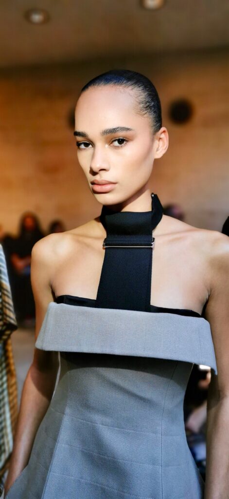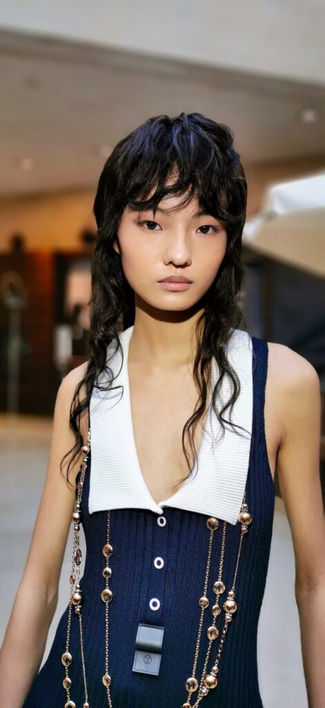 Ce maquillage incarne parfaitement la sophistication intemporelle de Louis Vuitton, alliant simplicité et luxe. En jouant sur des nuances discrètes et une peau éclatante, Pat McGrath a réussi à sublimer les modèles, tout en respectant l’essence raffinée de la Maison pour cette collection SS25.