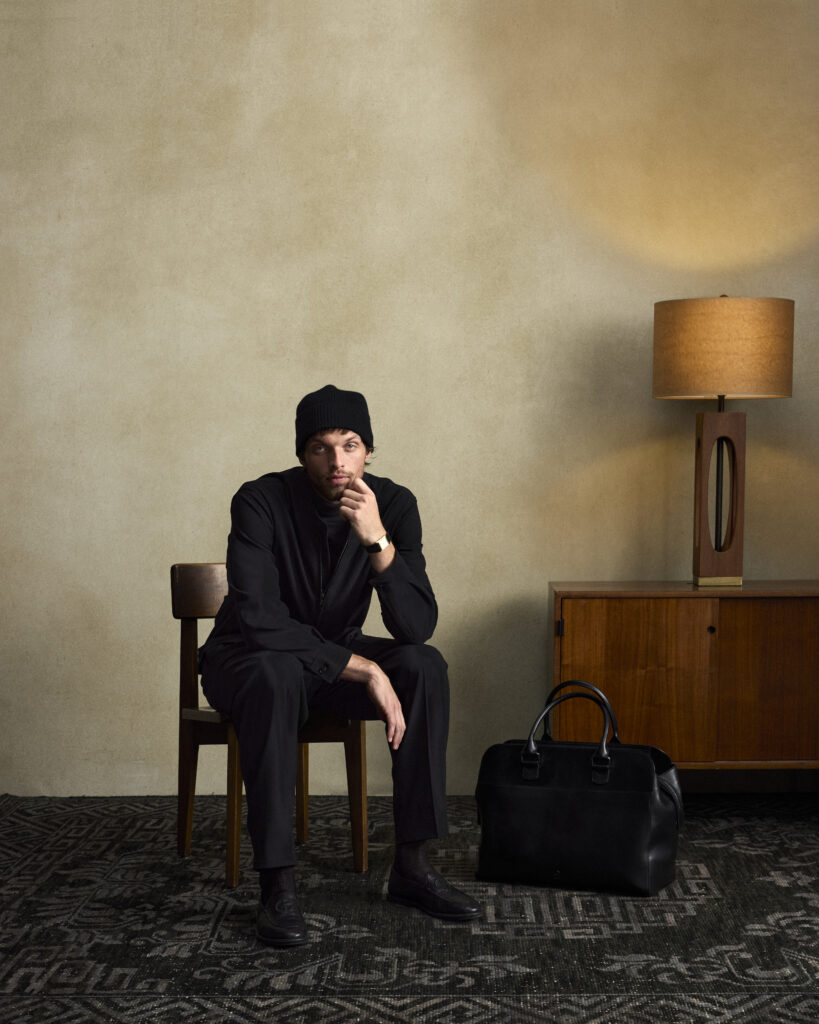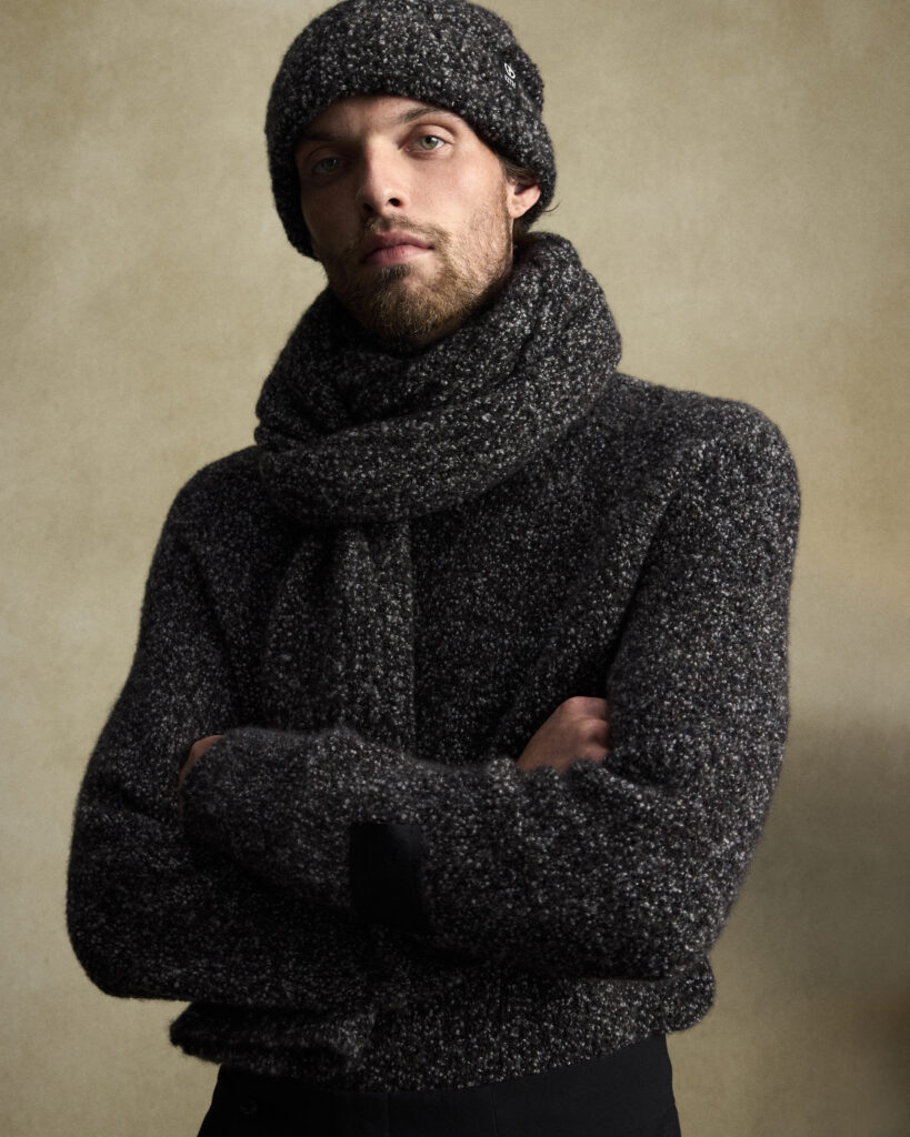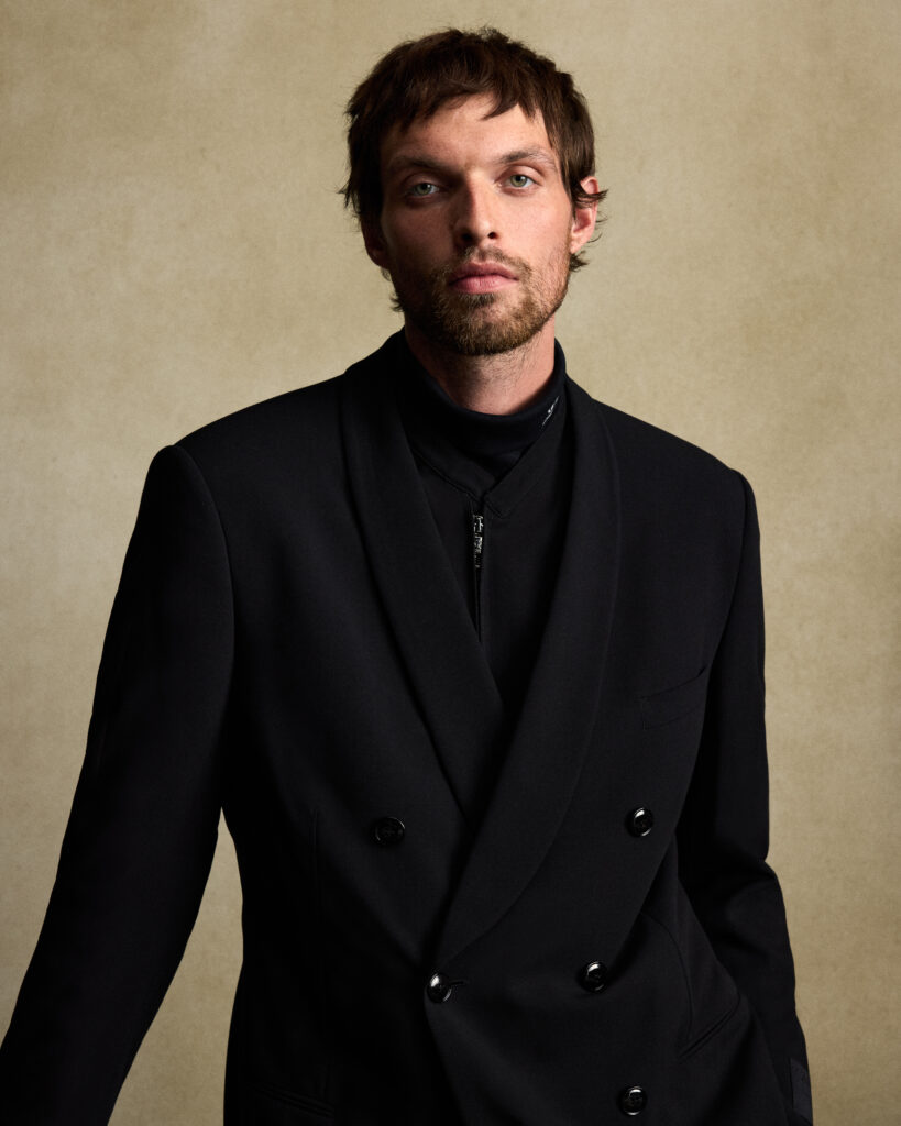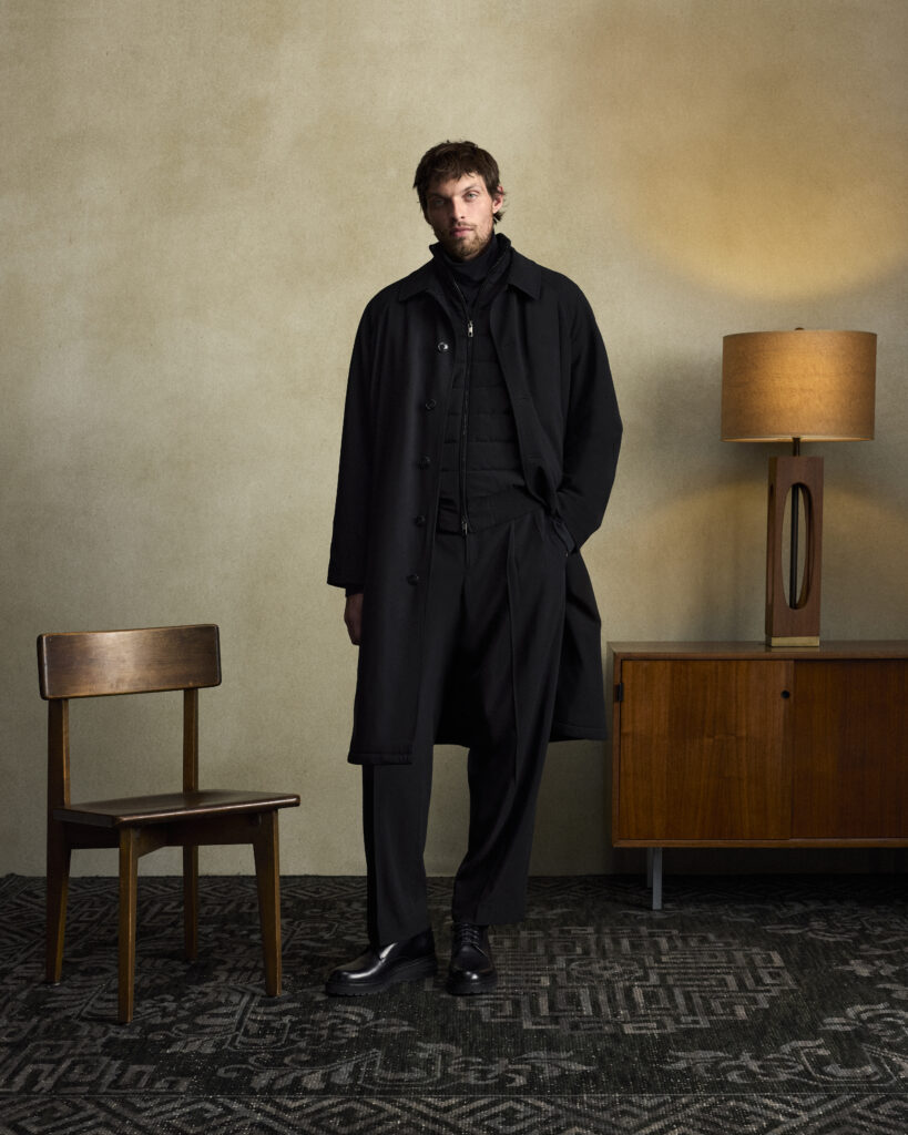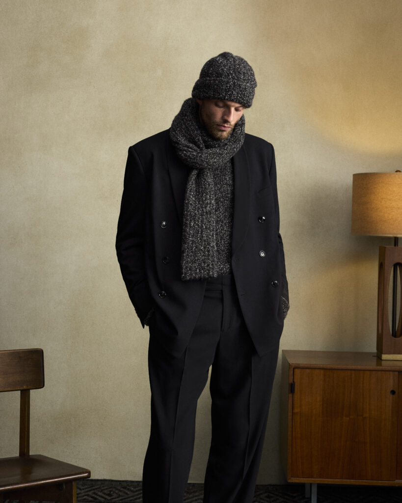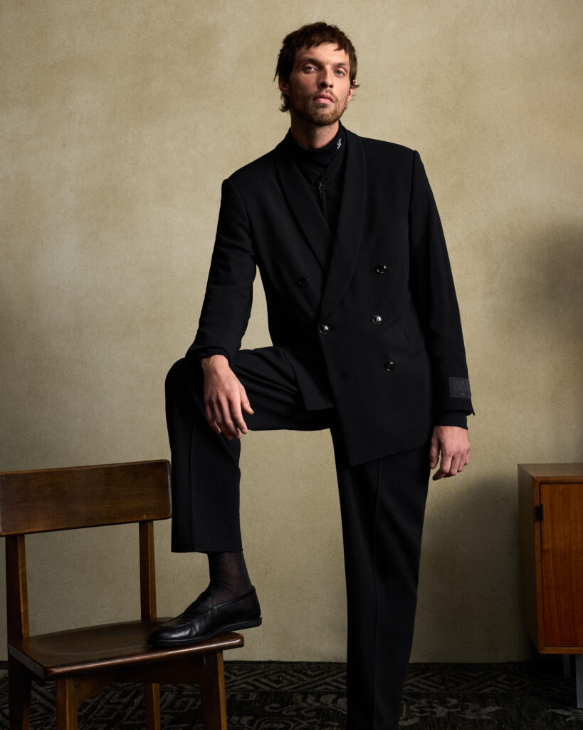 - L’Artiste : Inspiré par les créateurs visionnaires, cette capsule utilise une palette noire avec un costume croisé en laine vierge comme pièce maîtresse, accompagné d’un trench-coat, de cols roulés en cachemire et d’accessoires sophistiqués.
