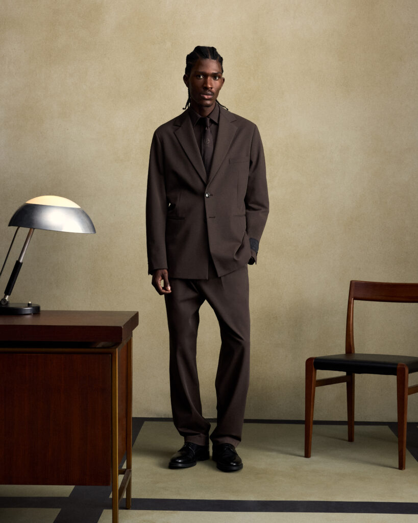 - L’Entrepreneur : Pensée pour ceux qui créent leur propre voie, cette capsule propose des costumes en brun foncé et noir, ainsi que des manteaux en cachemire et des accessoires en cuir tressé.