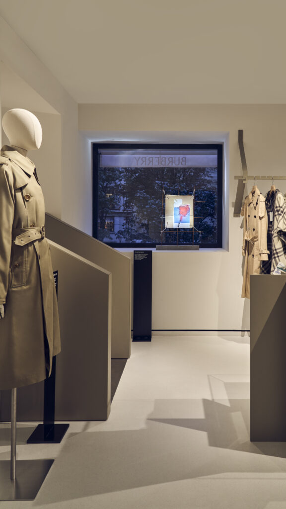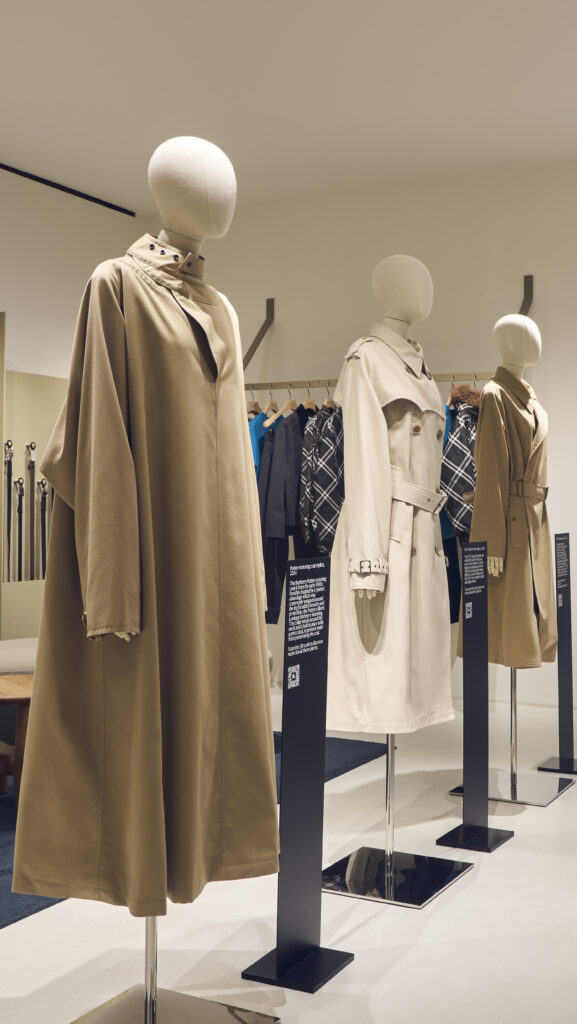 Cet événement coïncide avec le lancement de la campagne Outerwear 2024 de Burberry, un hommage vibrant au savoir-faire de la marque en matière de vêtements d’extérieur. Depuis l’invention de la gabardine imperméable par Thomas Burberry en 1879, la maison a su conjuguer protection et élégance, tout en continuant à innover dans le design des pièces emblématiques. Pour célébrer cet héritage, cinq répliques d’archives des pièces iconiques de la marque sont présentées au sein de la boutique.