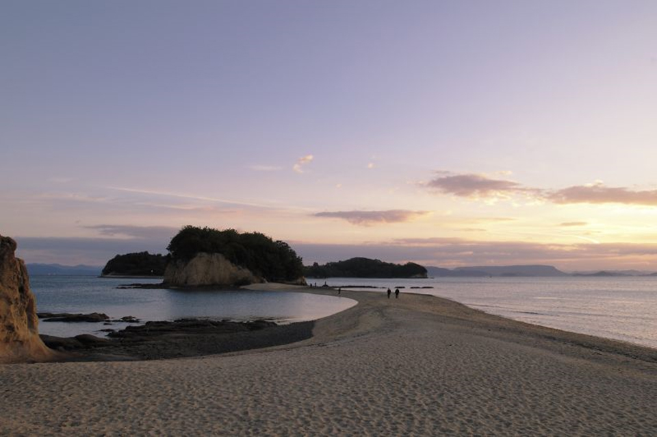 Angel Road est l’une des curiosités naturelles les plus romantiques de l’île. Deux fois par jour, à marée basse, un chemin de sable apparaît et relie Shodoshima à trois petites îles. Les couples se promènant main dans la main sur cette voie sont censés s’assurer une longue vie heureuse ensemble. Un cadre idyllique pour des photos au coucher du soleil.