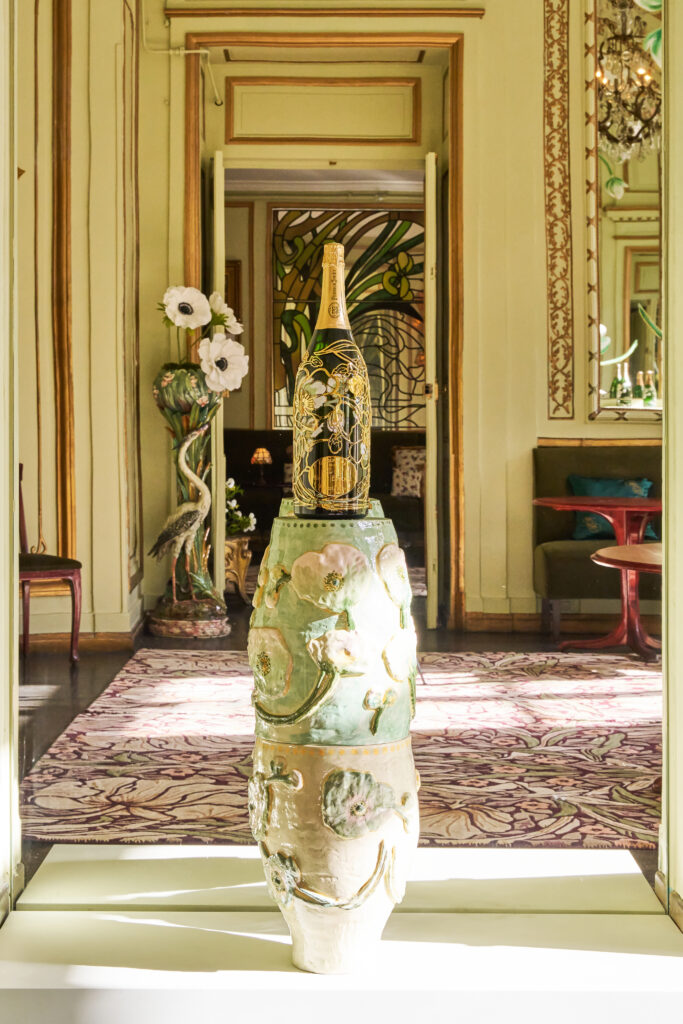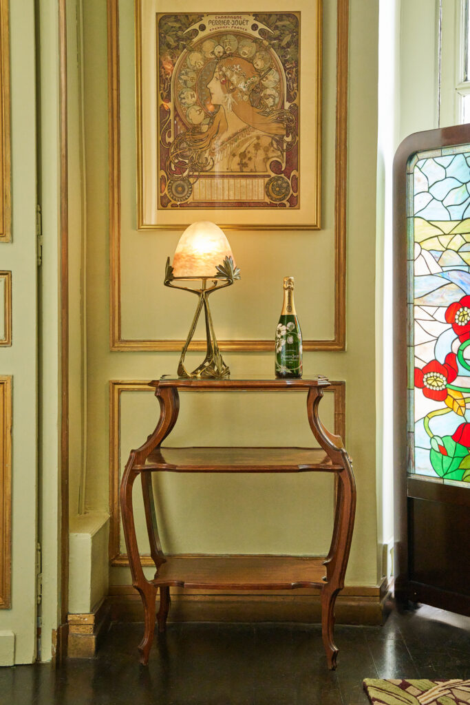 Dès septembre 2024, les visiteurs auront l’opportunité unique de déguster les cuvées iconiques de Perrier-Jouët, dont une édition limitée du Blanc de Blancs spécialement conçue pour l’occasion. Le bar éphémère, niché dans les étages privés de Maxim’s, est une véritable invitation à plonger dans l’univers floral et raffiné du champagne Perrier-Jouët, entouré de créations artistiques inédites et de pièces tirées de la collection Art Nouveau de la Maison Belle Époque. Parmi les trésors prêtés par Perrier-Jouët, on retrouve notamment la célèbre Table Servante d’Émile Gallé et le portrait de Pierre-Nicolas Perrier, fondateur de la Maison.