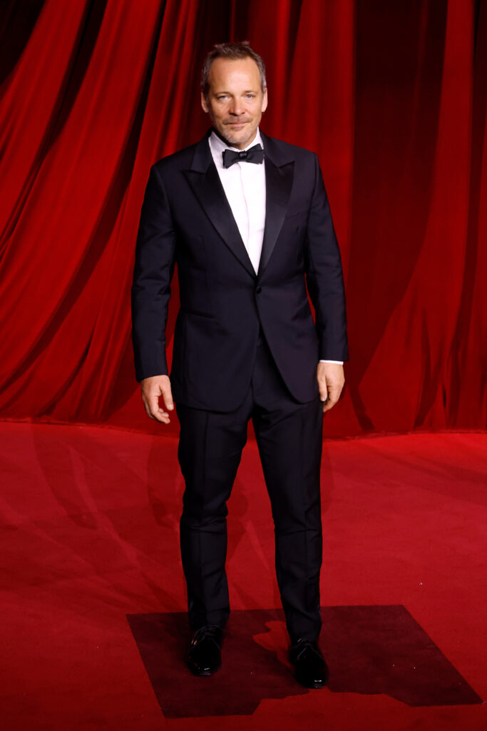 Peter Sarsgaard a fait sensation dans un smoking Berluti bleu nuit en mohair et satin, doté d’un col en pointe et d’un bouton unique. Cette tenue sophistiquée, complétée par une chemise en coton blanc et un nœud papillon en satin bleu nuit, reflète une élégance purement contemporaine, parfaite pour une soirée glamour.