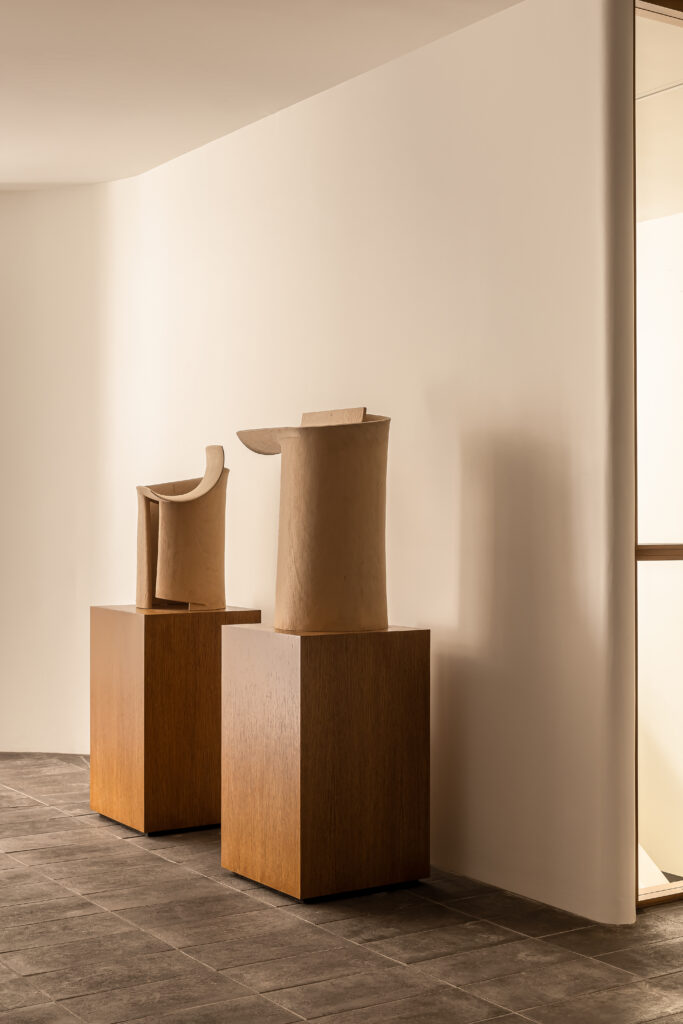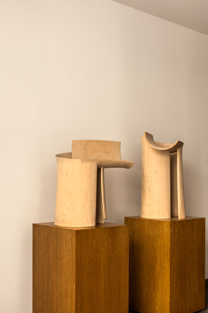 L’expérience débute par une exposition d’art et une capsule olfactive, un prélude aux six actes culinaires qui suivent. Nous avons pu admirer les œuvres de Jose Ramón Anda, sculpteur basque dont les pièces ouvrent une fenêtre sur les traditions basques, le tout magnifiquement mis en scène dans ce cadre d’exception. Chaque œuvre est une invitation à la contemplation, un avant-goût de la richesse culturelle et historique de cette région que nous allions explorer plus en profondeur.