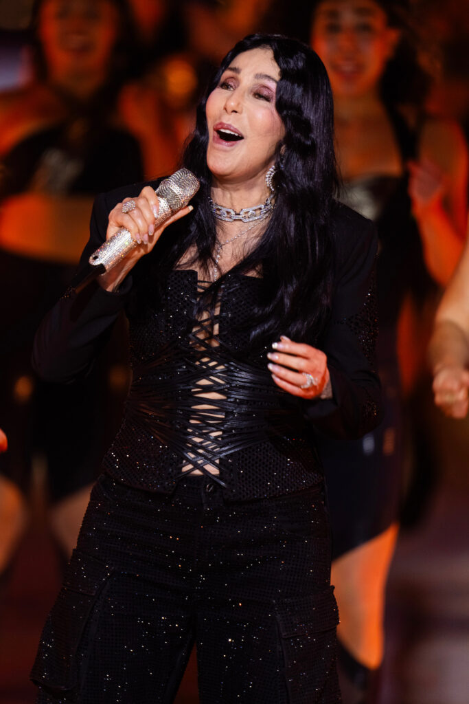 BROOKLYN, NEW YORK – OCTOBER 15: Cher performs during the Victoria’s Secret Fashion Show 2024 at Duggal Greenhouse on October 15, 2024 in Brooklyn, New York. (Photo by TheStewartofNY/FilmMagic)