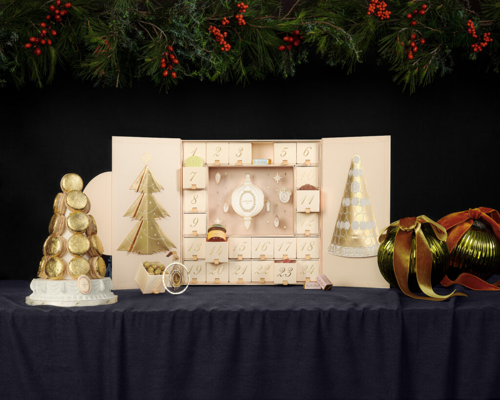 Ladurée célèbre l’approche de Noël avec son Calendrier de l’Avent 2024, une invitation gourmande à savourer chaque jour avant les fêtes. Ce bijou sucré renferme 24 trésors, chacun plus délicieux que le précédent : perles de chocolat, fruits délicatement enrobés, caramels fondants, pâtes de fruits exquises, fritures en chocolat, confitures maison, miel artisanal, et des marrons glacés enrobés de chocolat.