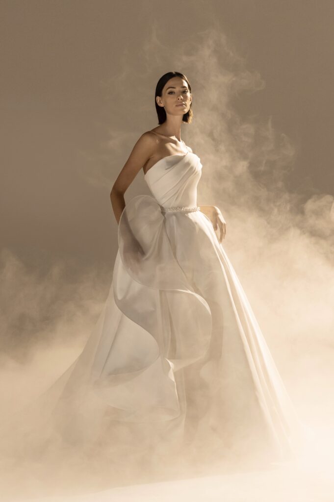 Ces créations, véritable hommage au savoir-faire haute couture, se déclinent en neuf modèles exclusifs, chacun témoignant de la maîtrise incomparable de Rolland dans la sublimation de la mariée contemporaine. Chaque robe est une œuvre d’art, parfaite pour une journée d’exception où l’élégance rencontre le rêve.