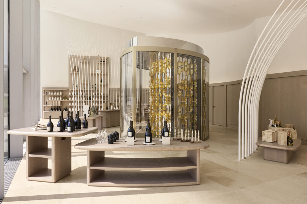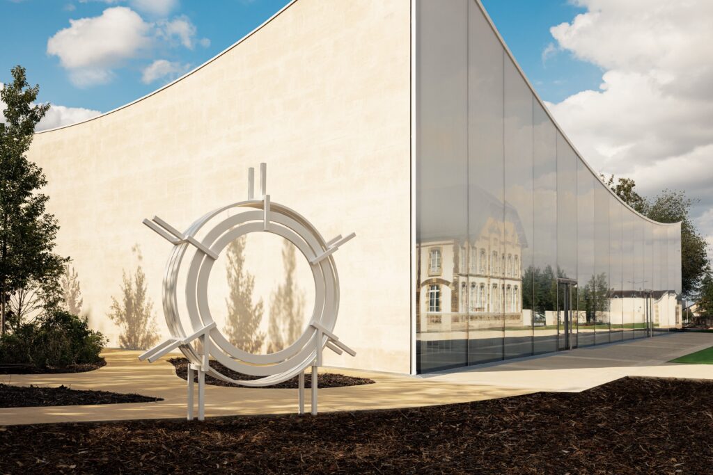 Le 4 Rue des Crayères se distingue par l’harmonie subtile entre le passé et le présent. Au cœur de Reims, cet espace métamorphosé intègre un pavillon contemporain en pierre et verre, répondant aux bâtiments du XIXe siècle qui l’entourent. Les courbes gracieuses de cette structure s’inspirent de l’évanescence des bulles de champagne, tandis que la lumière naturelle sculpte chaque détail. Ce lieu ne se contente pas de sublimer l’architecture champenoise traditionnelle, mais affirme une démarche écologique avec une autonomie énergétique de 80 %, grâce à l’utilisation de la géothermie et des panneaux photovoltaïques.