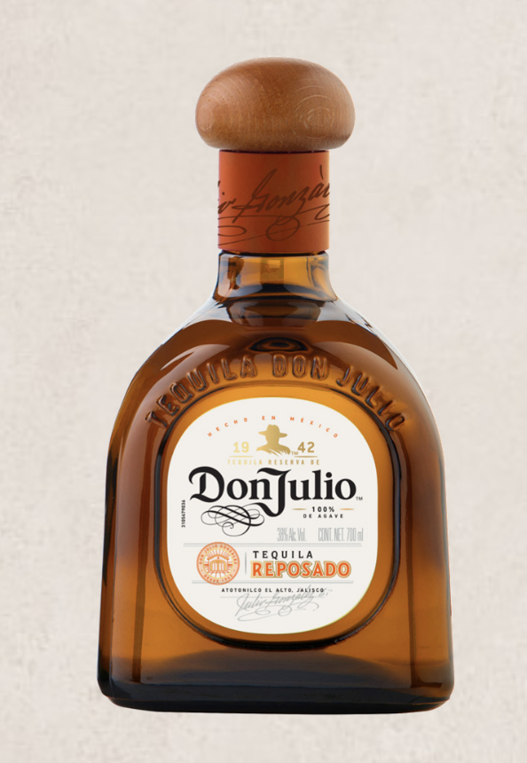 La Don Julio Reposado, première tequila vieillie produite par la distillerie, est une cuvée aux notes douces et élégantes de chocolat noir, de vanille et de cannelle, subtilement équilibrée par des touches de poire et de pomme caramélisée. Vieillie pendant huit mois en fûts de chêne blanc, elle se distingue par sa texture onctueuse et sa finale soyeuse. Elle est idéale à déguster seule ou dans un cocktail Paloma, emblématique du Mexique.