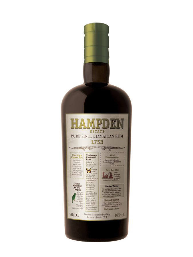 - Hampden 1753 – Ce rhum jamaïcain à 59,90 € est une édition limitée de 12 000 bouteilles, offrant une palette aromatique complexe et minérale, parfaite pour les amateurs de rhums high ester.