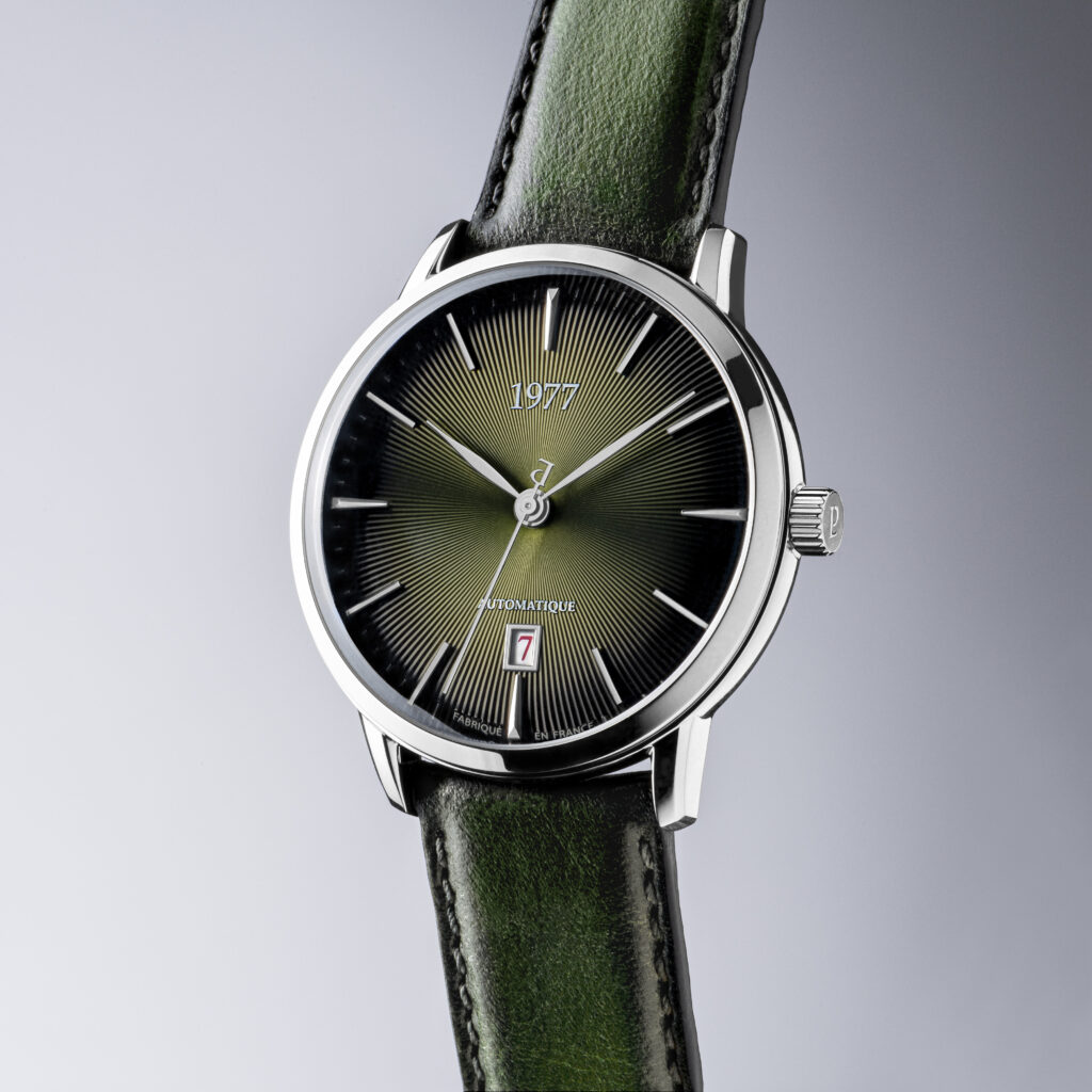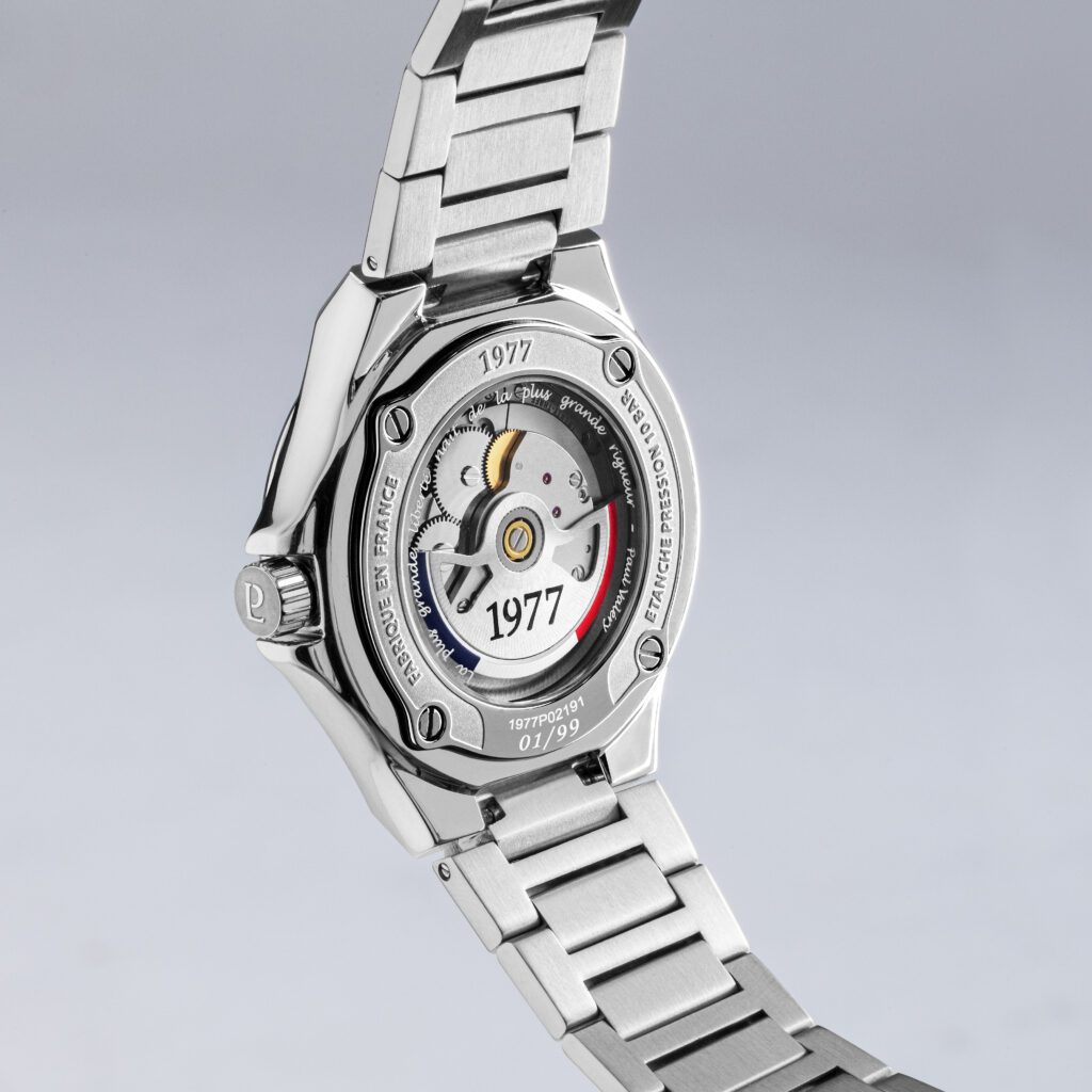Imaginée par Pierre Burgun, président actuel de Pierre Lannier, et concrétisée par sa fille Laura Burgun, la marque 1977 perpétue l’histoire familiale tout en y insufflant une nouvelle énergie créative. La collection 1977 se distingue par son engagement en faveur de l’horlogerie française, en étant la seule marque certifiée Origine France Garantie dans l’univers horloger. Chaque modèle est conçu, assemblé et en grande partie fabriqué en France, célébrant ainsi un savoir-faire artisanal d’exception.