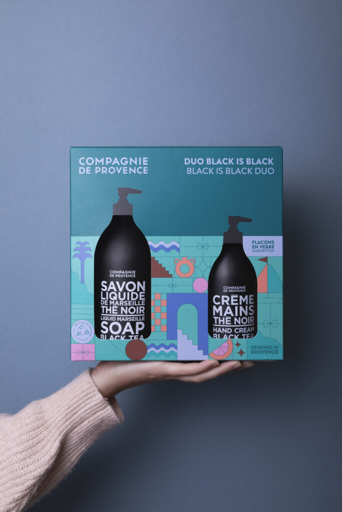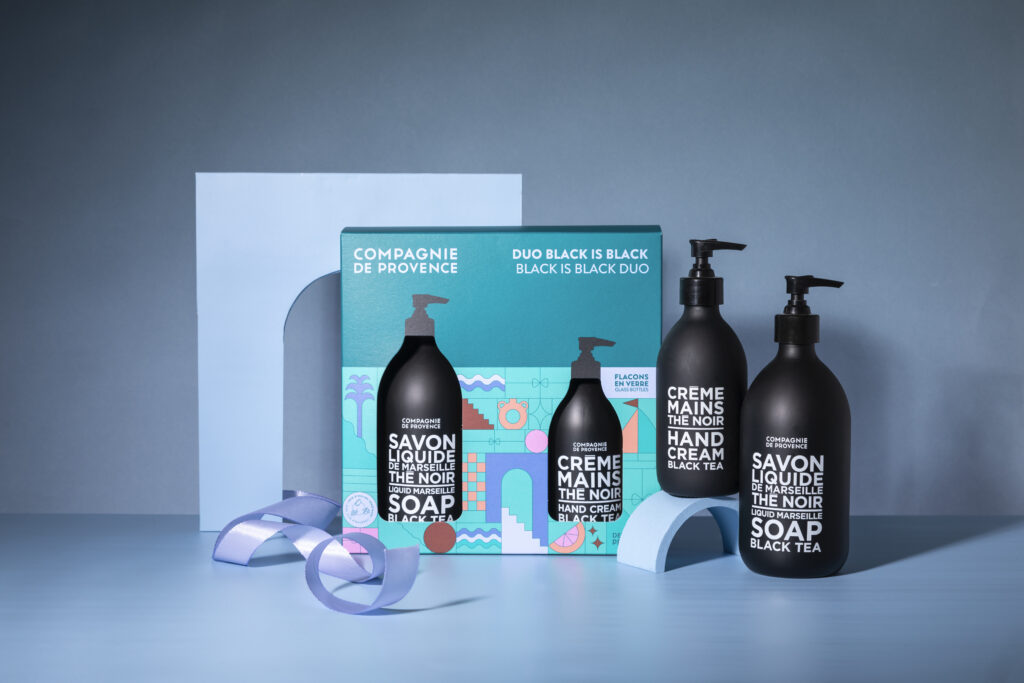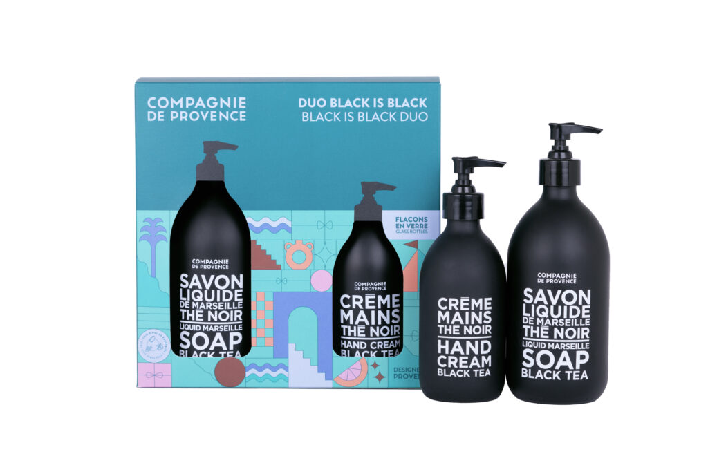 Pour les amateurs de fragrances sophistiquées, le Duo Black is Black (35 €) propose un Savon liquide de Marseille et une Crème mains parfumés au Thé Noir. Ce coffret est une invitation à la détente, tout en prenant soin de ses mains et de son corps avec élégance.