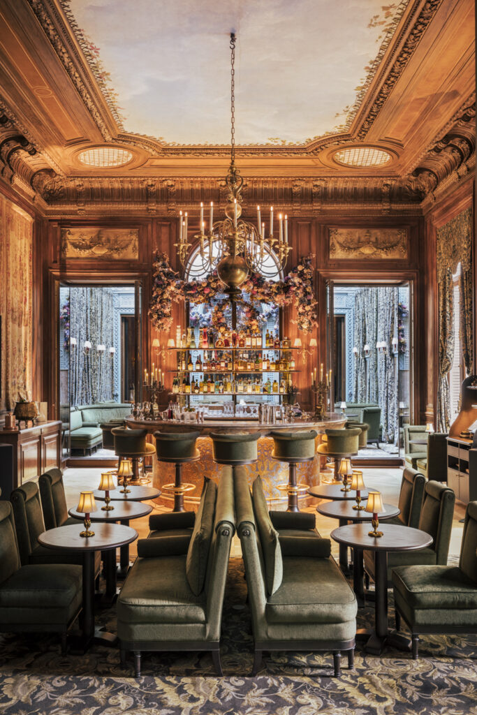 En franchissant les portes de Baronne, le visiteur est immédiatement transporté dans un univers fastueux. Les grandes salles de réception, avec leurs hauteurs sous plafond vertigineuses, accueillent une scénographie somptueuse imaginée par Corinne Sachot, déjà remarquée pour sa décoration du restaurant CoCo à l’Opéra Garnier. Les espaces intérieurs, à la fois historiques et contemporains, mêlent boiseries fin de siècle et touches de design moderne, offrant une expérience visuelle et sensorielle unique.