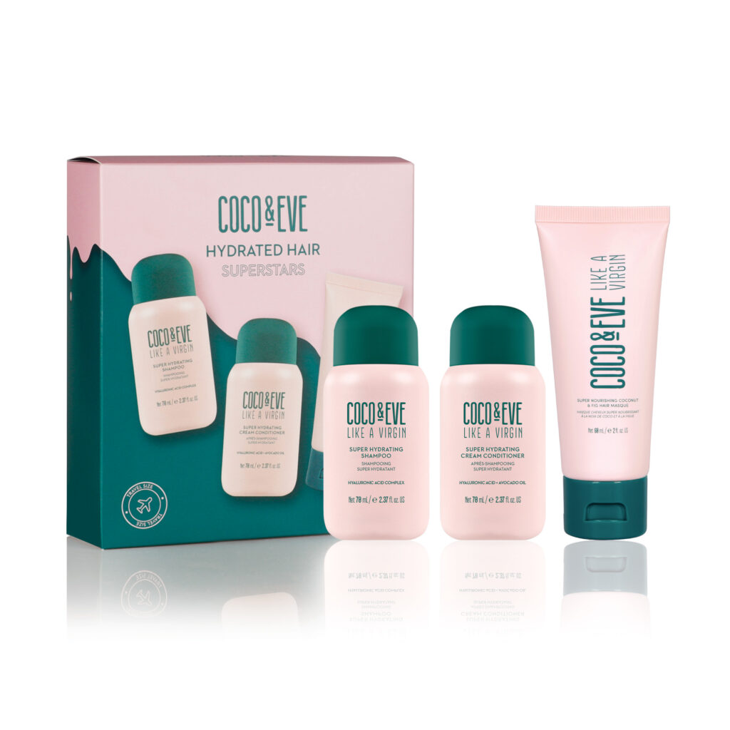 - Hydrated Superstars (28 €) : Ce coffret inclut le shampooing et l’après-shampooing Like A Virgin en format voyage (70 ml) et le célèbre masque Like A Virgin. Enrichi en noix de coco et figues, il nourrit intensément les cheveux secs et les laisse souples et brillants.