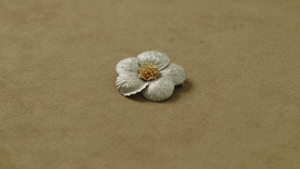 Ce qui distingue les broches florales Buccellati, y compris la broche Magnolia, est l’utilisation de la technique de gravure appelée « segrinato », signature emblématique de la maison depuis les années 1930. Cette méthode consiste à graver à la main des lignes dans des directions superposées, créant une texture douce et réaliste sur les pétales, semblant animés par le vent. Le segrinato est particulièrement apprécié pour sa capacité à donner du mouvement et de la vie aux éléments naturels représentés dans les bijoux .