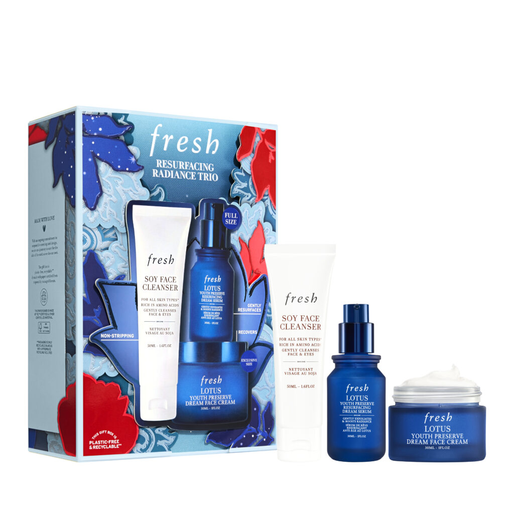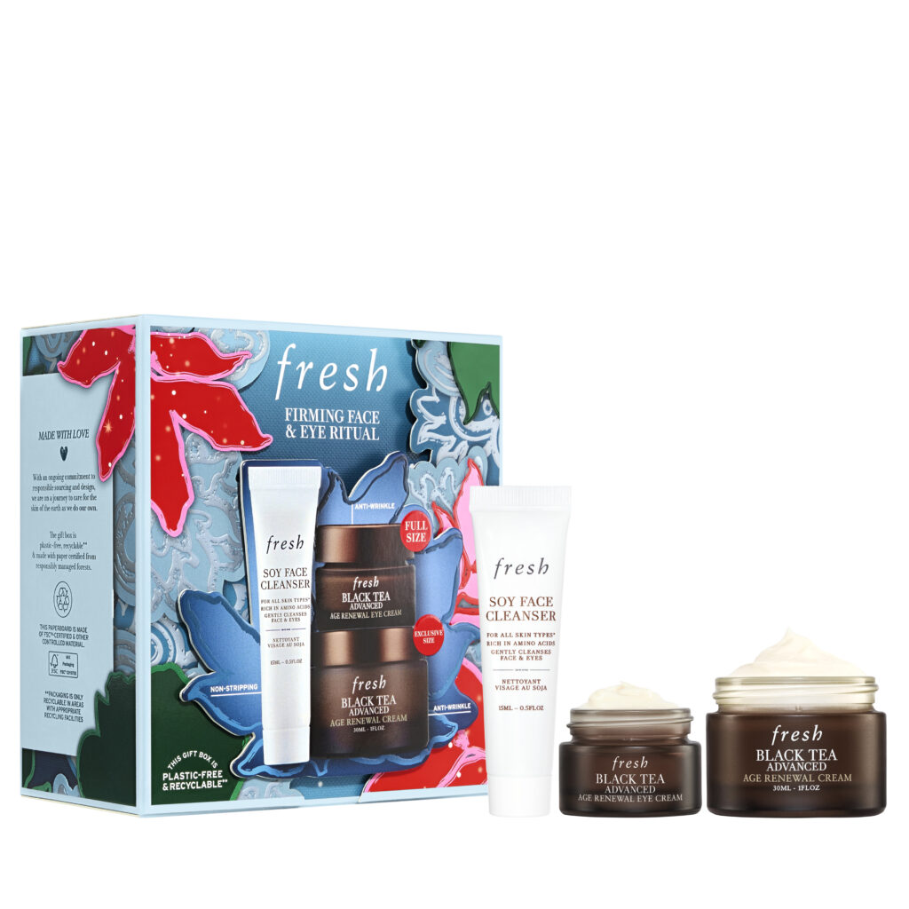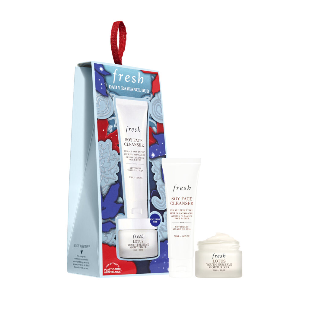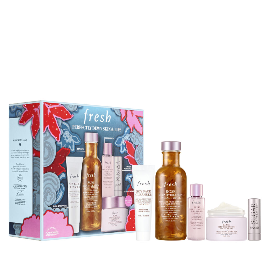 L’un des coffrets phares de la collection Noël 2024, cette routine à base de rose hydrate, apaise et illumine la peau. Conçu en cinq étapes, ce rituel complet intègre des soins incontournables de Fresh, dont le masque à la rose et le toner, pour un teint éclatant et revitalisé.