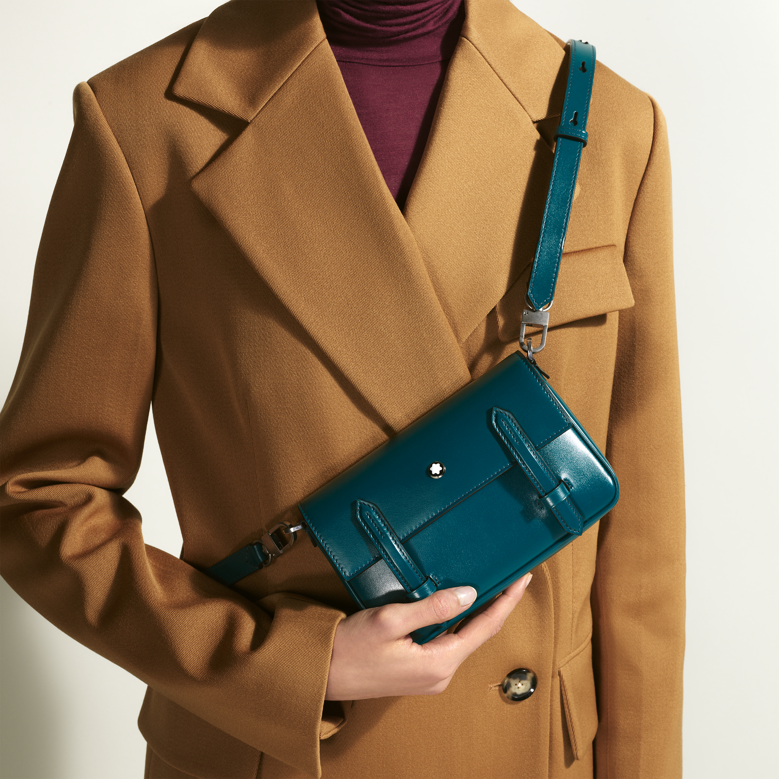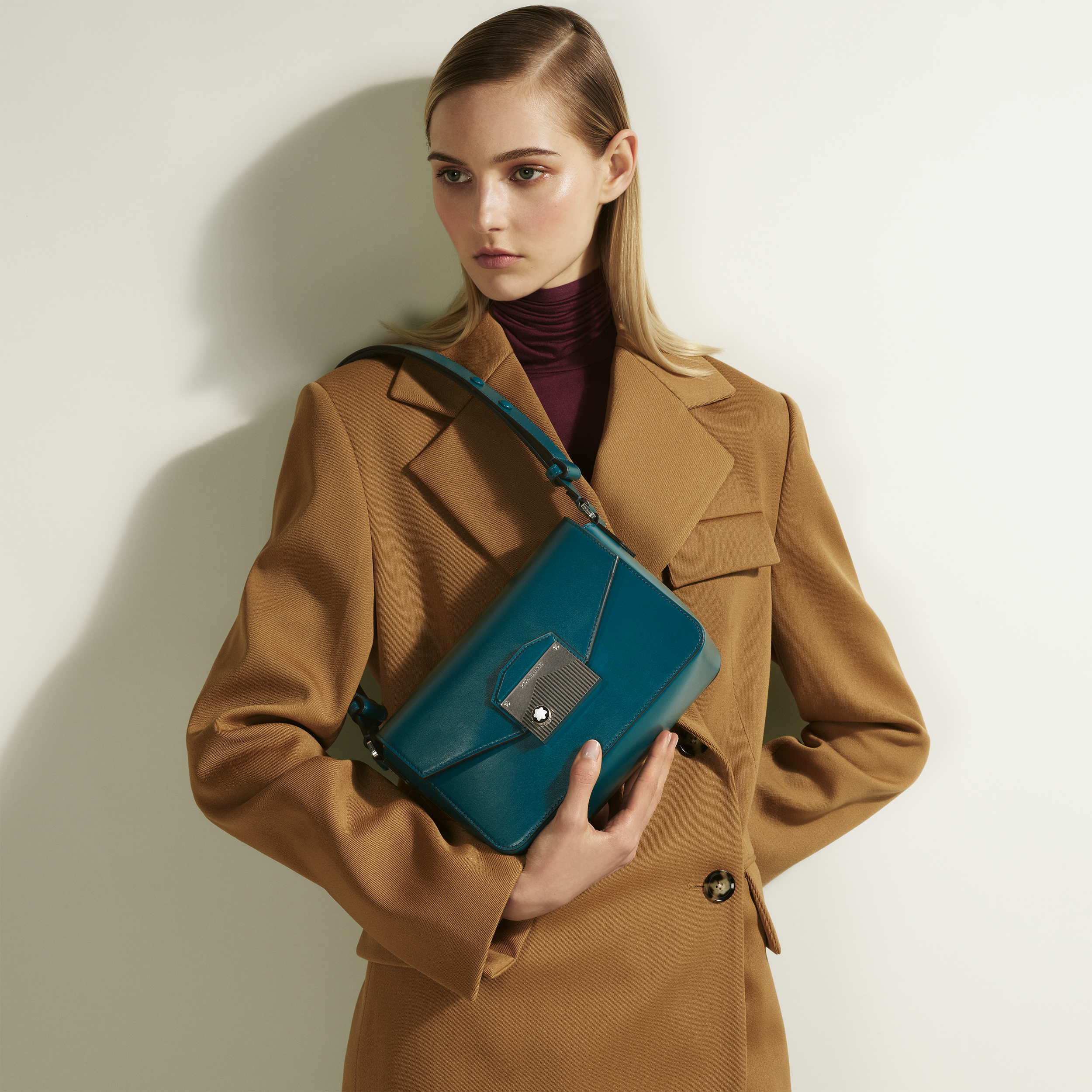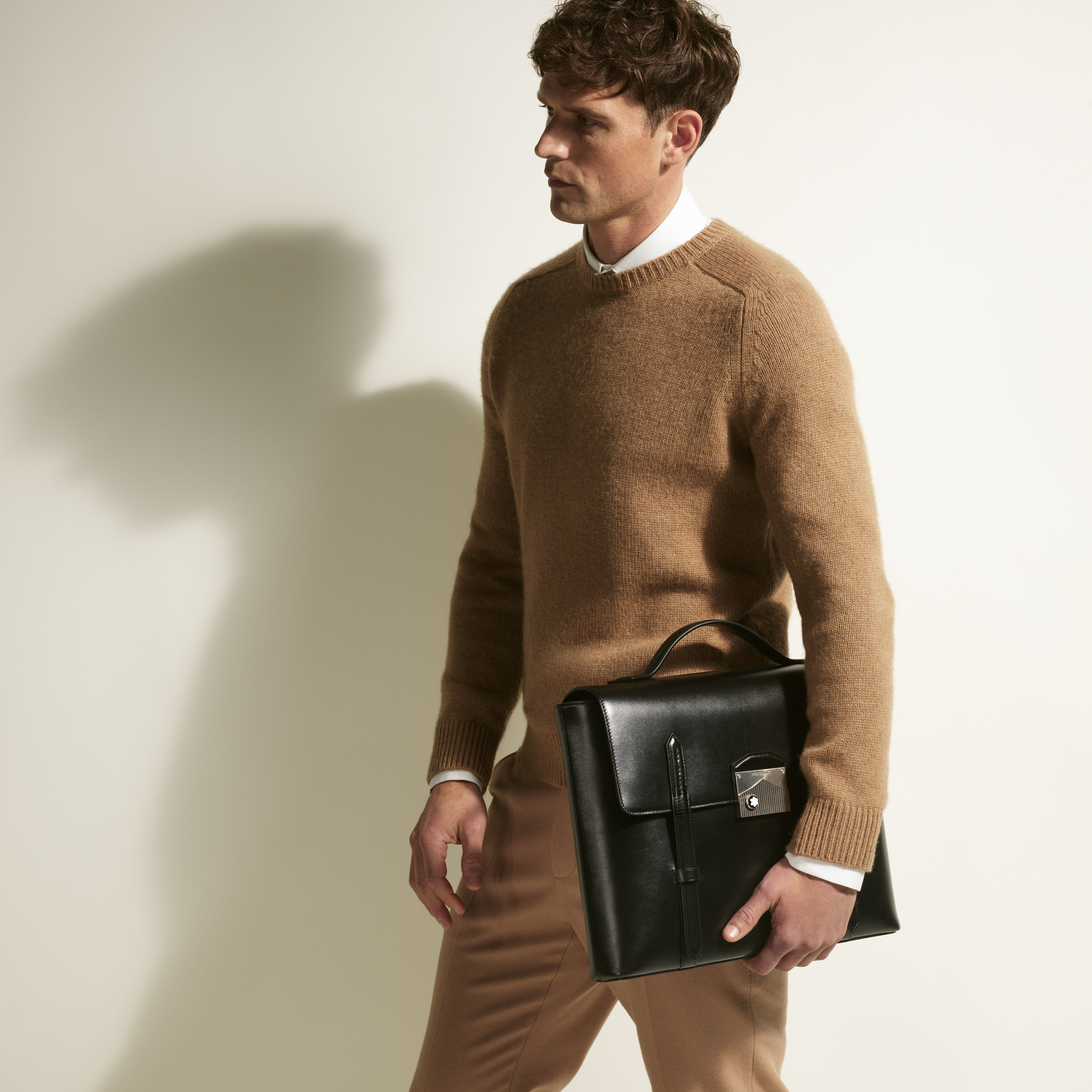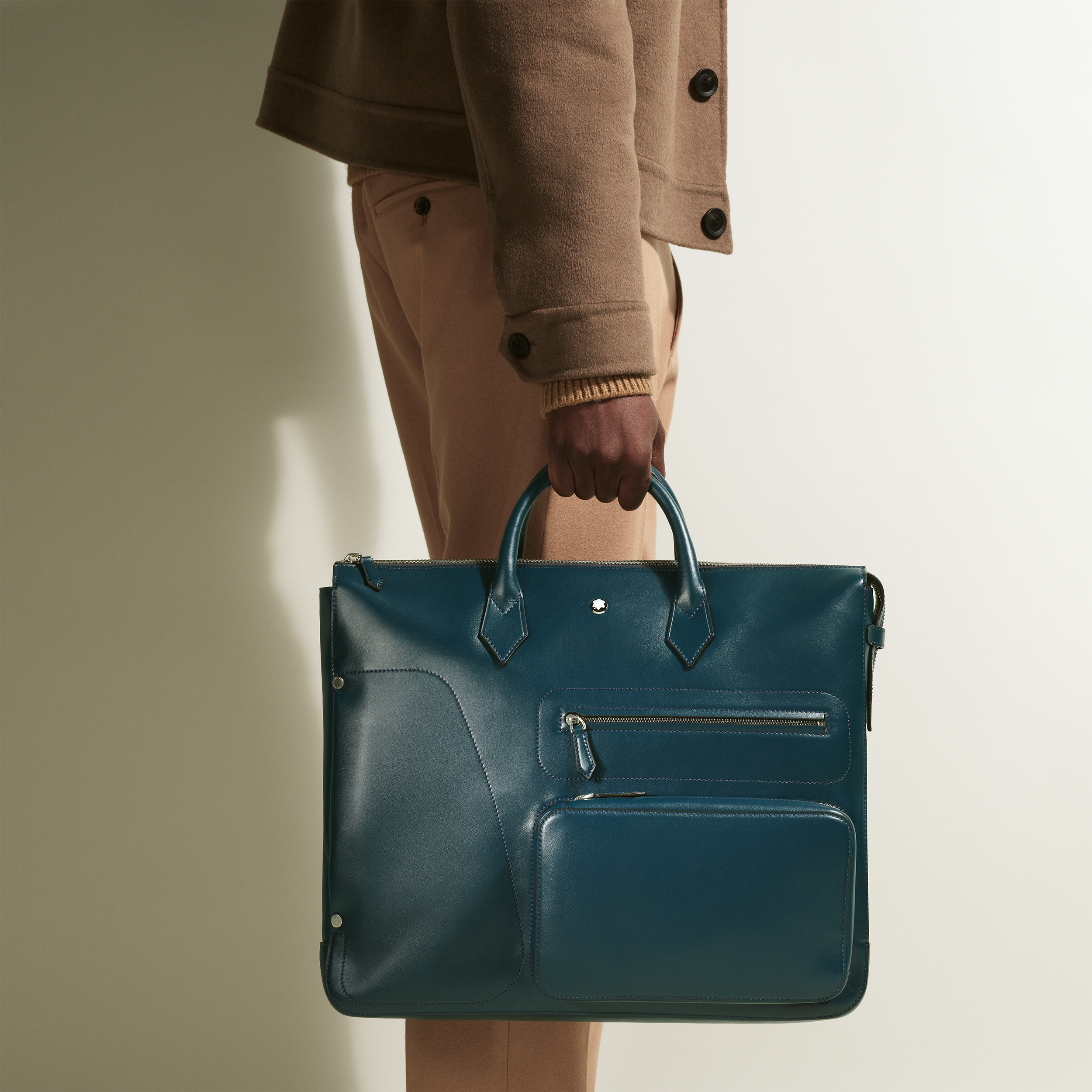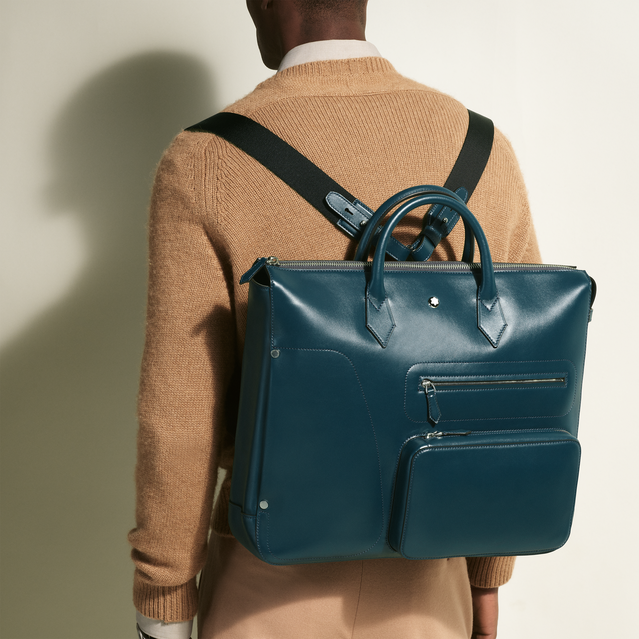 La collection Meisterstück introduit également des versions revisitées de ses modèles les plus populaires, notamment dans les teintes Russet et Cyprus Blue. Le sac Messenger et le porte-documents mini se parent d’un coloris Cyprus Blue sfumato, où des dégradés élégants évoquent l’encre se diffusant doucement sur le papier, un clin d’œil raffiné à l’histoire de l’écriture de Montblanc.