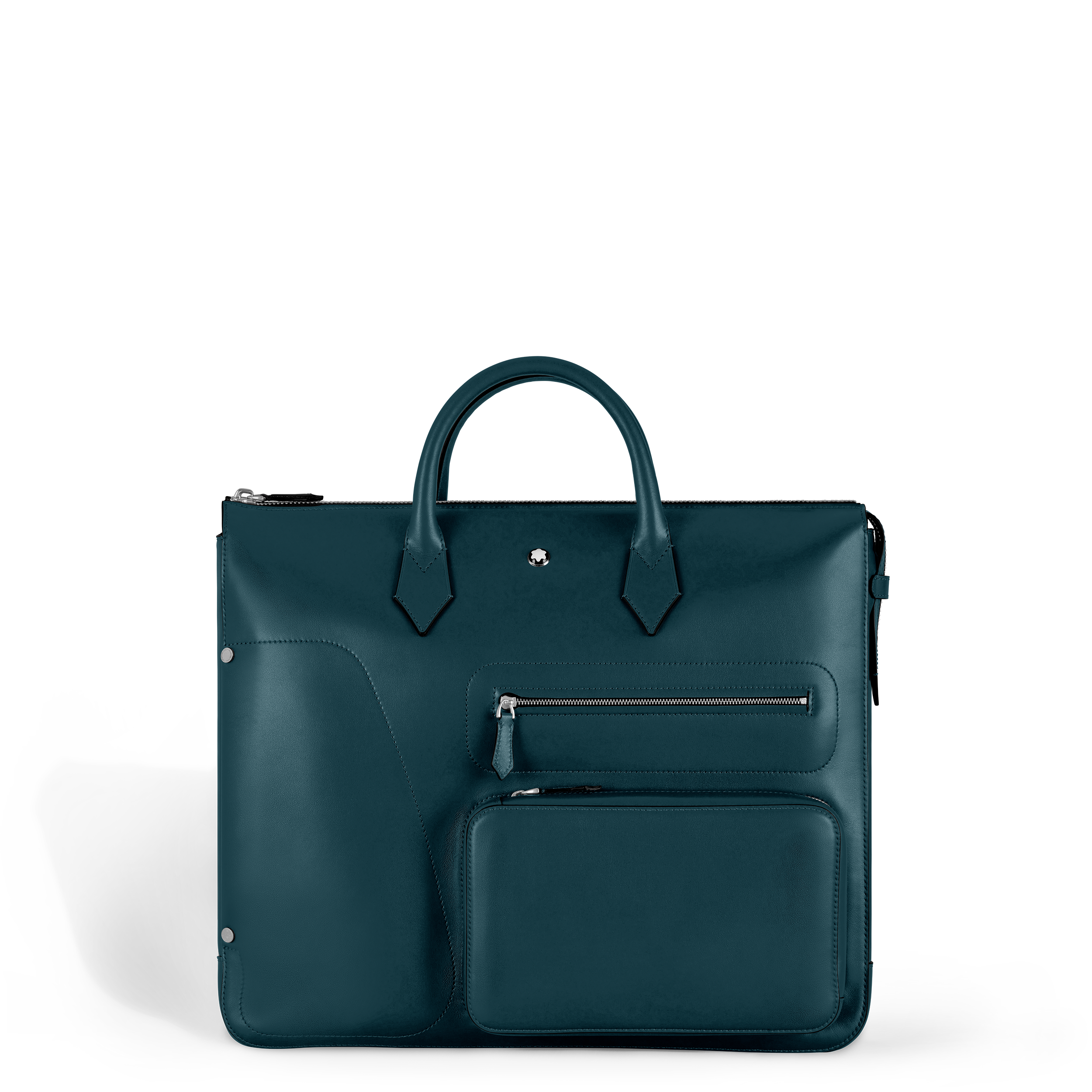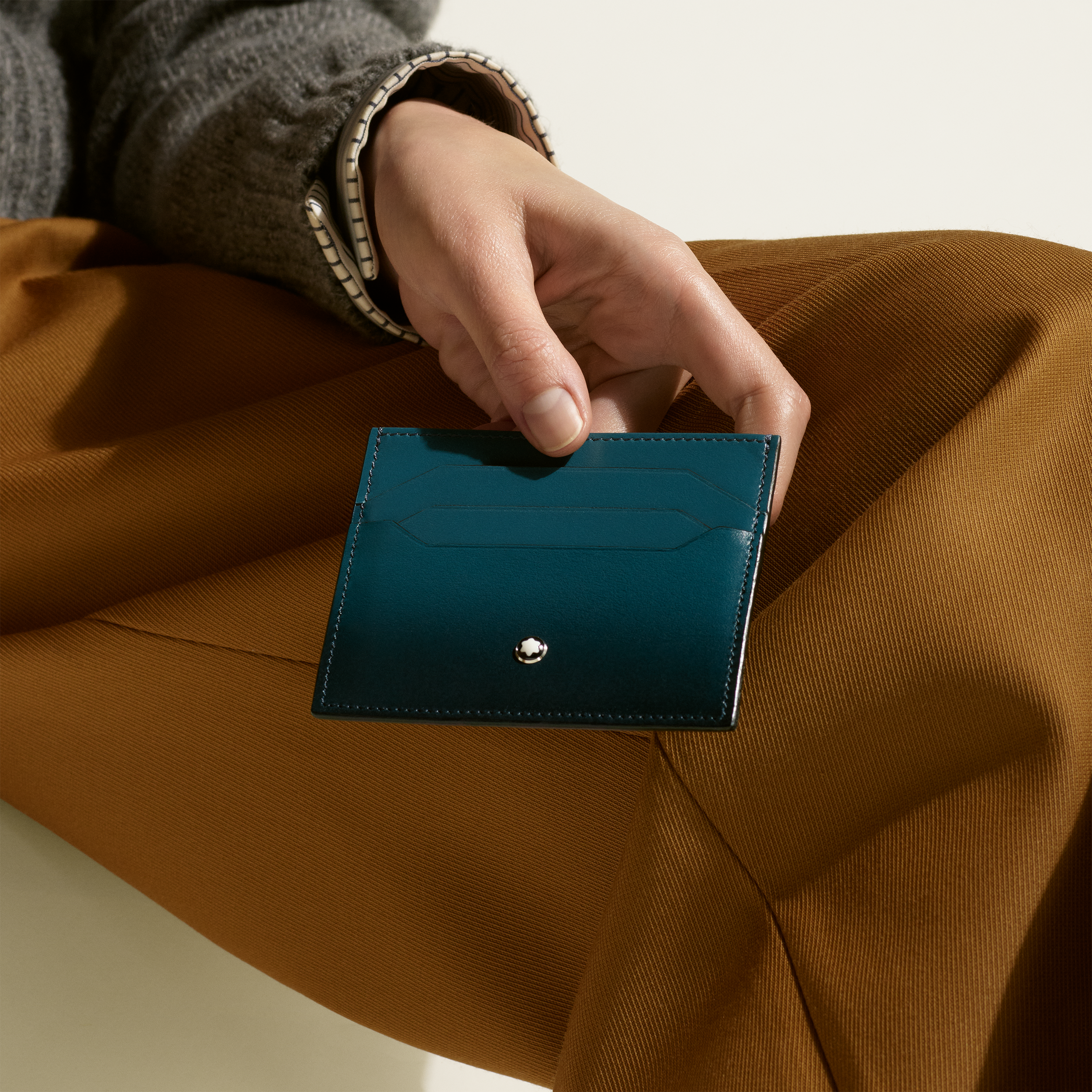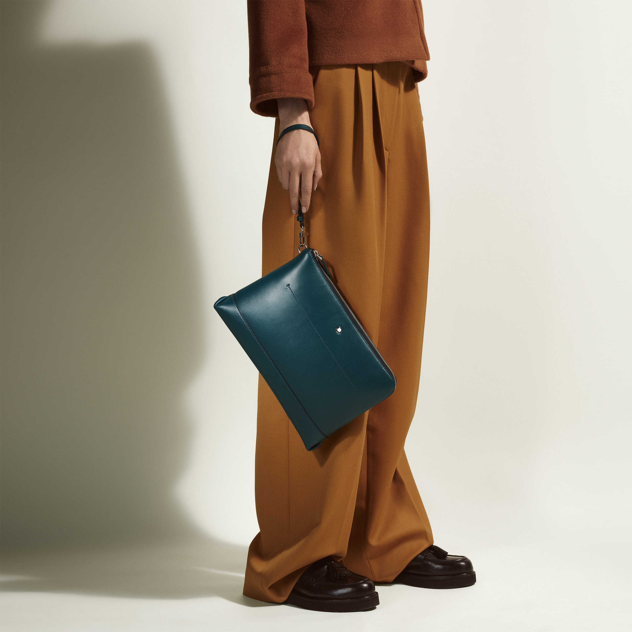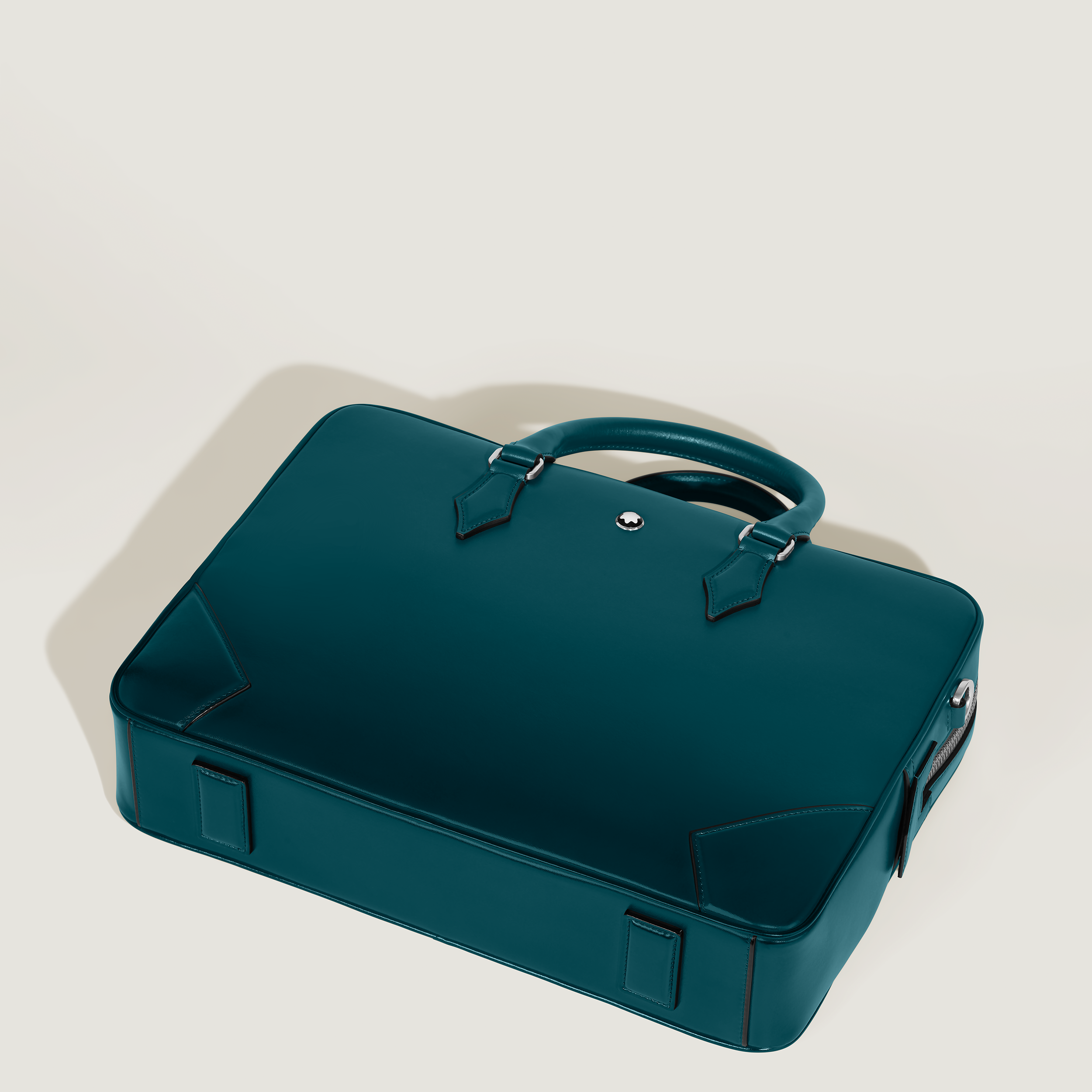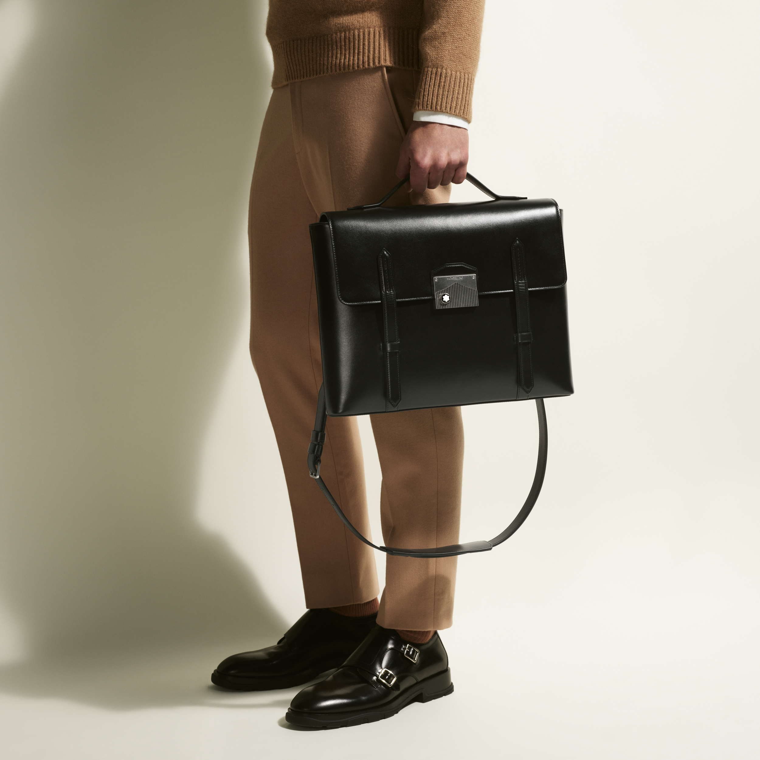 La collection Meisterstück introduit également des versions revisitées de ses modèles les plus populaires, notamment dans les teintes Russet et Cyprus Blue. Le sac Messenger et le porte-documents mini se parent d’un coloris Cyprus Blue sfumato, où des dégradés élégants évoquent l’encre se diffusant doucement sur le papier, un clin d’œil raffiné à l’histoire de l’écriture de Montblanc.