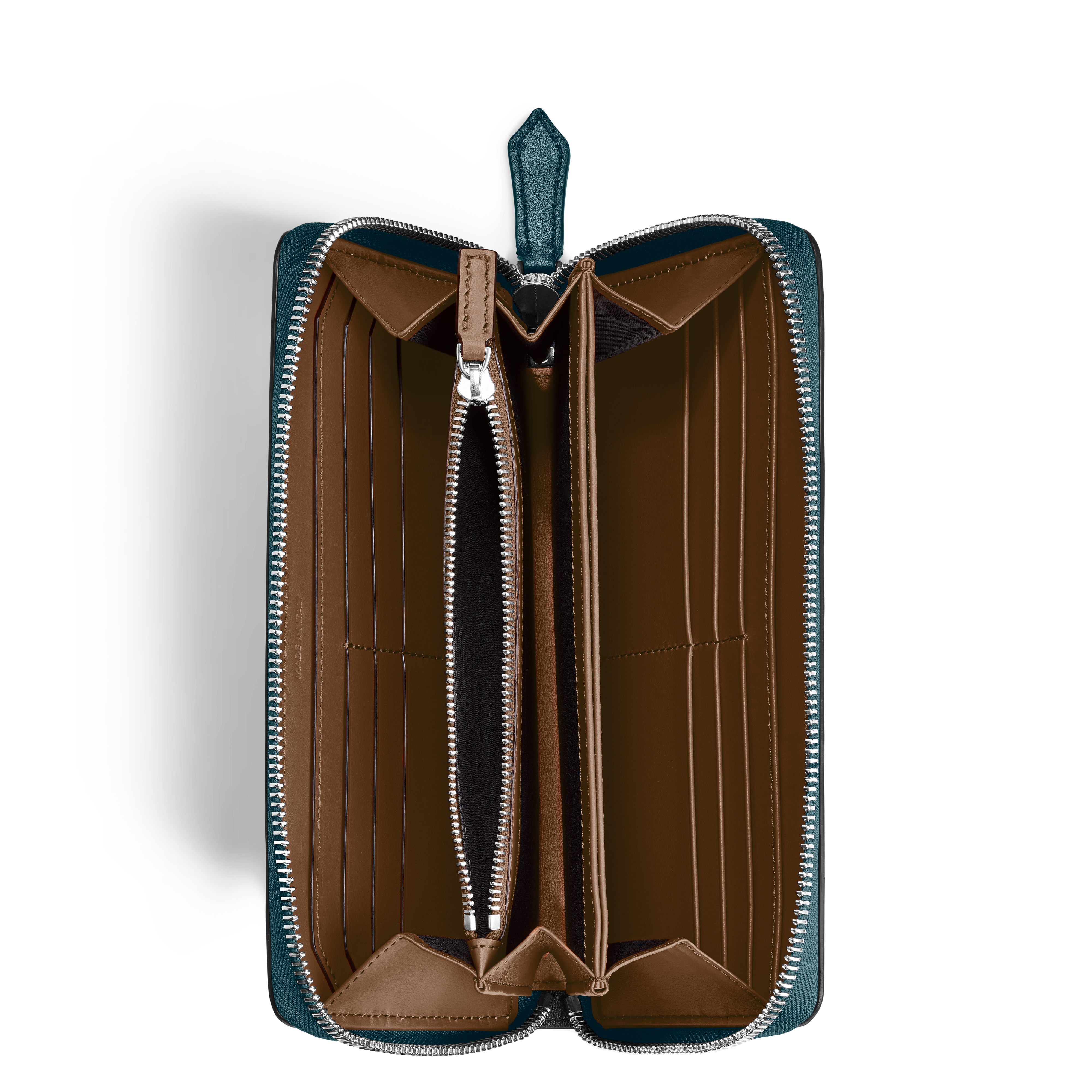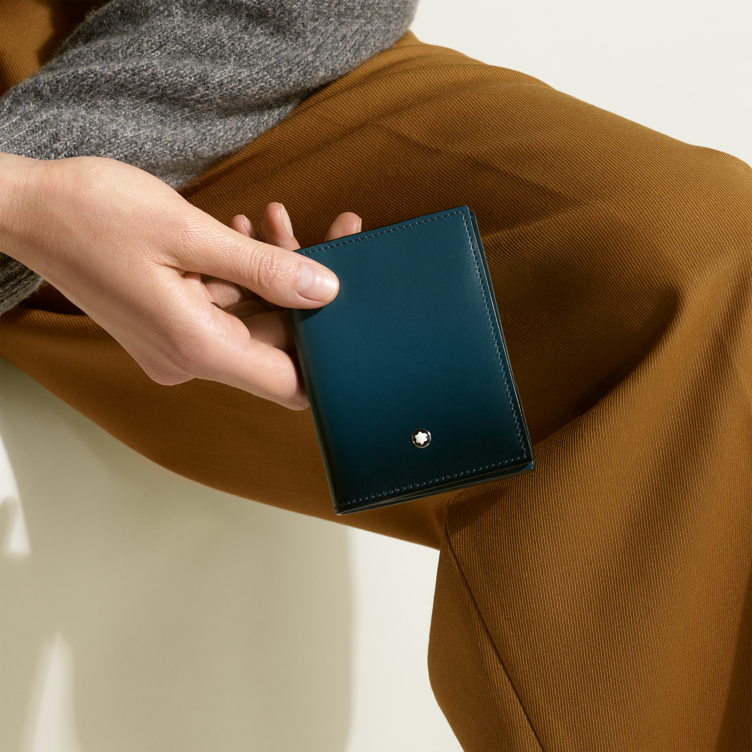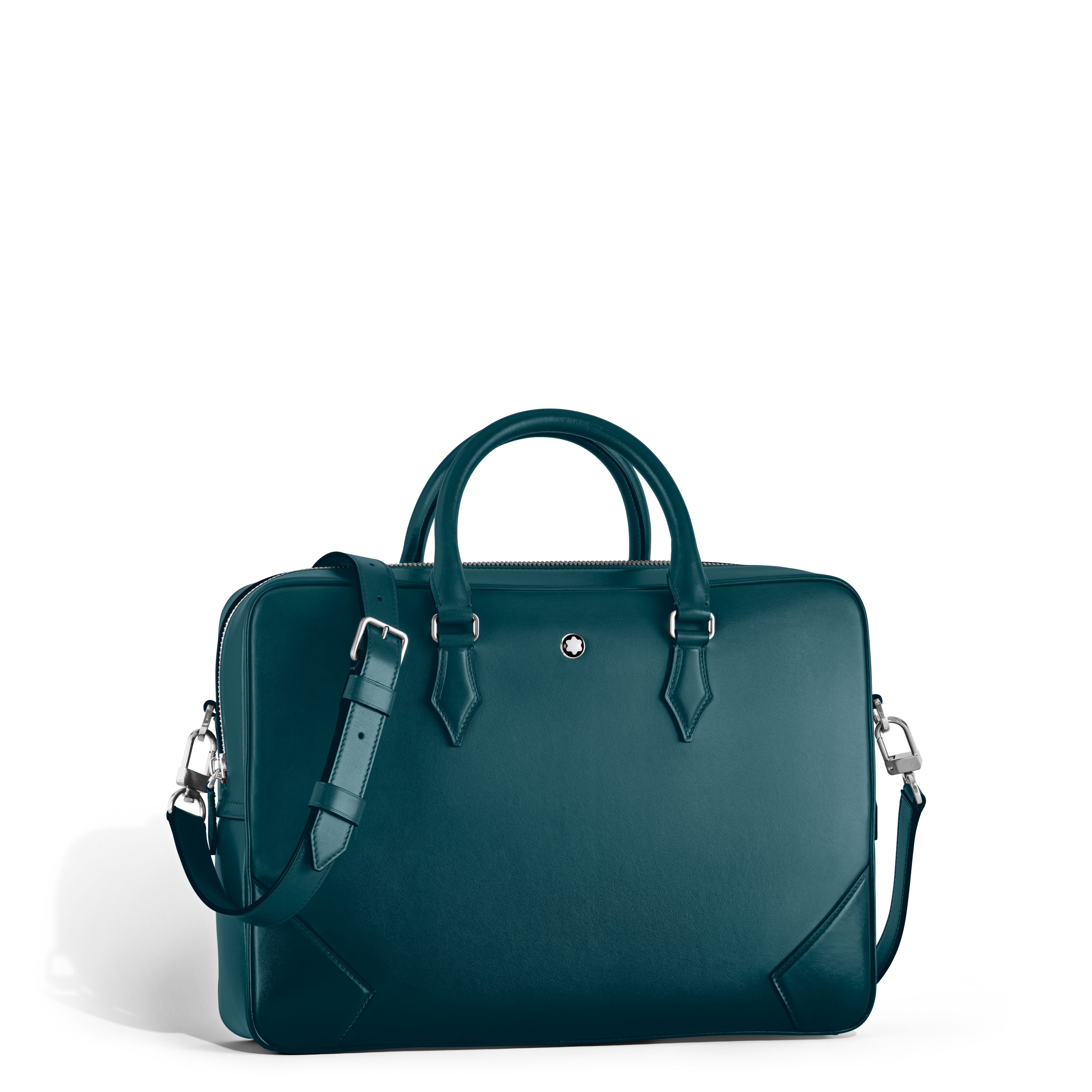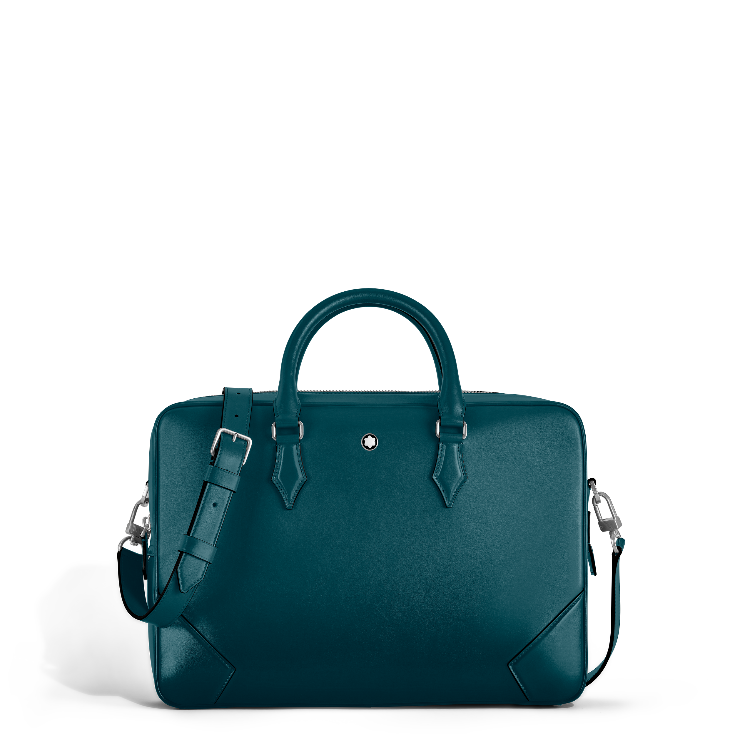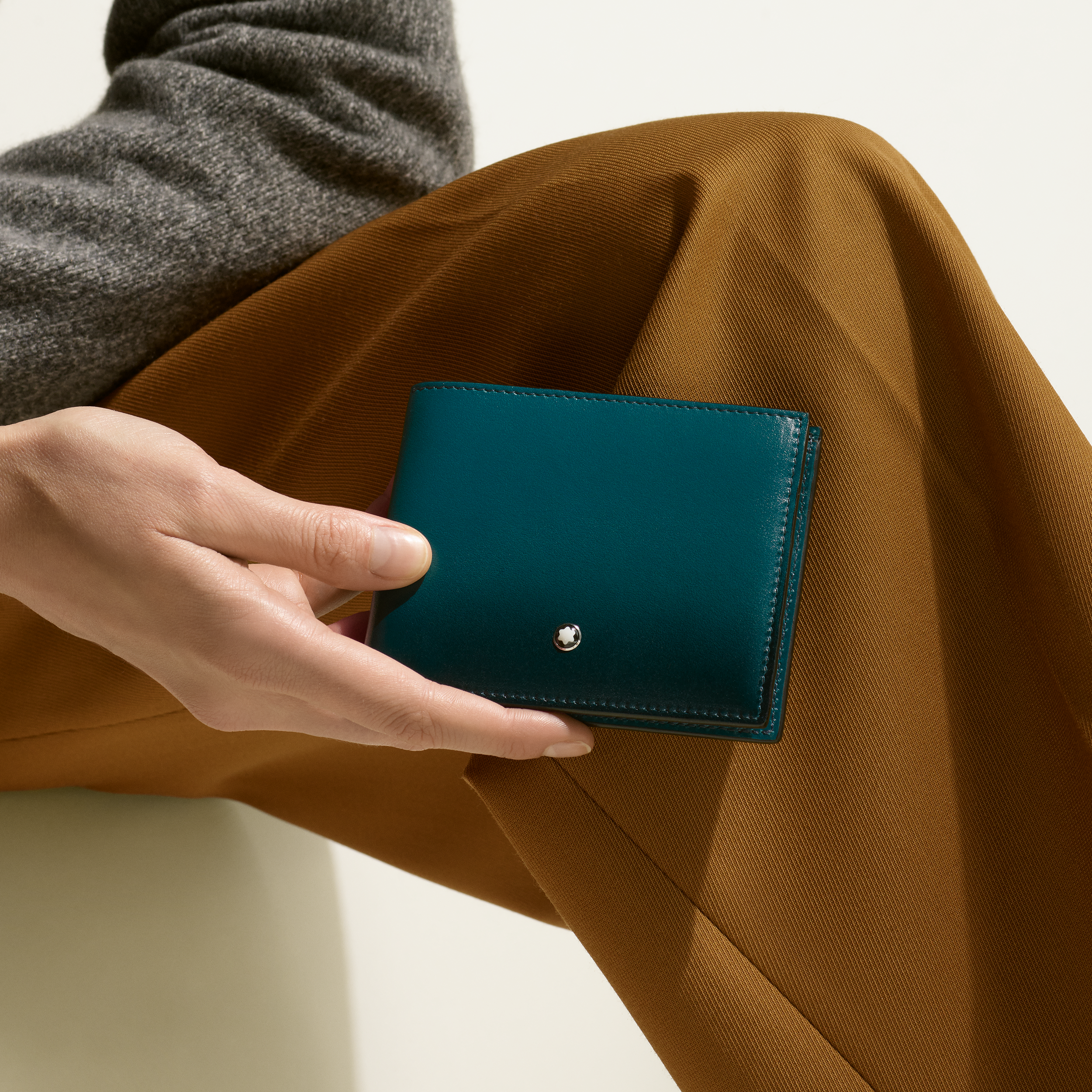 La collection Meisterstück introduit également des versions revisitées de ses modèles les plus populaires, notamment dans les teintes Russet et Cyprus Blue. Le sac Messenger et le porte-documents mini se parent d’un coloris Cyprus Blue sfumato, où des dégradés élégants évoquent l’encre se diffusant doucement sur le papier, un clin d’œil raffiné à l’histoire de l’écriture de Montblanc.