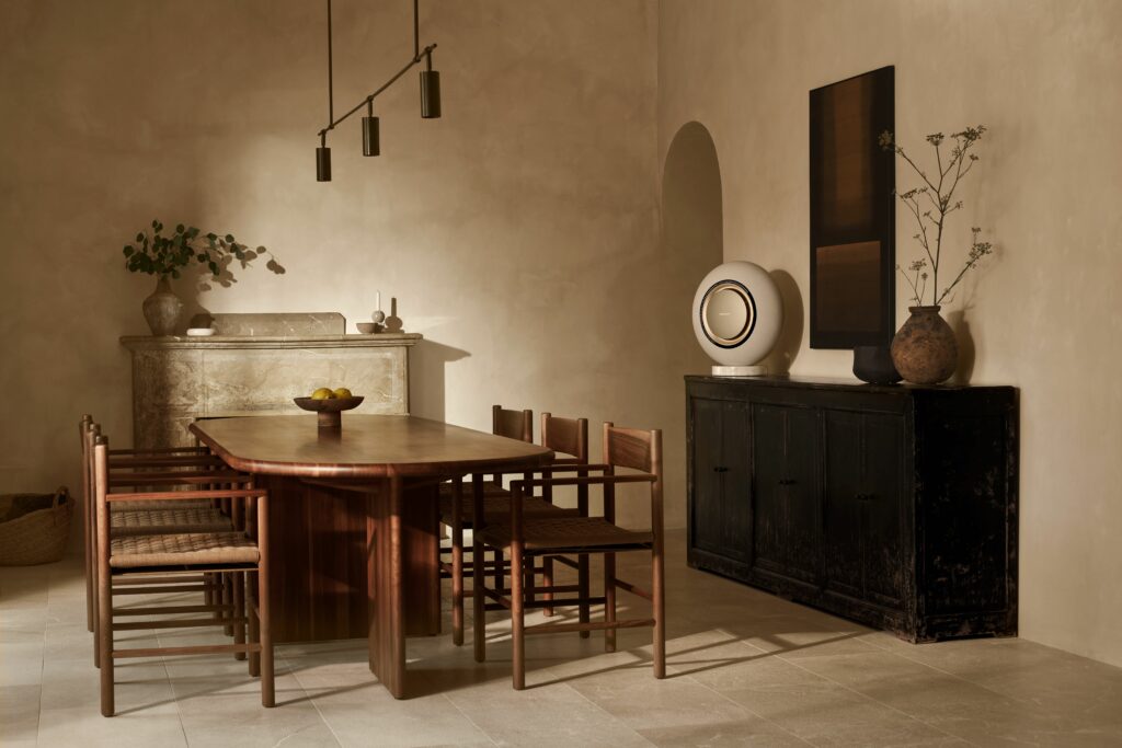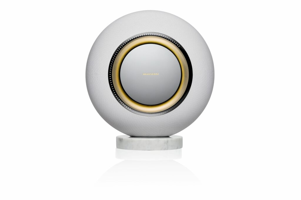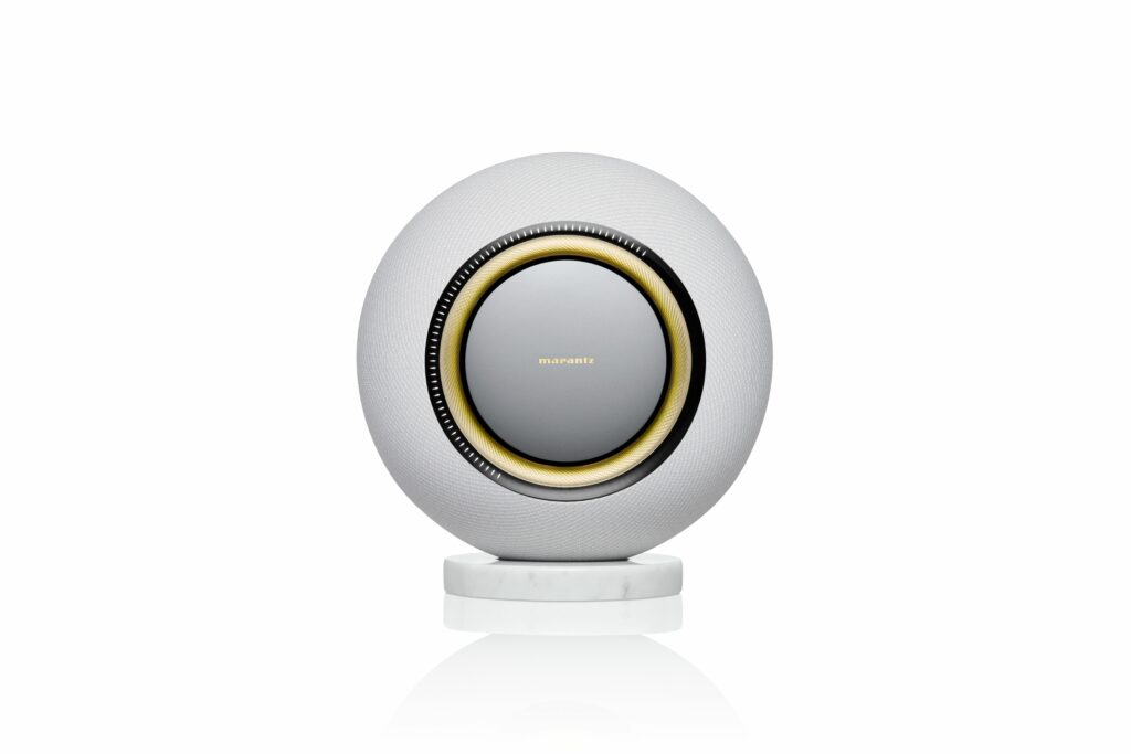 Les enceintes Horizon et Grand Horizon s’imposent comme des pièces maîtresses de design. Leur silhouette circulaire, sublimée par le célèbre hublot Marantz et un éclairage intégré, incarne une harmonie parfaite entre minimalisme et sophistication. Habillées de Marantz Seamless Ecofiber Radiance™, un tissu écoresponsable issu de plastiques recyclés des océans, elles se déclinent en trois finitions luxueuses : Midnight Sky, Moon Ray et Champagne. Une base en marbre naturel ou un trépied en noyer américain (en option) rehausse encore leur élégance.