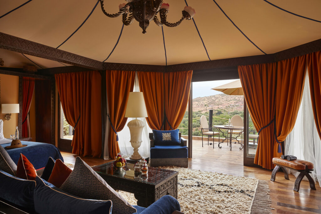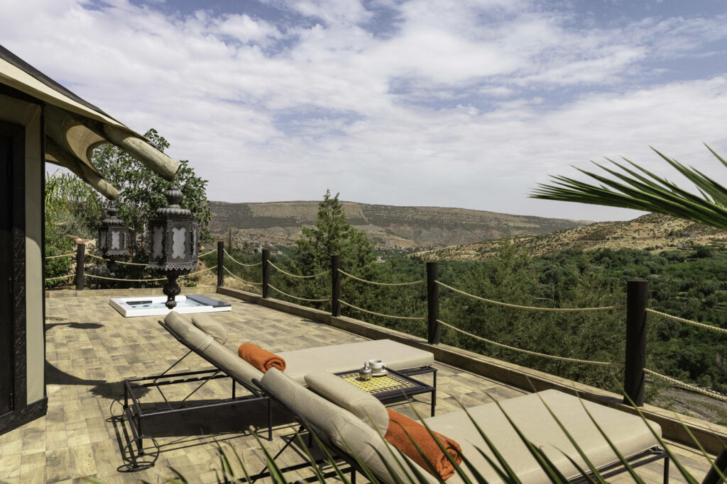 L’ajout de six nouveaux riads L’une des nouveautés les plus attendues est sans doute l’inauguration de six nouveaux riads de trois chambres, qui s’ajoutent aux 28 chambres et suites déjà disponibles. Chaque riad offre une expérience alliant design marocain traditionnel et confort moderne. Ces riads proposent des espaces piscine privés, des terrasses offrant des vues panoramiques sur les montagnes, ainsi qu’une suite sur le toit avec jacuzzi, installée sous une tente berbère. La capacité totale de l’hôtel est ainsi portée à 42 chambres, avec des intérieurs agrémentés de textiles fabriqués à la main par des artisans locaux, soutenus par la fondation.